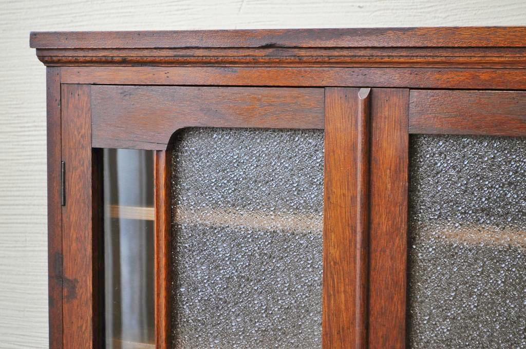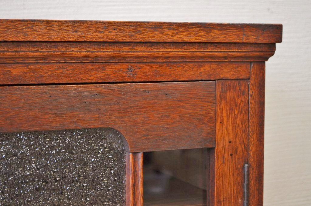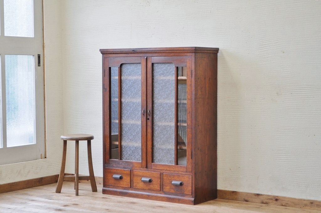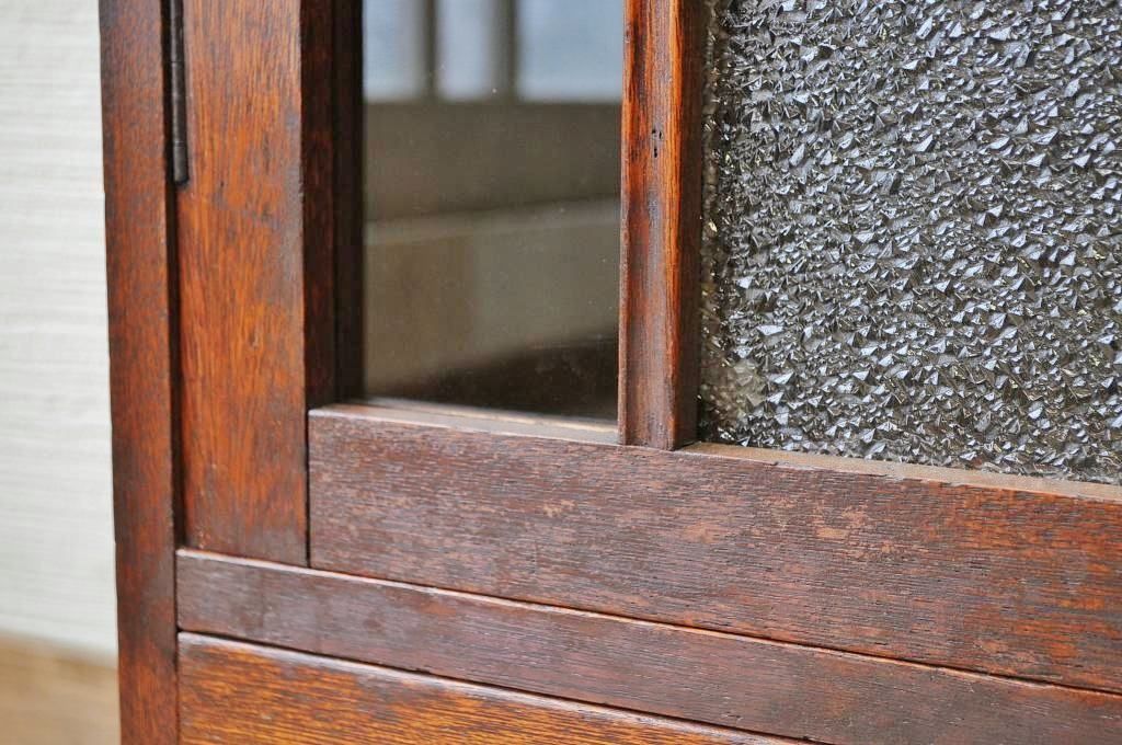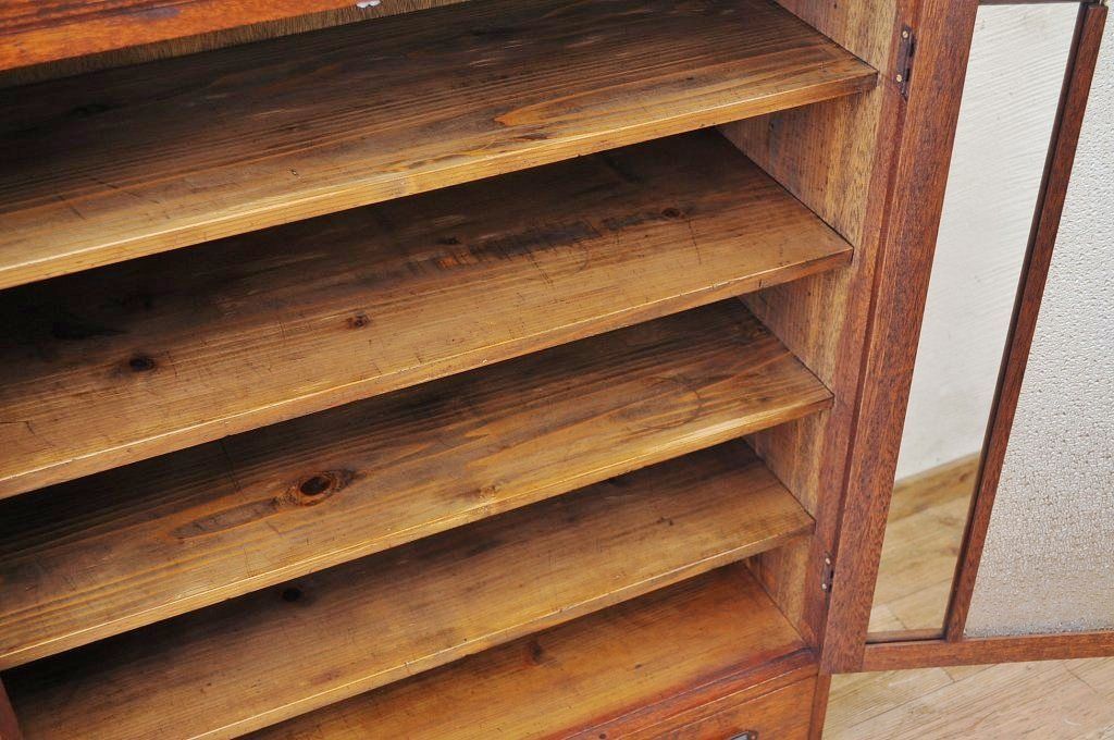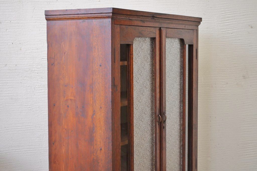 アンティーク家具 古い木のダイヤガラス収納棚(飾り棚)