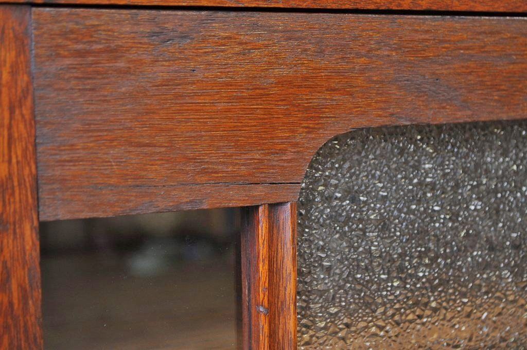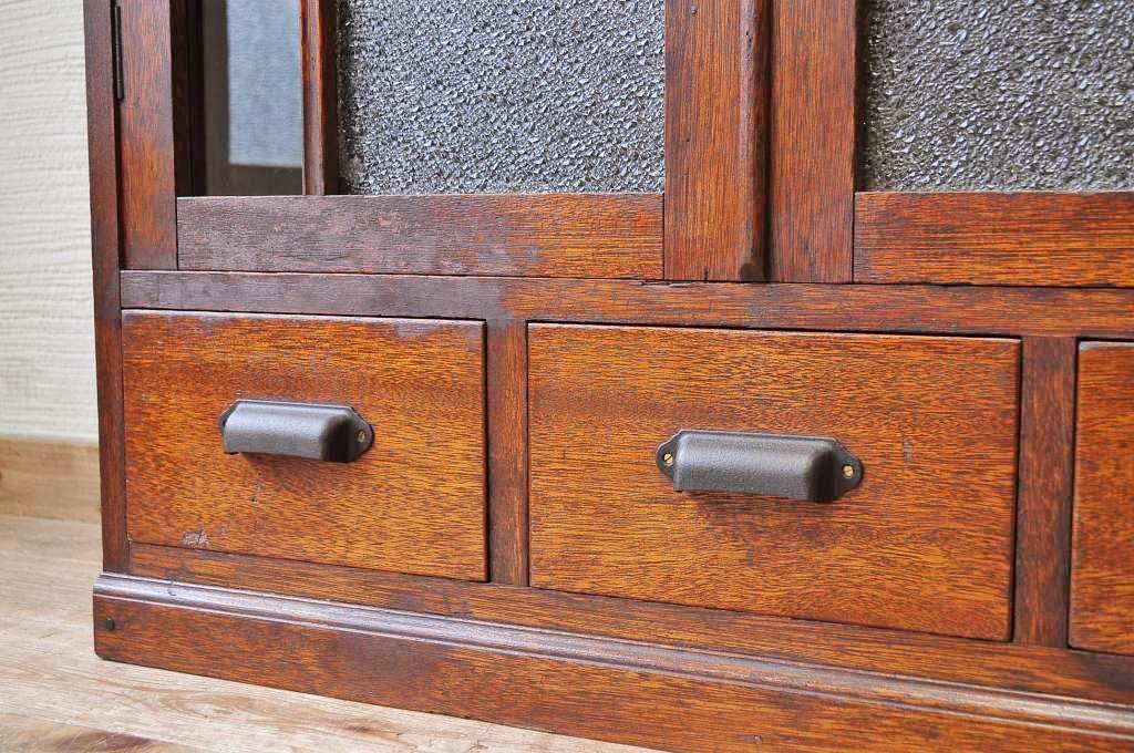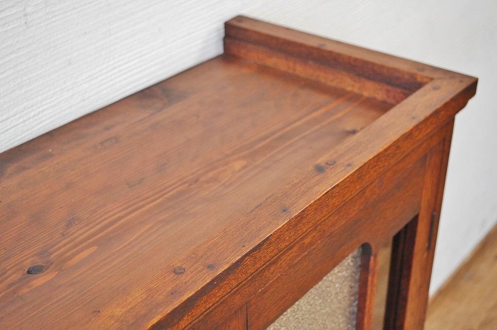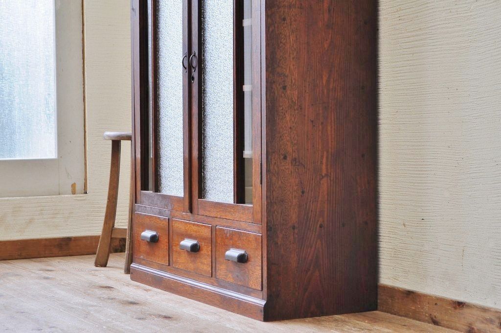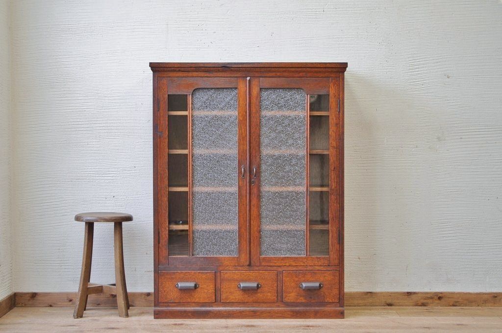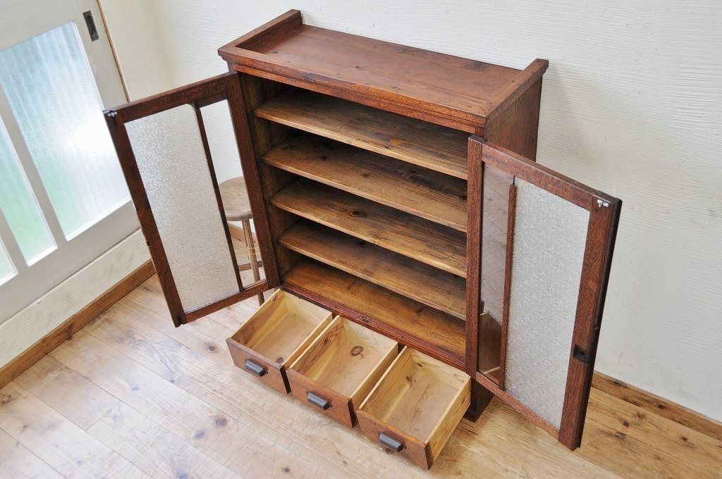 アンティーク家具 古い木のダイヤガラス収納棚(飾り棚)