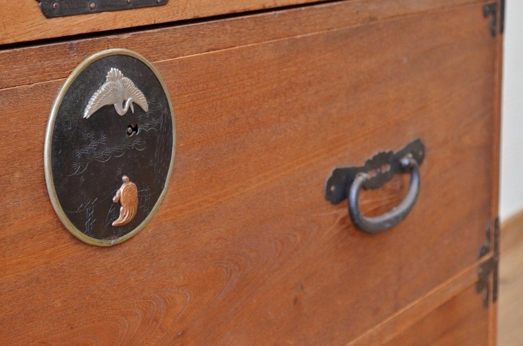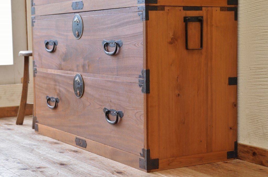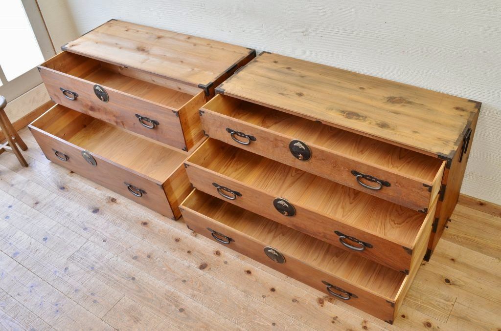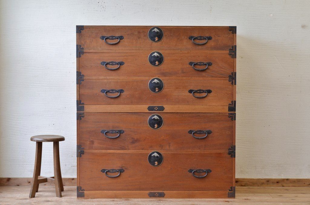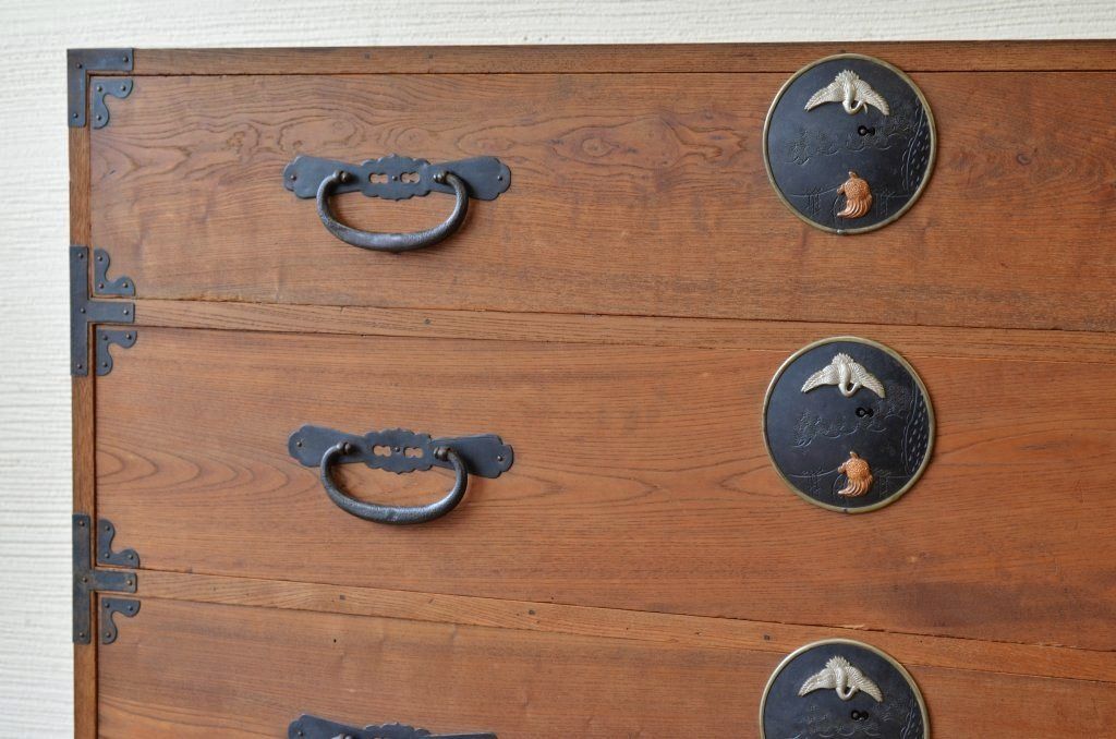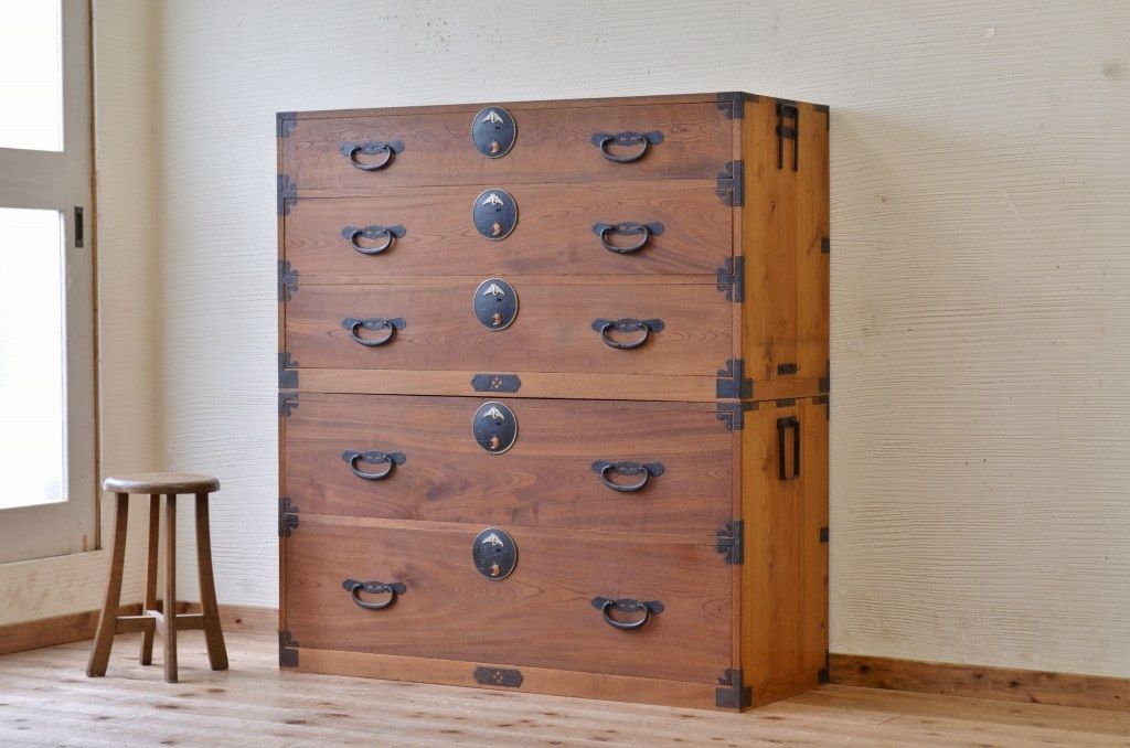 アンティーク家具 古民具 前面欅五丁引き二本松箪笥