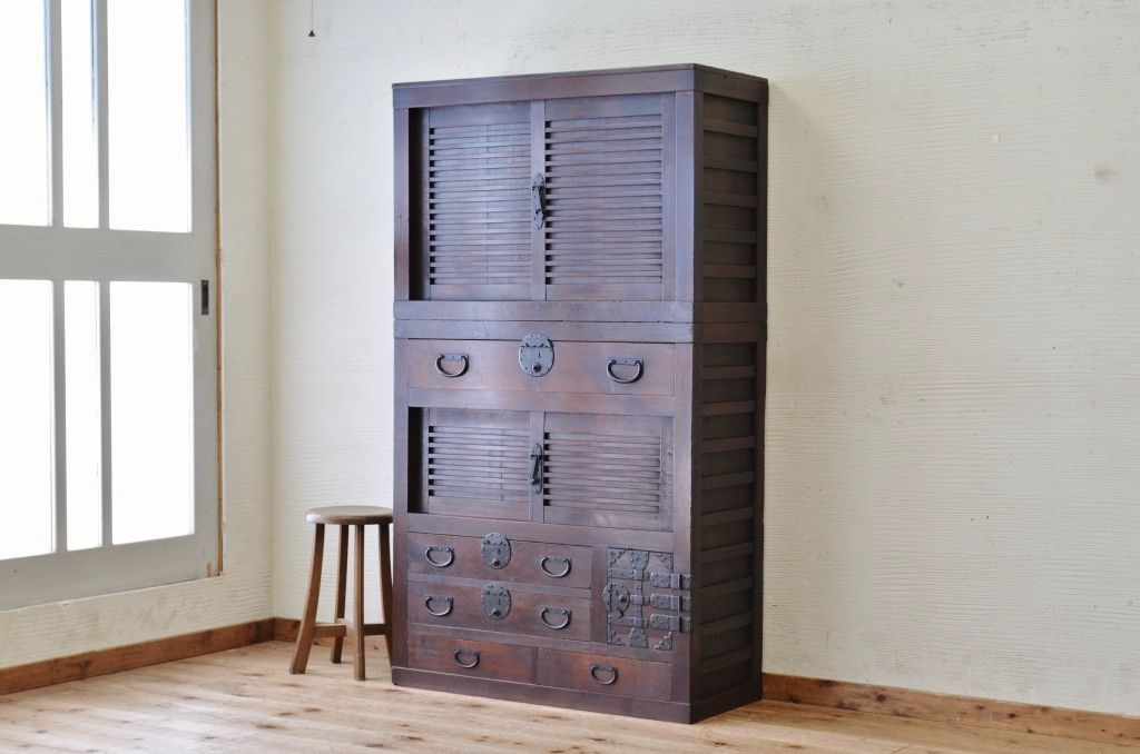 極上美品!シックな二段重ね時代箪笥帳場箪笥