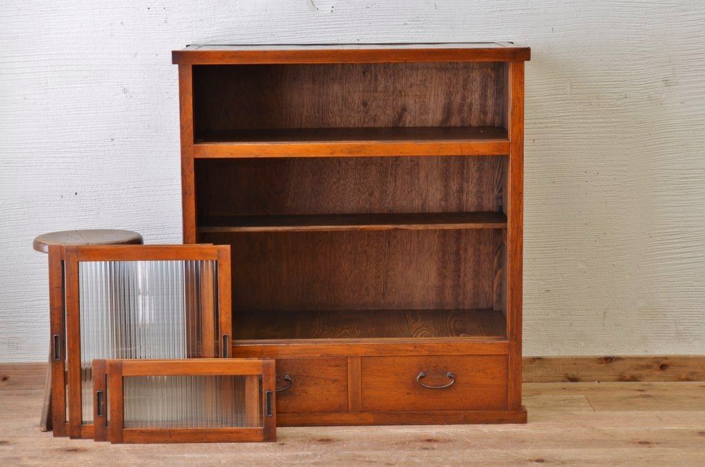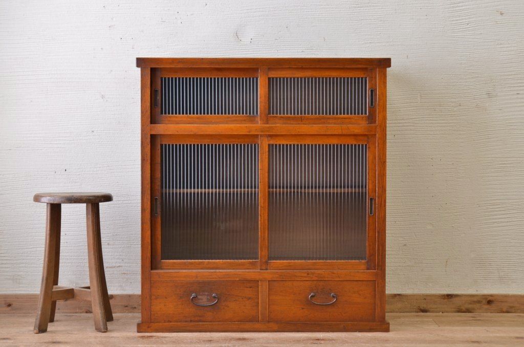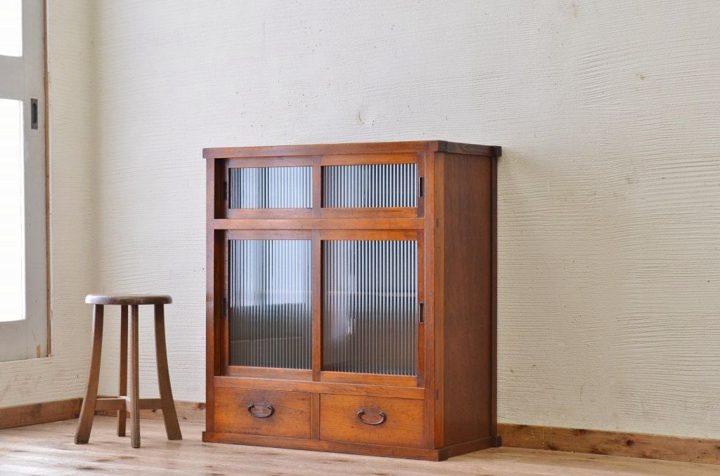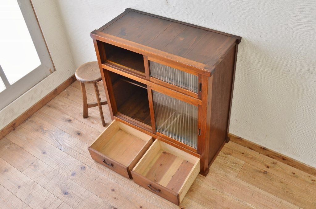モールガラス引き出し付き収納棚(食器棚)です。