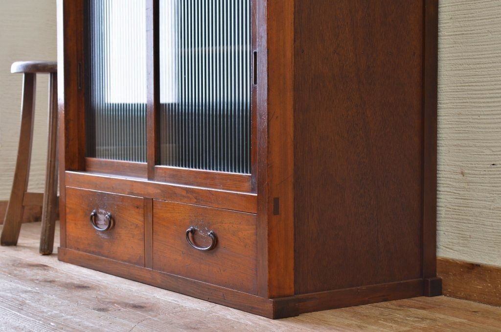 アンティーク家具 アンティークモールガラス引き出し付き収納棚(食器棚)