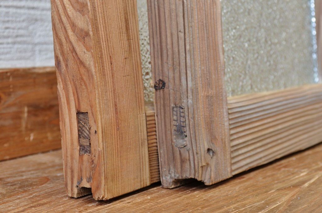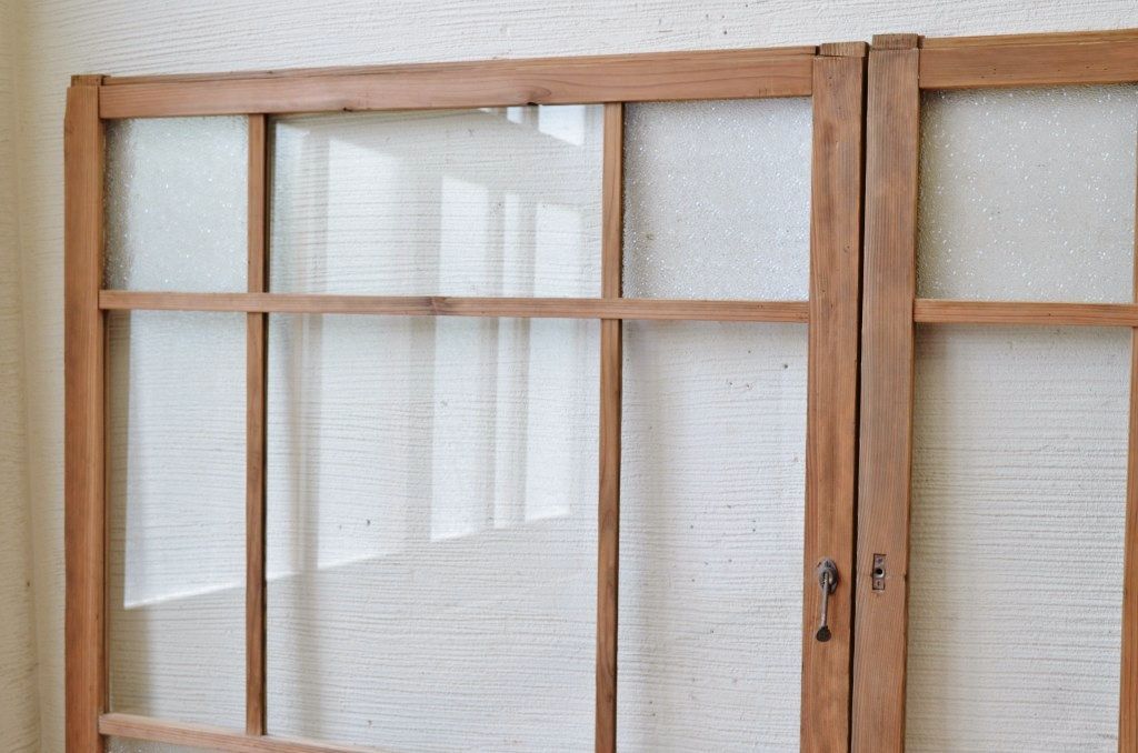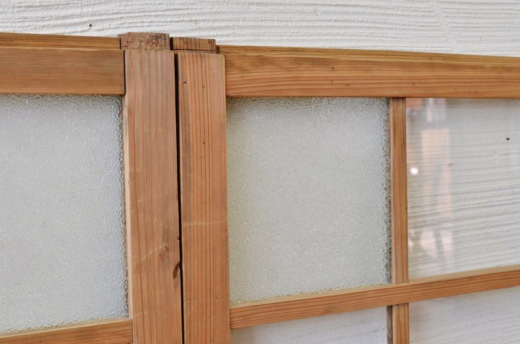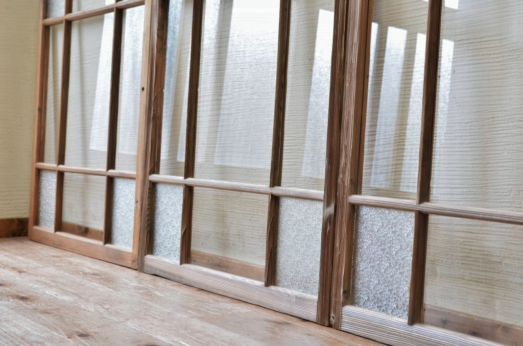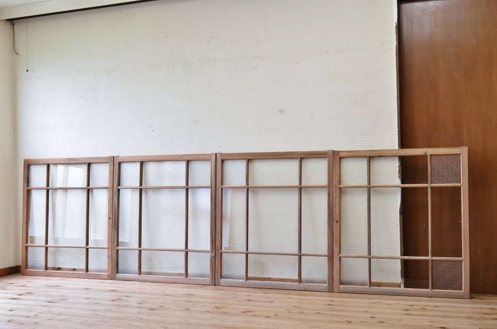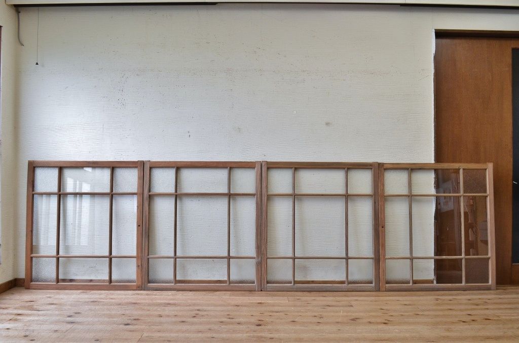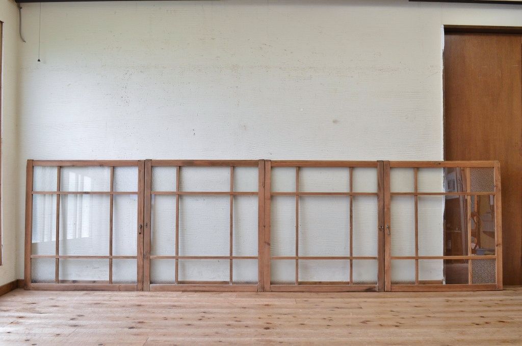 古い木味のダイヤガラス引き戸4枚セット (ガラス戸)