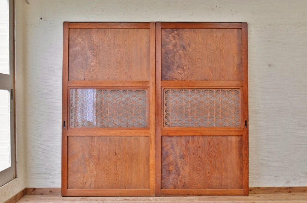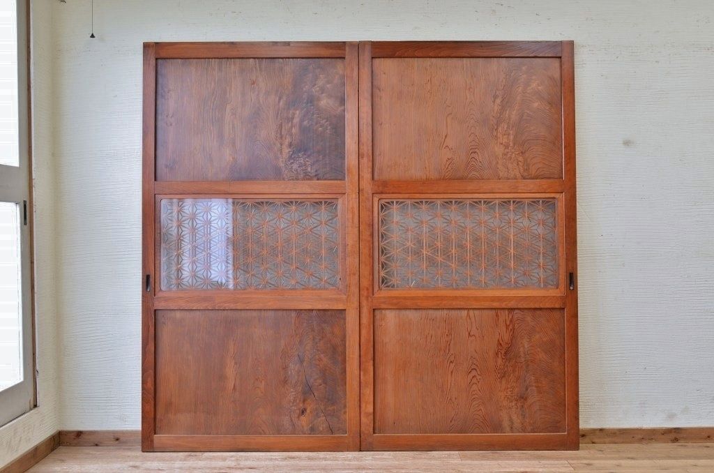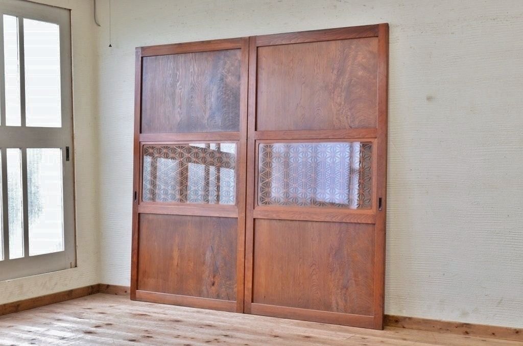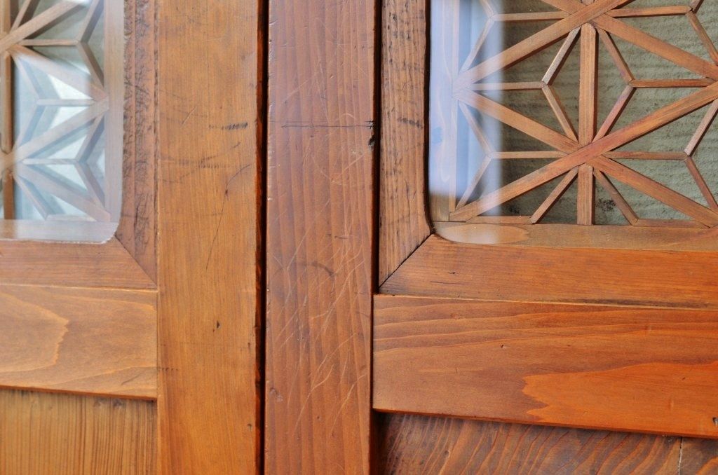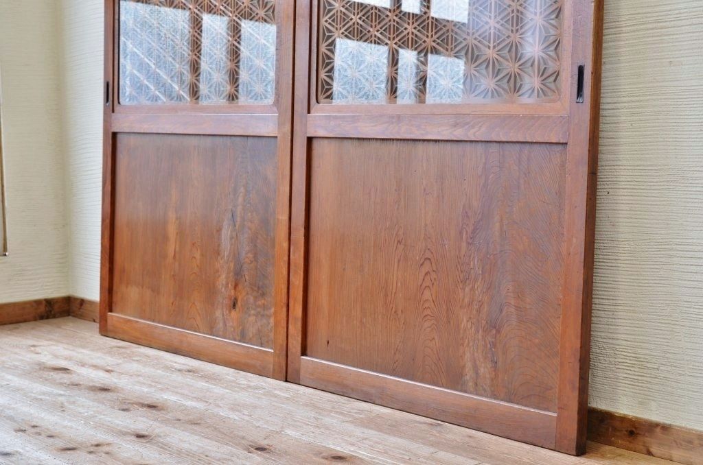 ★古民具 アンティーク組子帯戸2枚セット(板戸、ガラス帯戸)