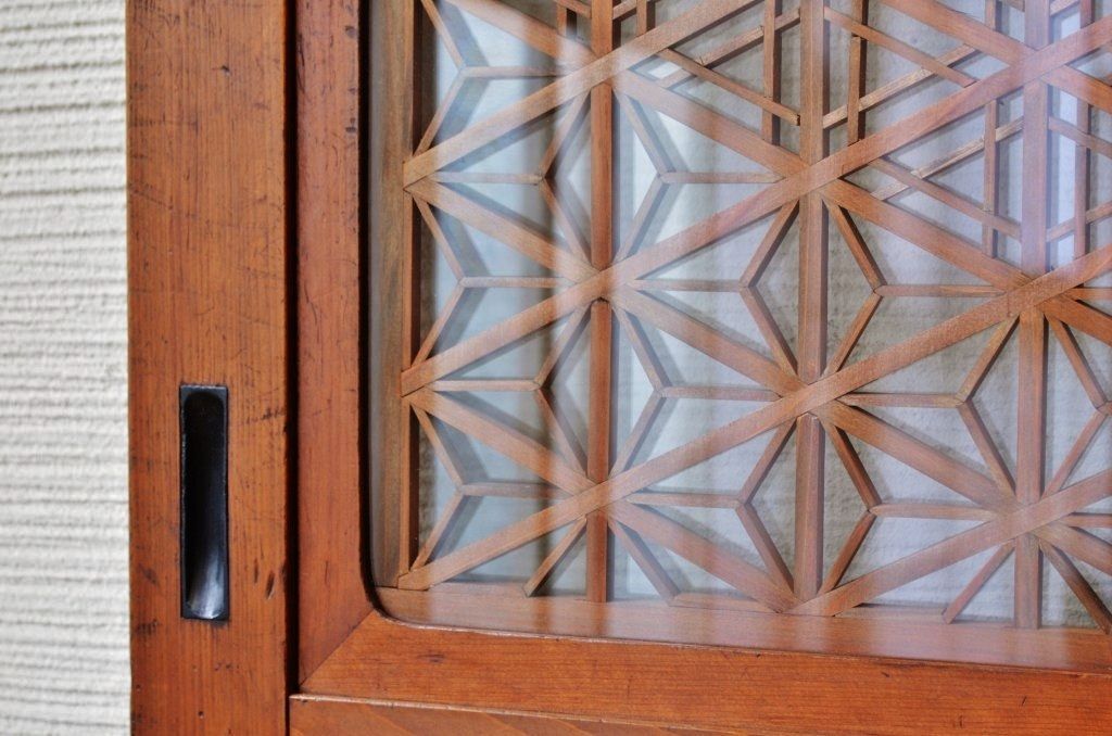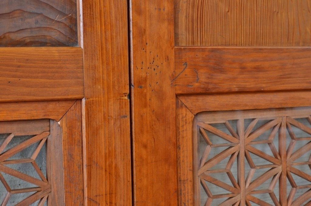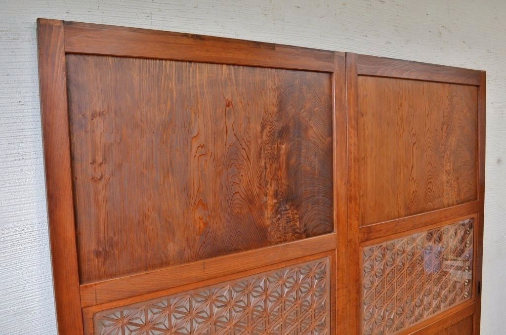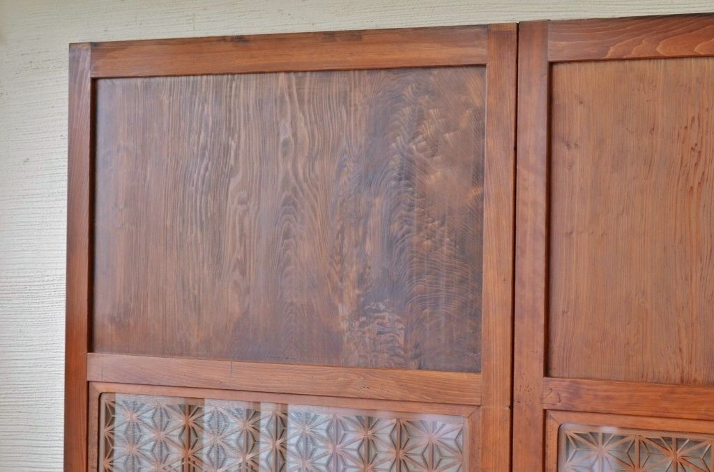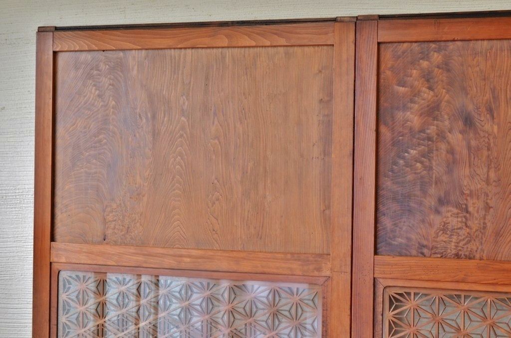 ★古民具 アンティーク組子帯戸2枚セット(板戸、ガラス帯戸)