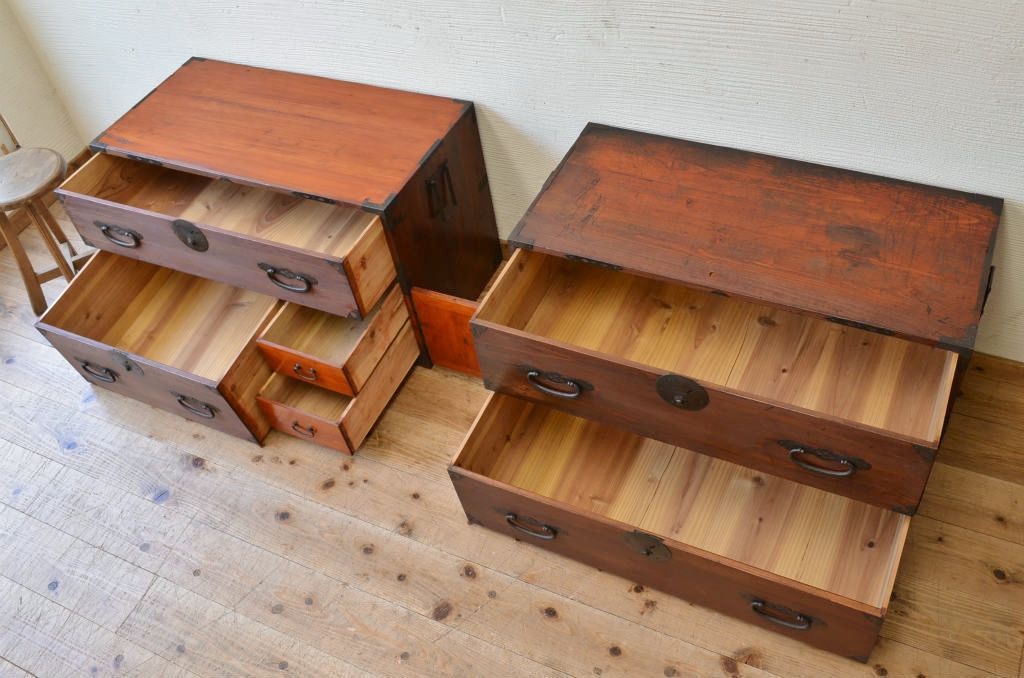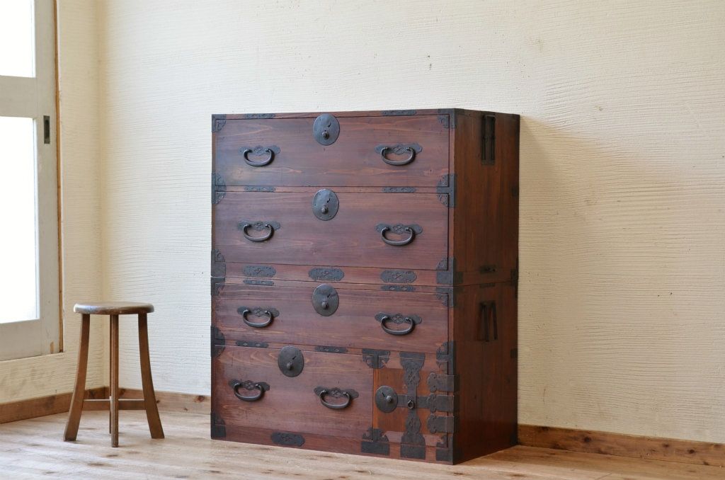 アンティーク家具 ☆古民具 味のある二段重ね時代箪笥2