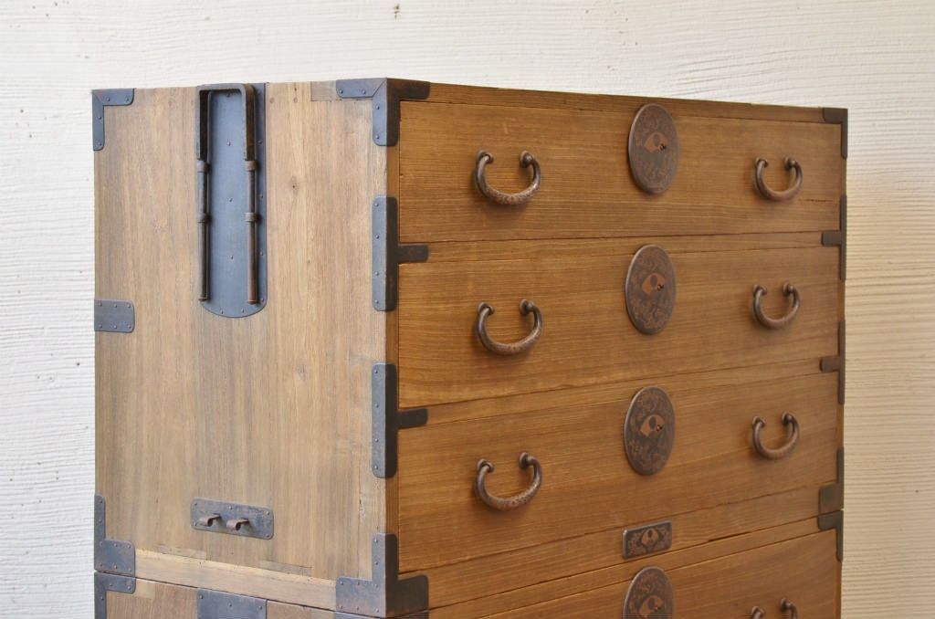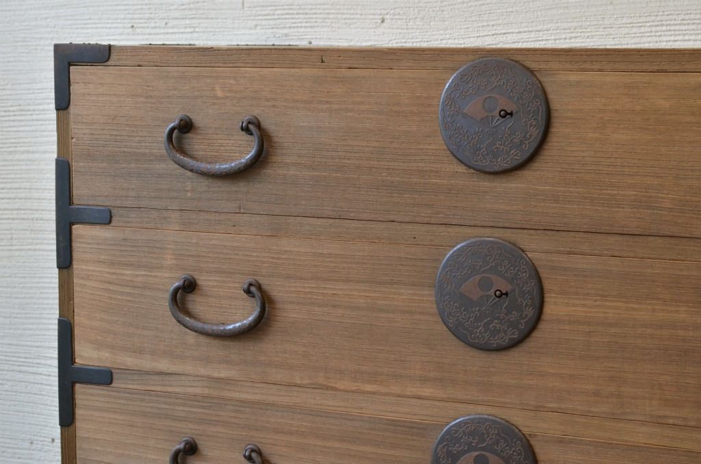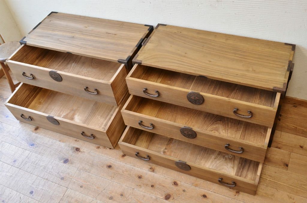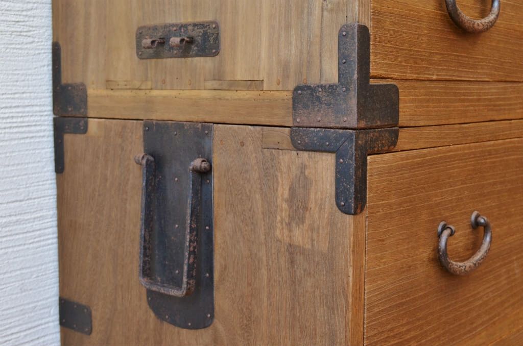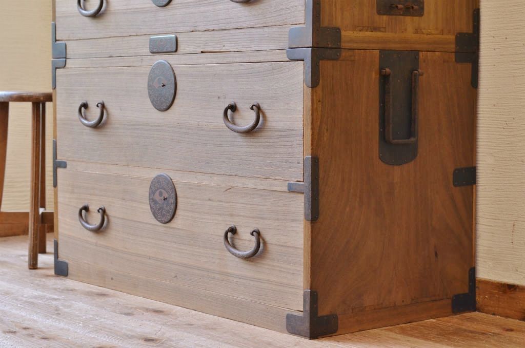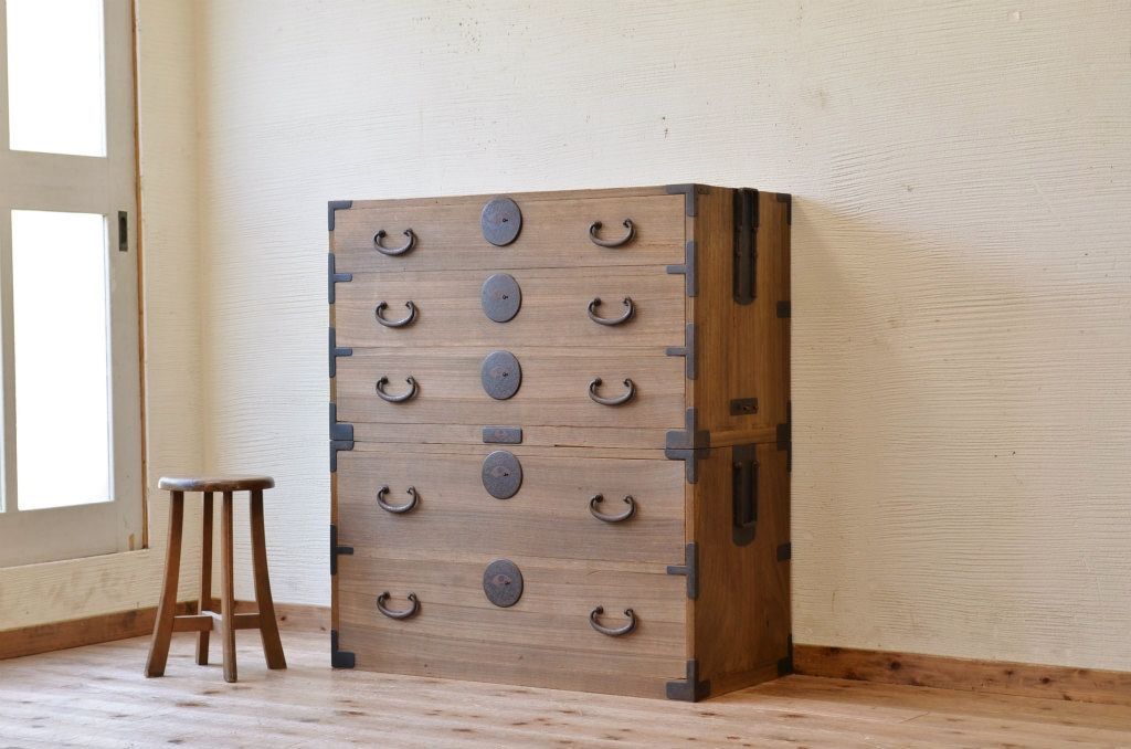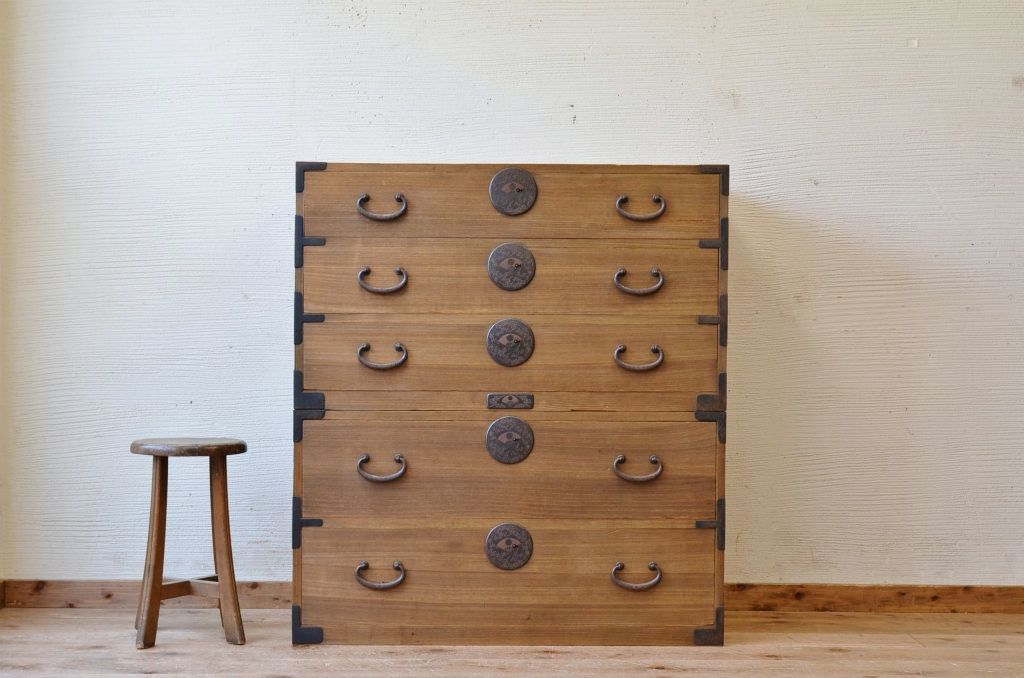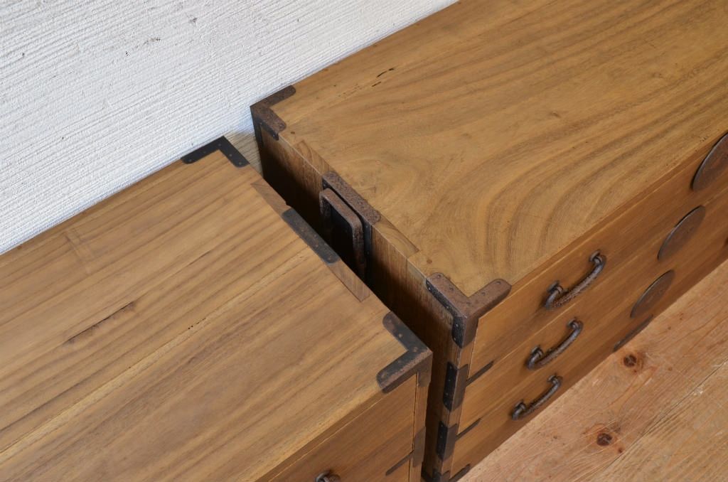 ☆美品!古い木味の二段重ね五丁引き時代箪笥