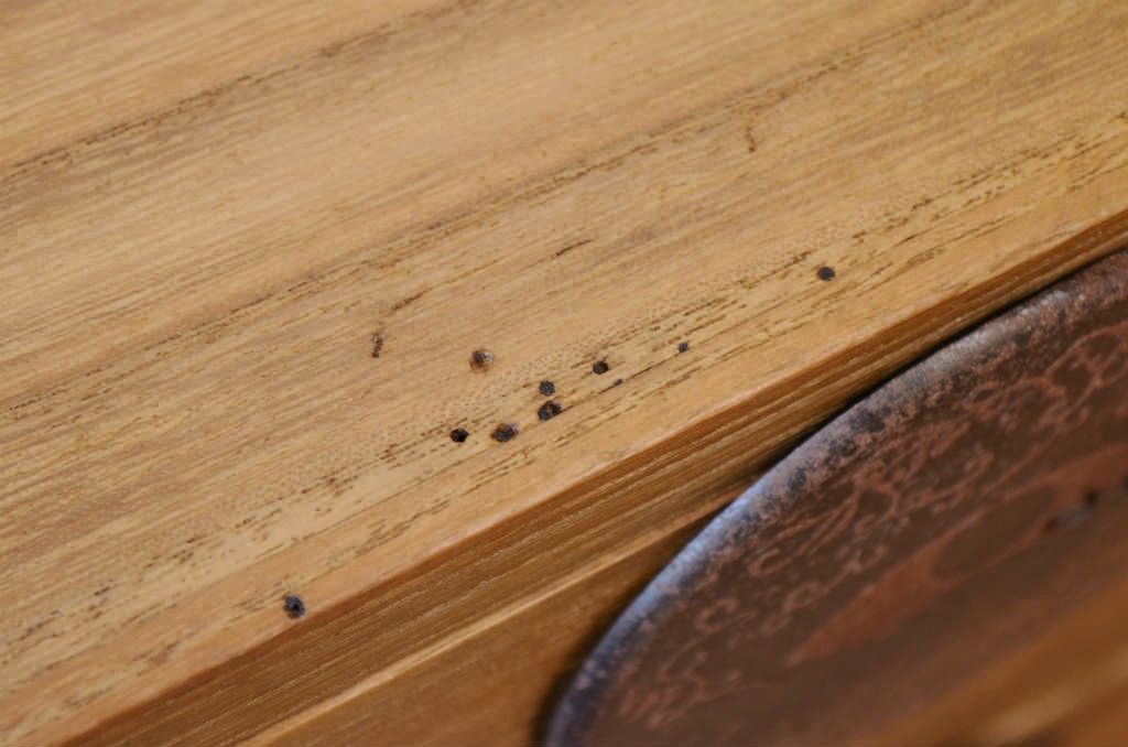 画像にありますように所々に虫食い跡がありますが、使用上、強度上に問題はありません。