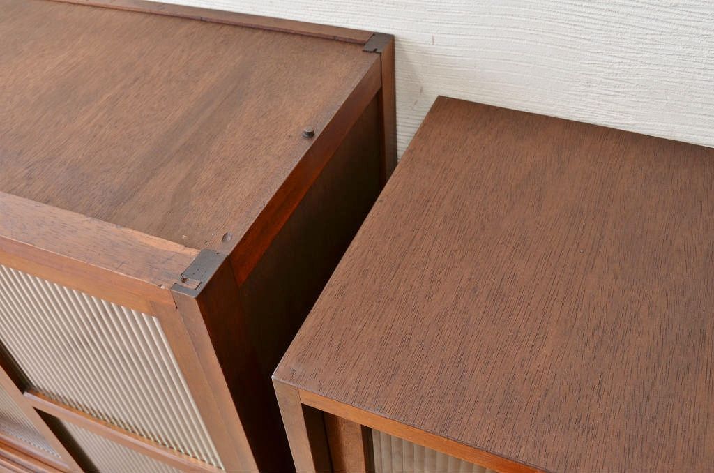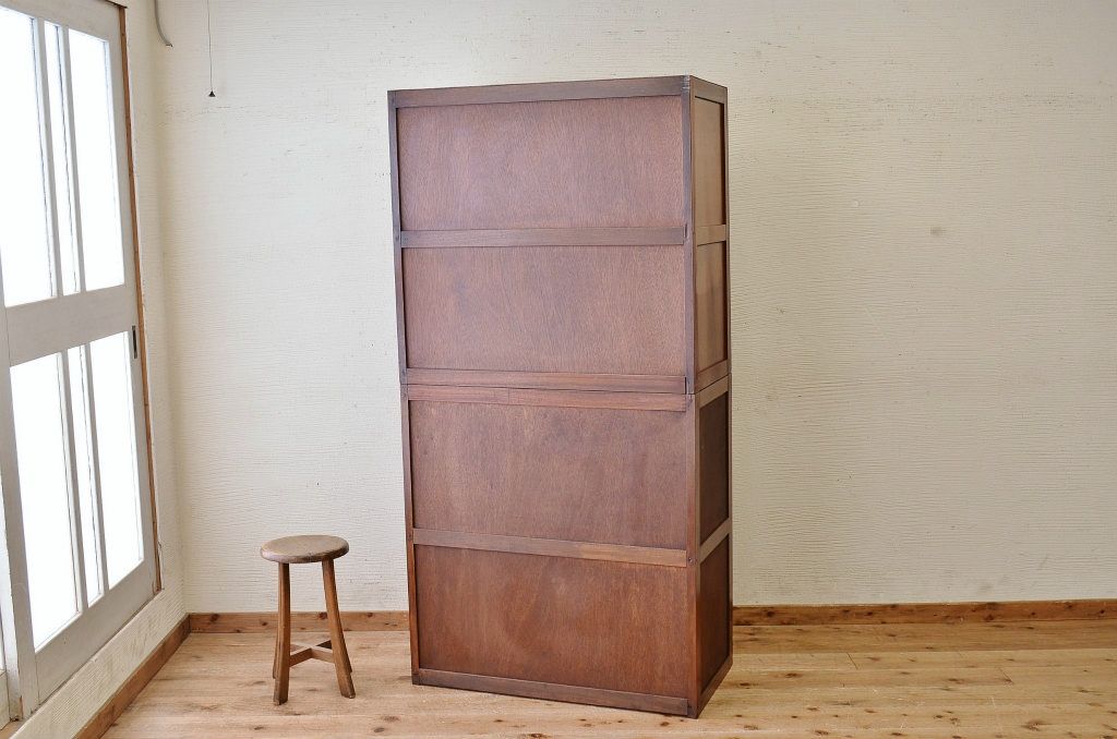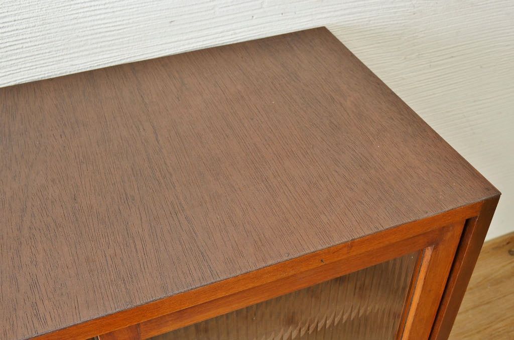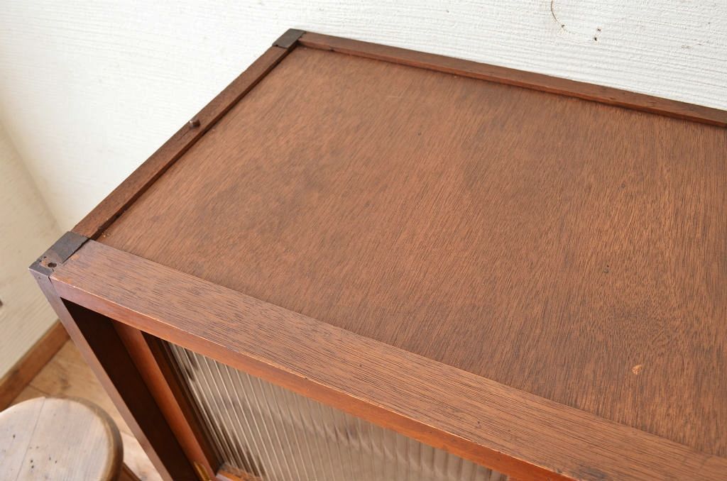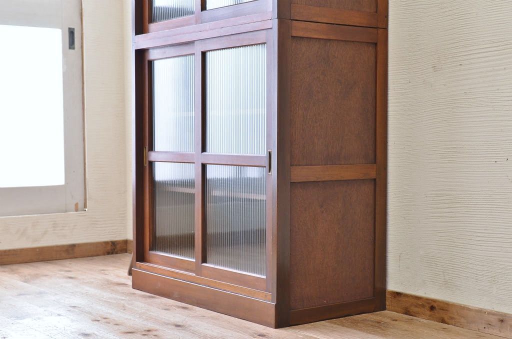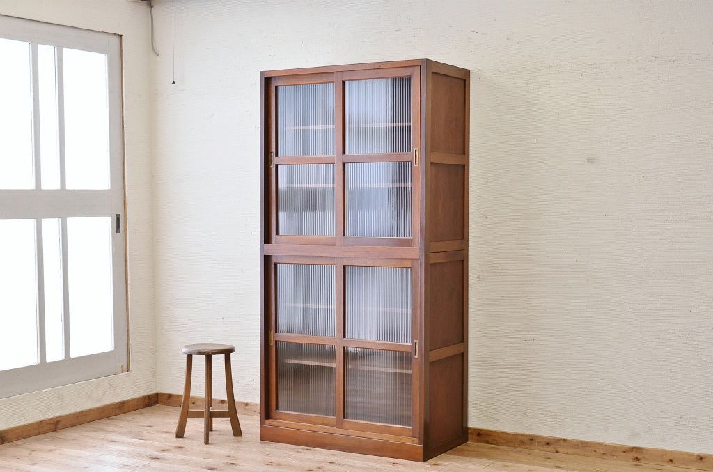 シンプルなモールガラス二段重ねアンティーク収納棚です。