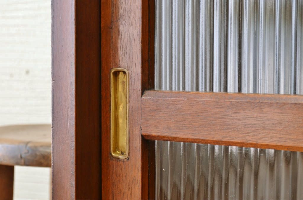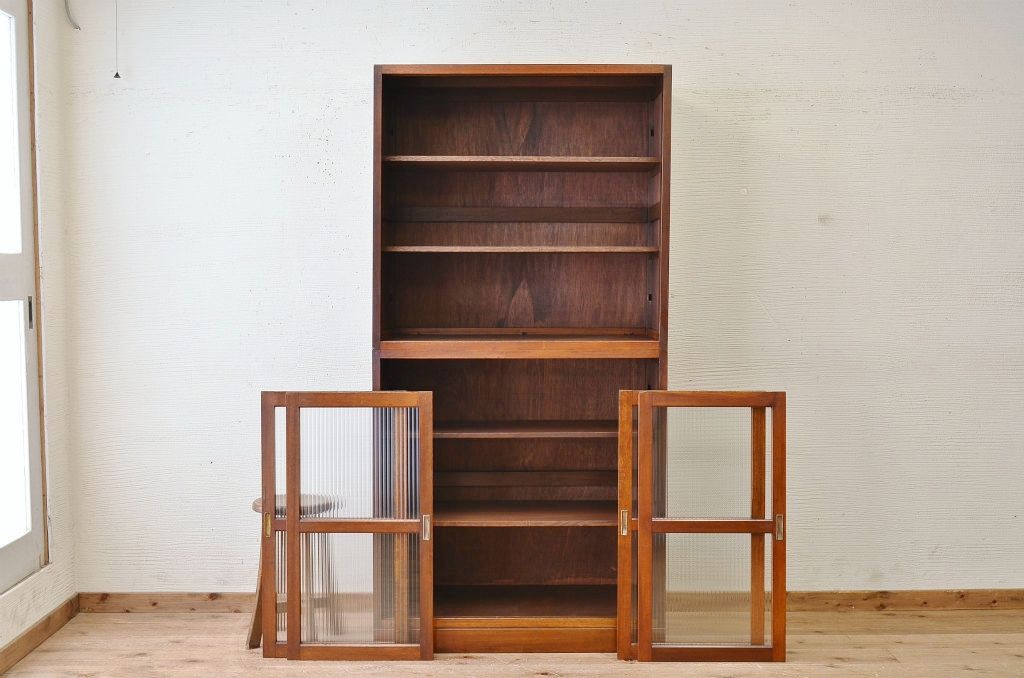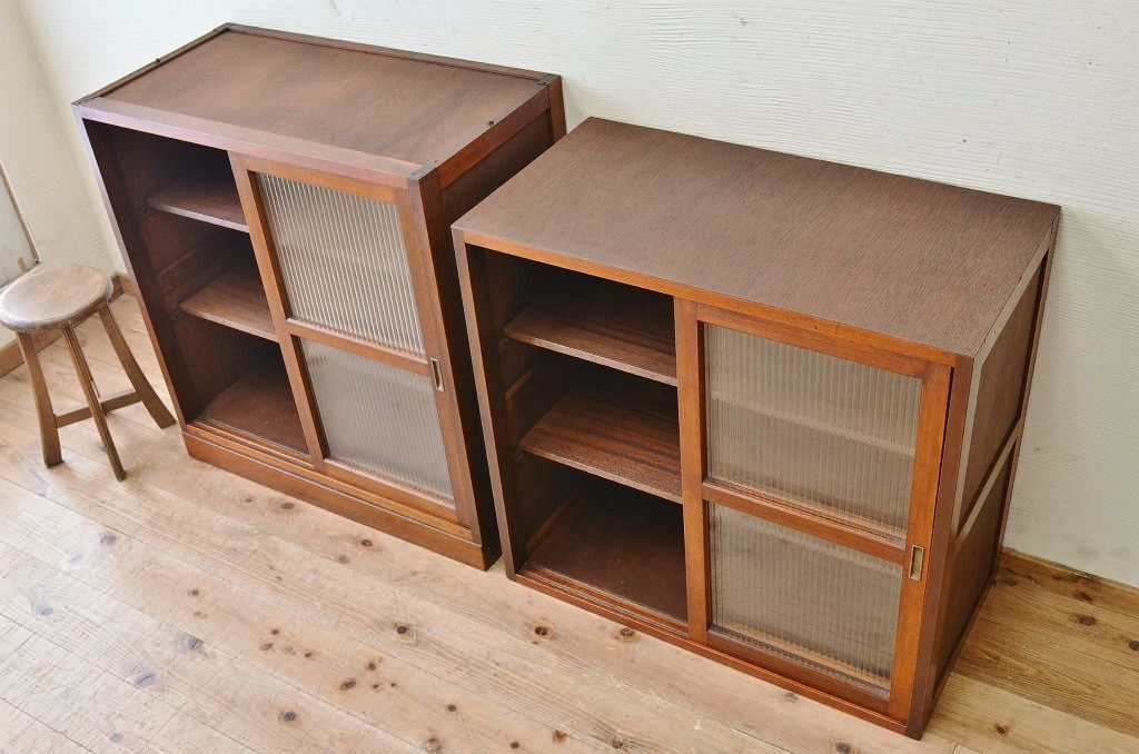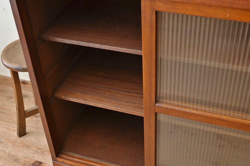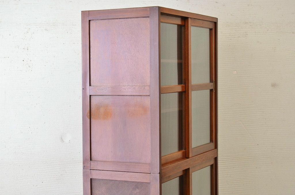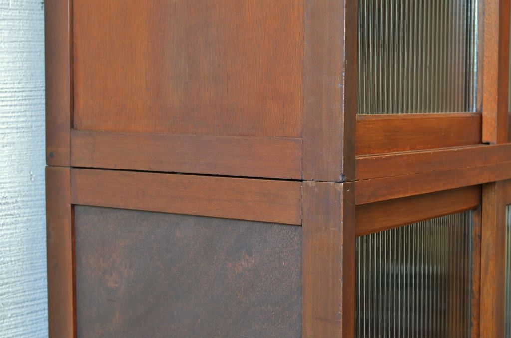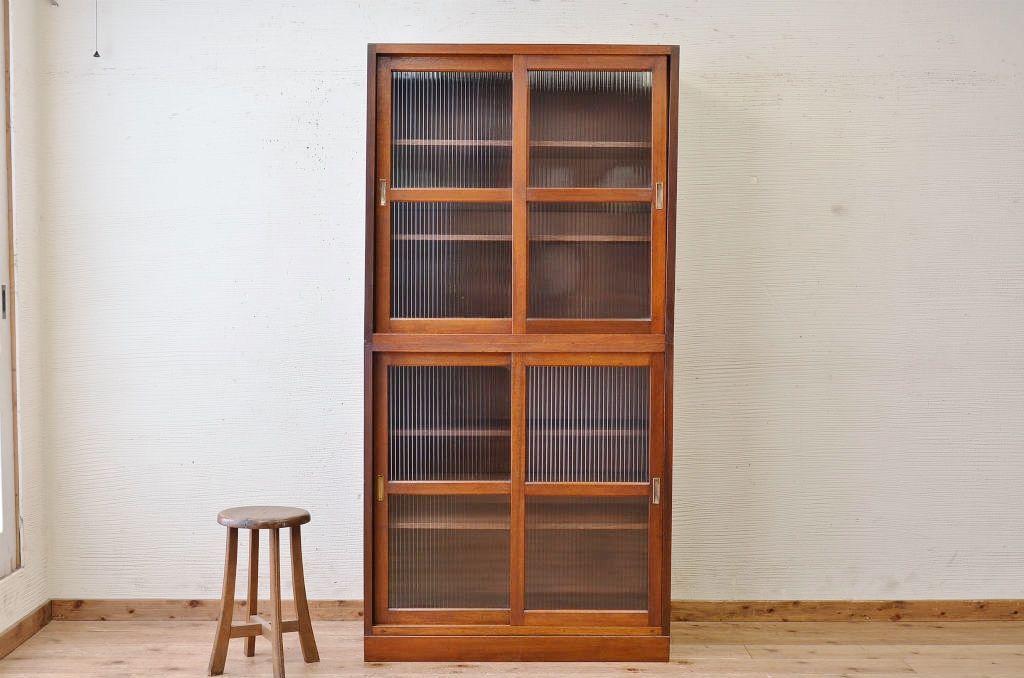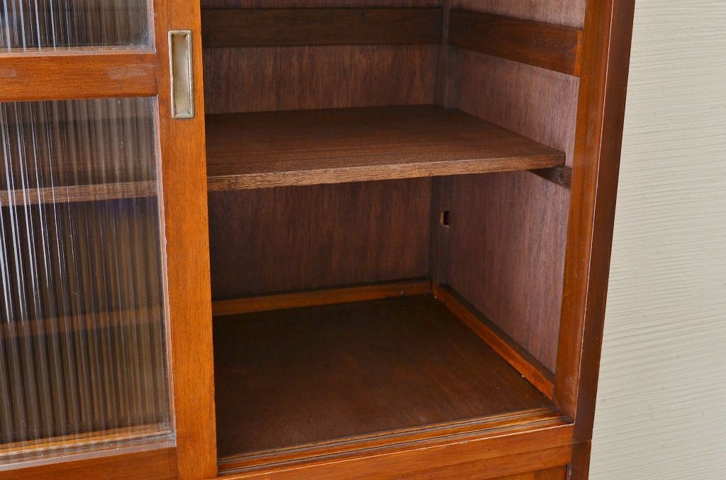 アンティーク家具 ☆シンプルなモールガラス二段重ねアンティーク収納棚