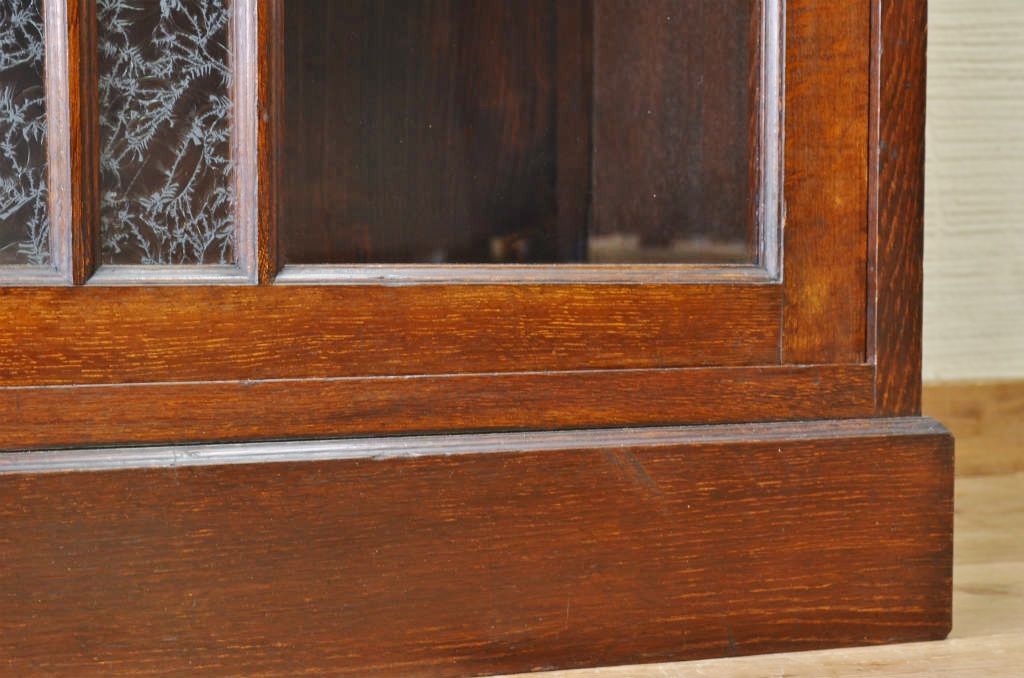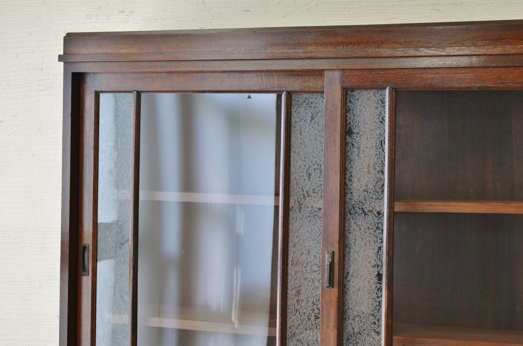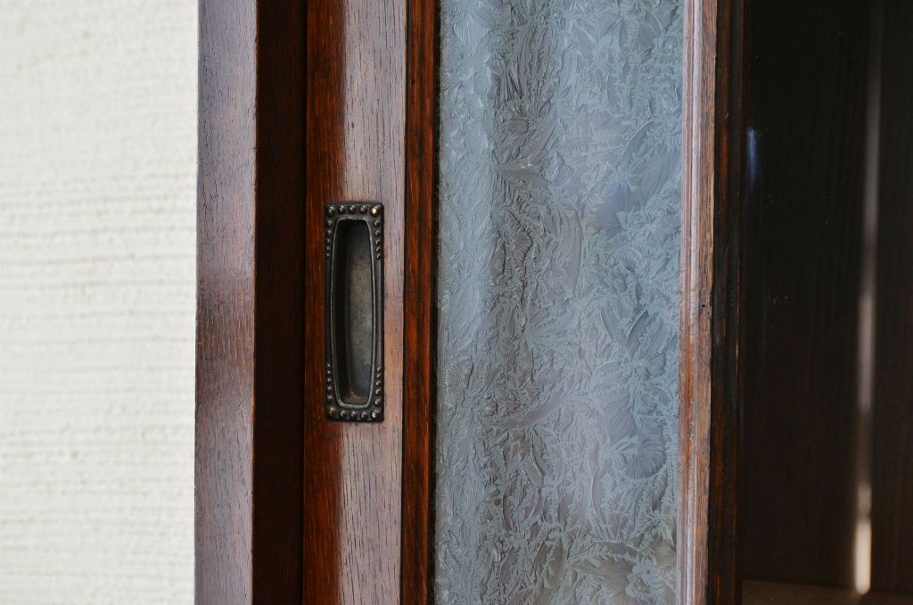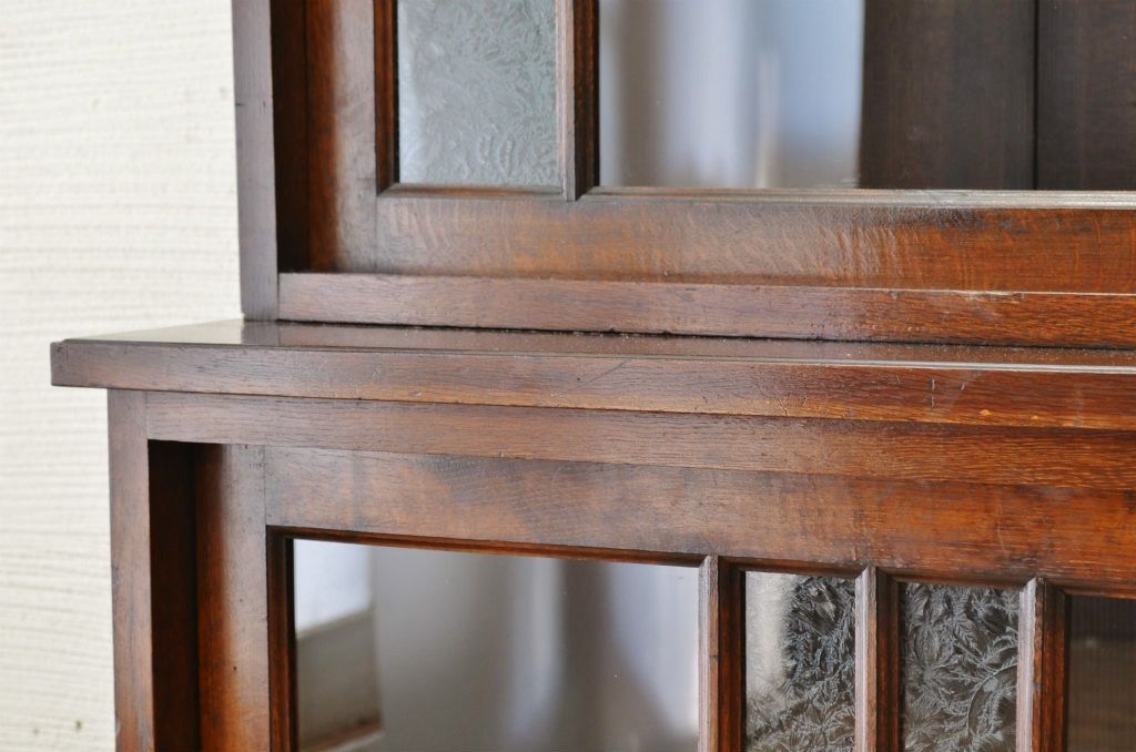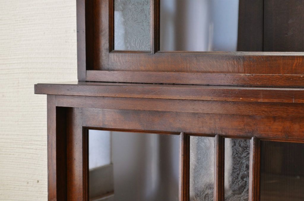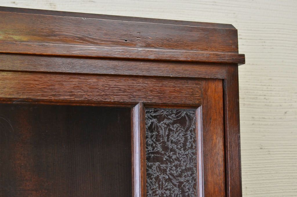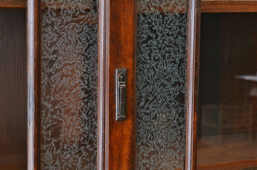アンティーク家具 ◇古いナラ材の上質な結霜ガラスアンティーク食器棚(収納棚)