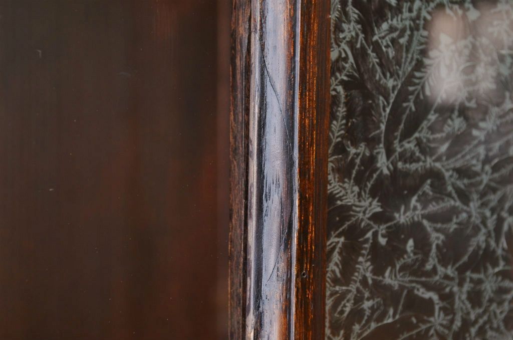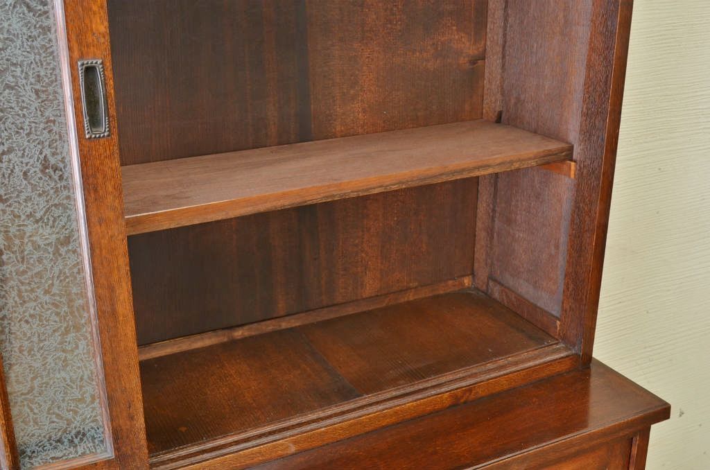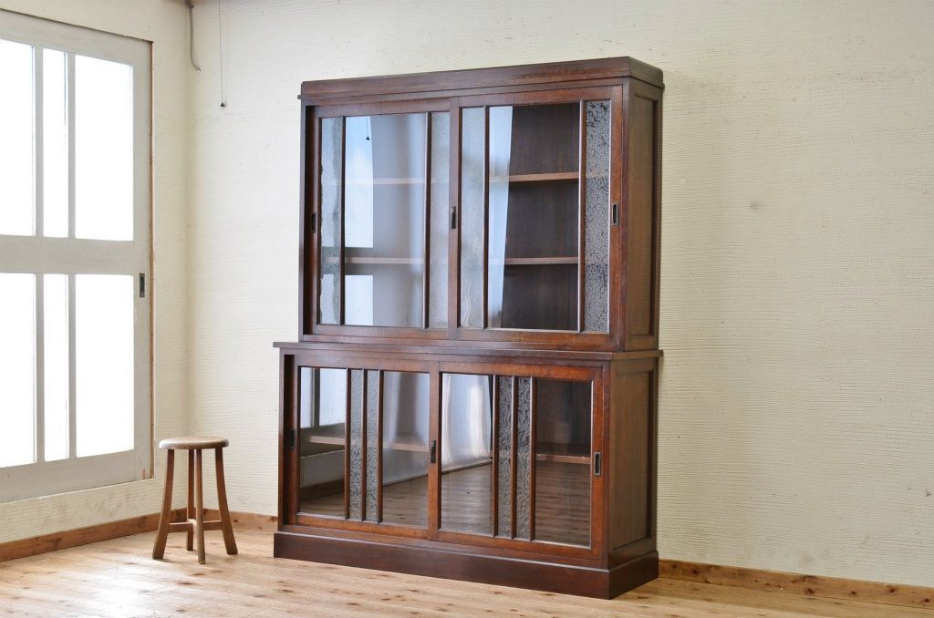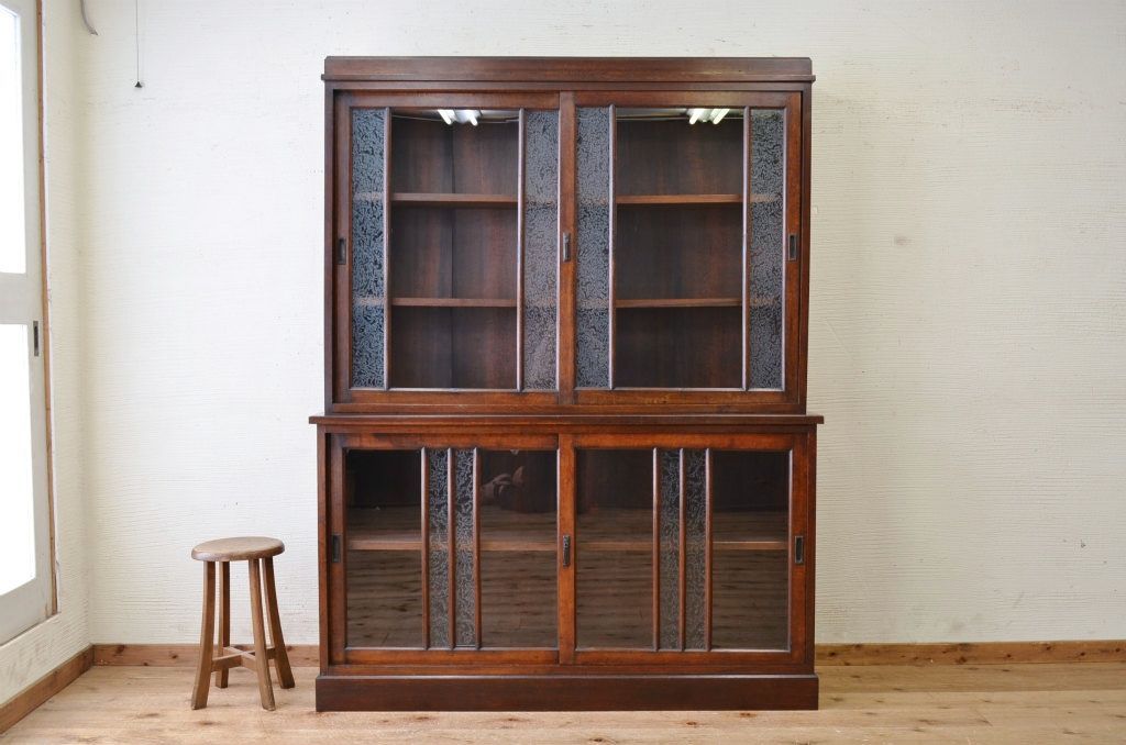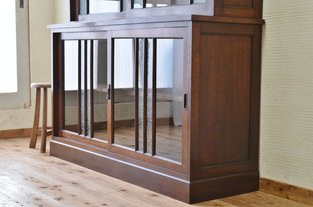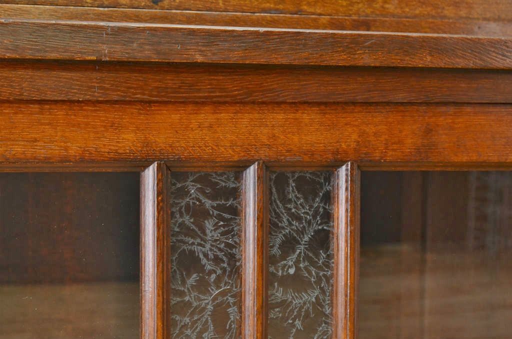 アンティーク家具 ◇古いナラ材の上質な結霜ガラスアンティーク食器棚(収納棚)