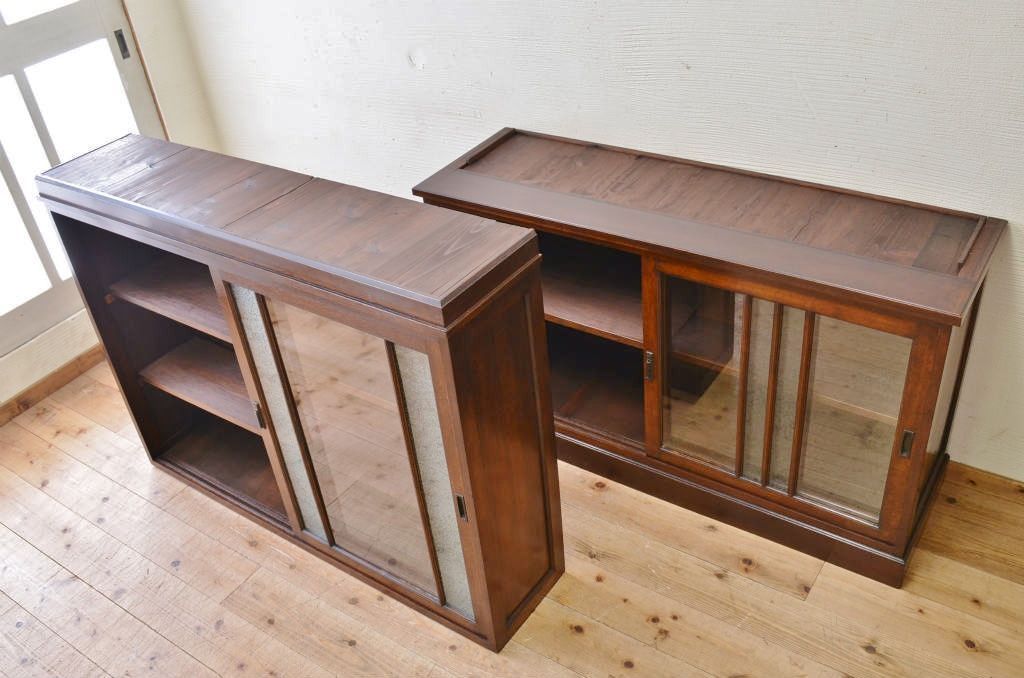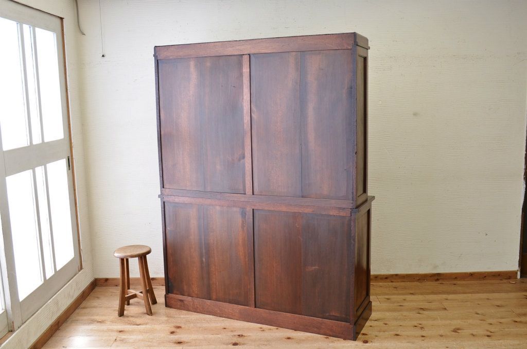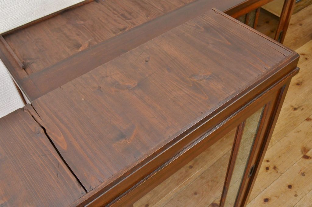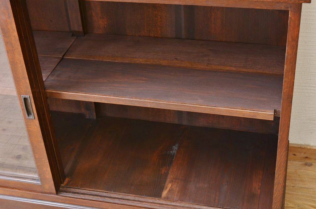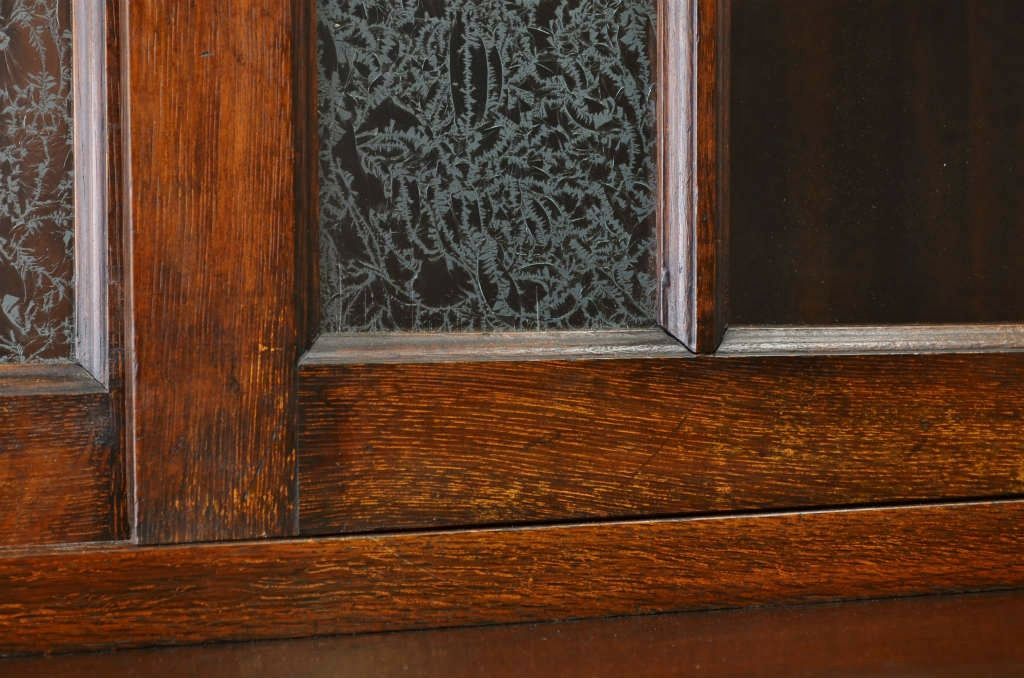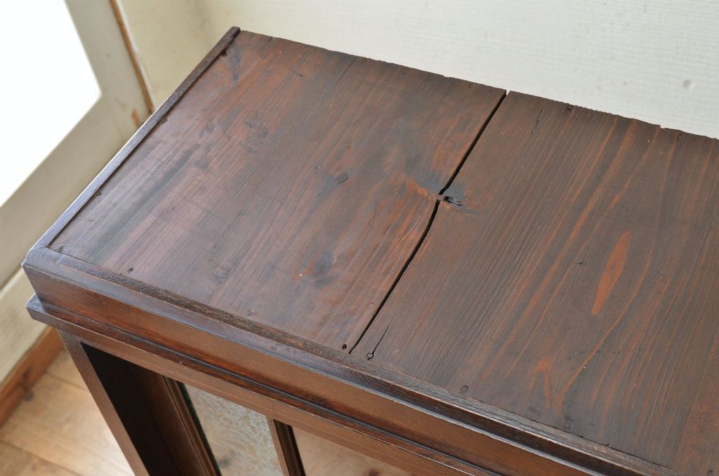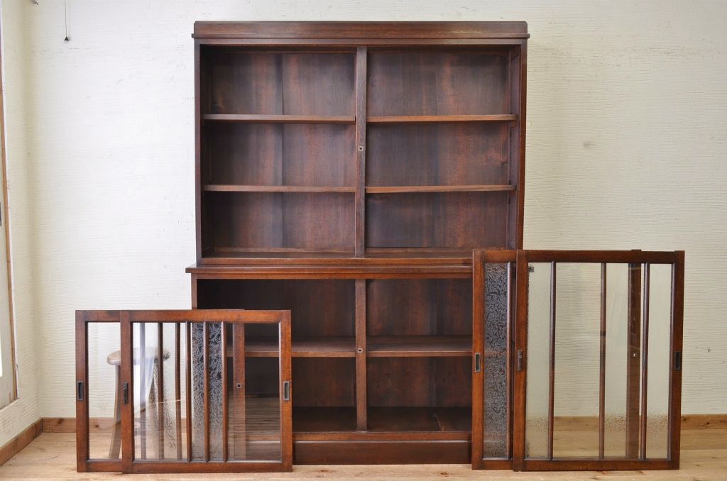 アンティーク家具 ◇古いナラ材の上質な結霜ガラスアンティーク食器棚(収納棚)