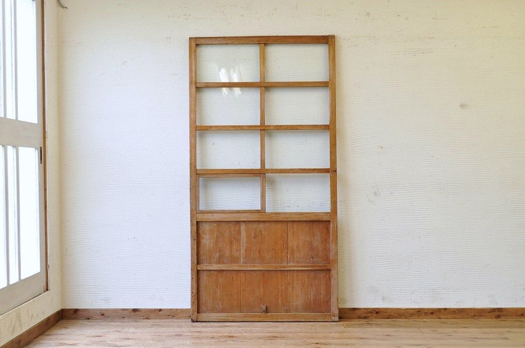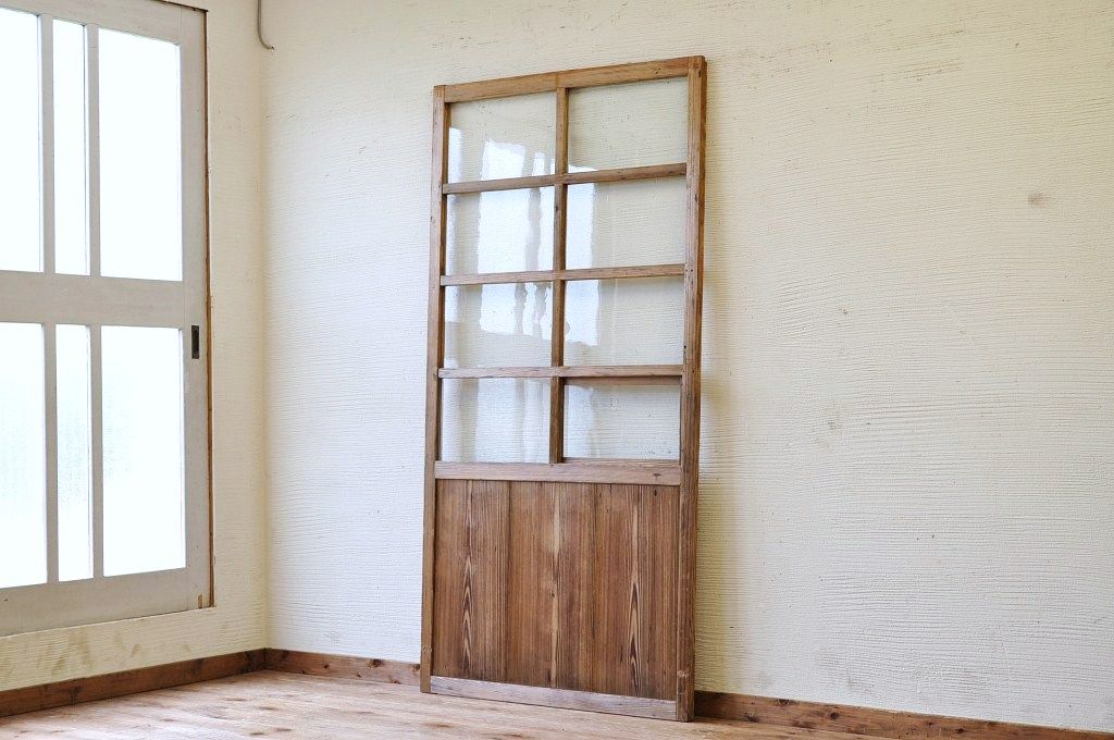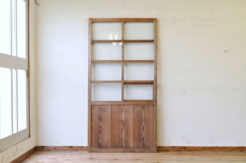 古い木味の小窓付き引き戸1枚です。