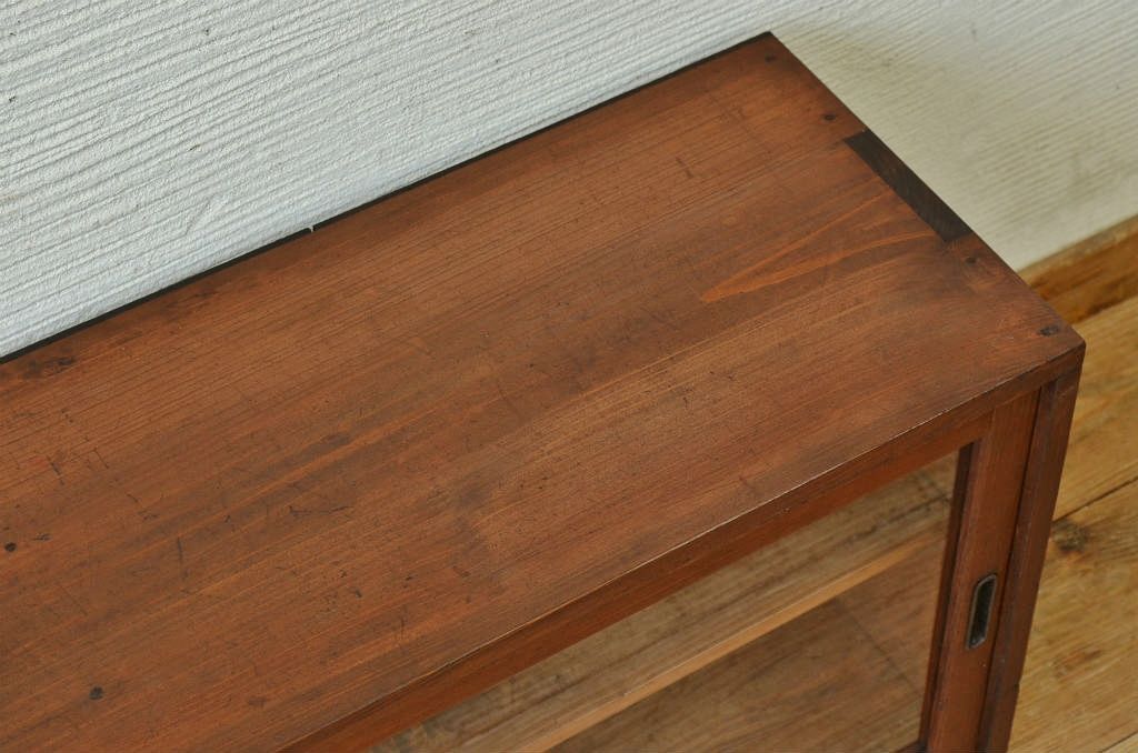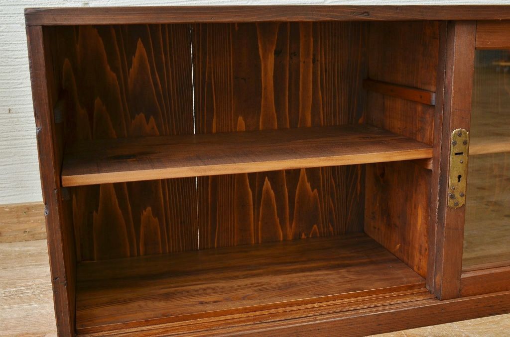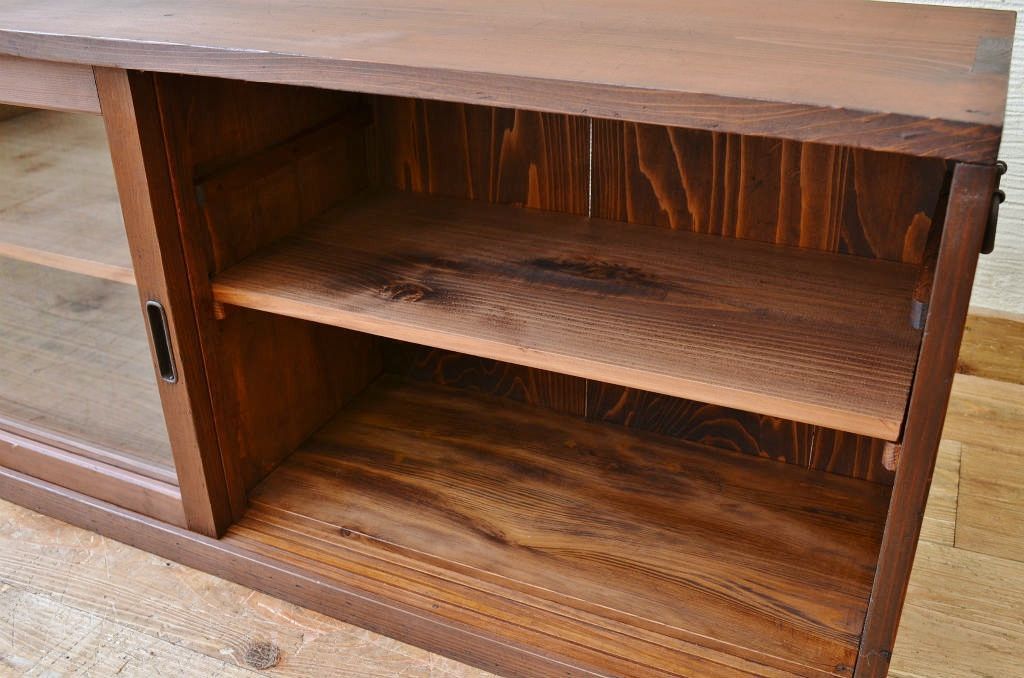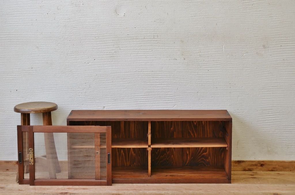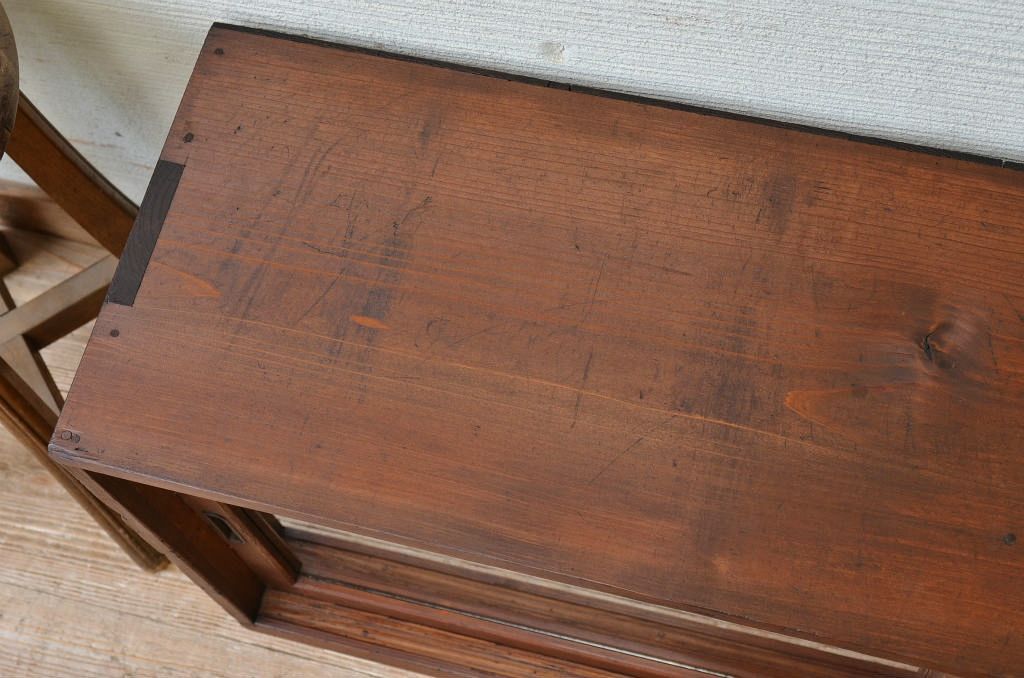 アンティーク家具 古い木のシンプルなアンティーク収納棚(ローボード)