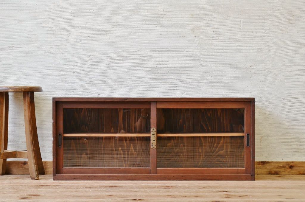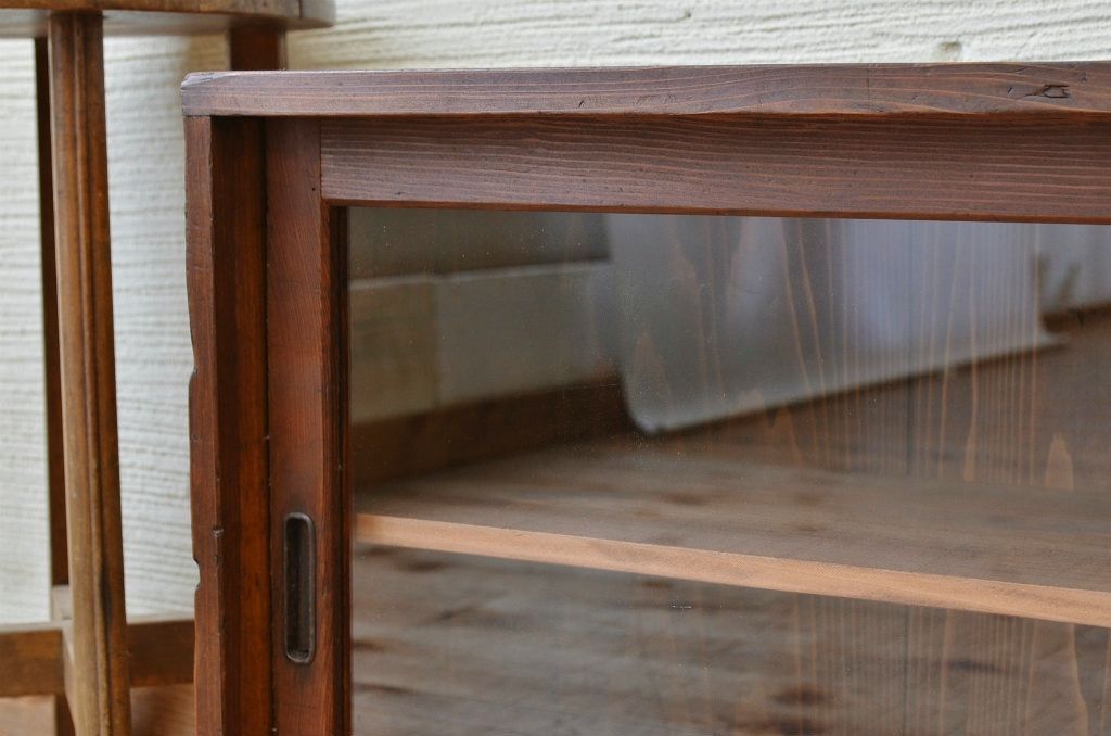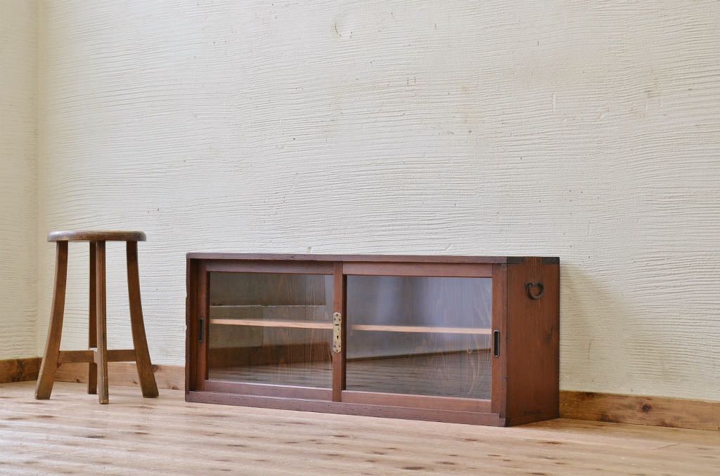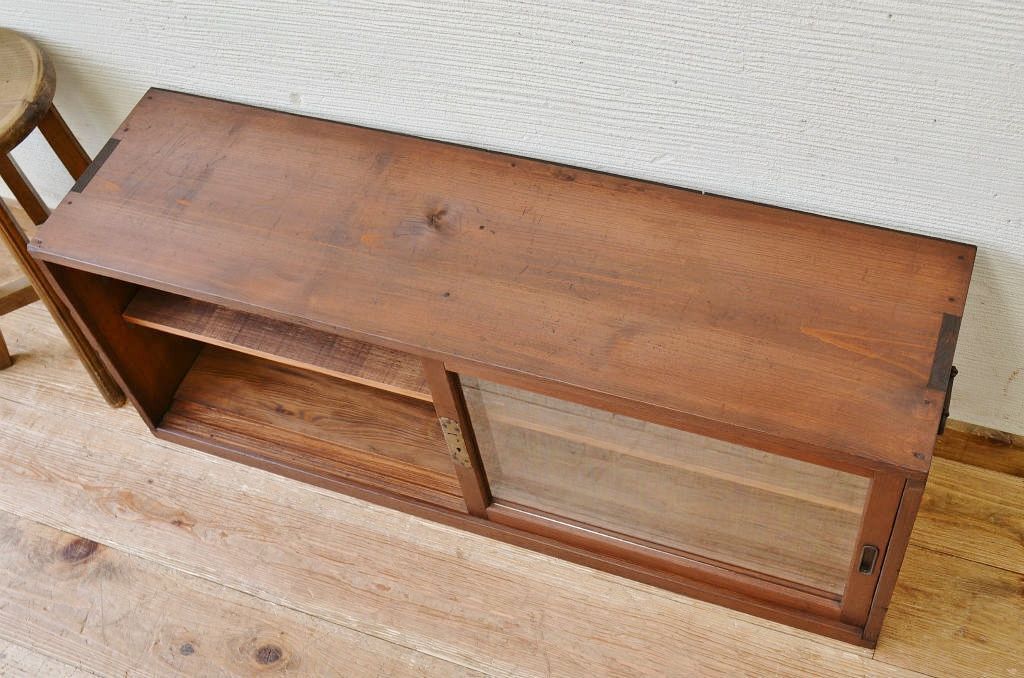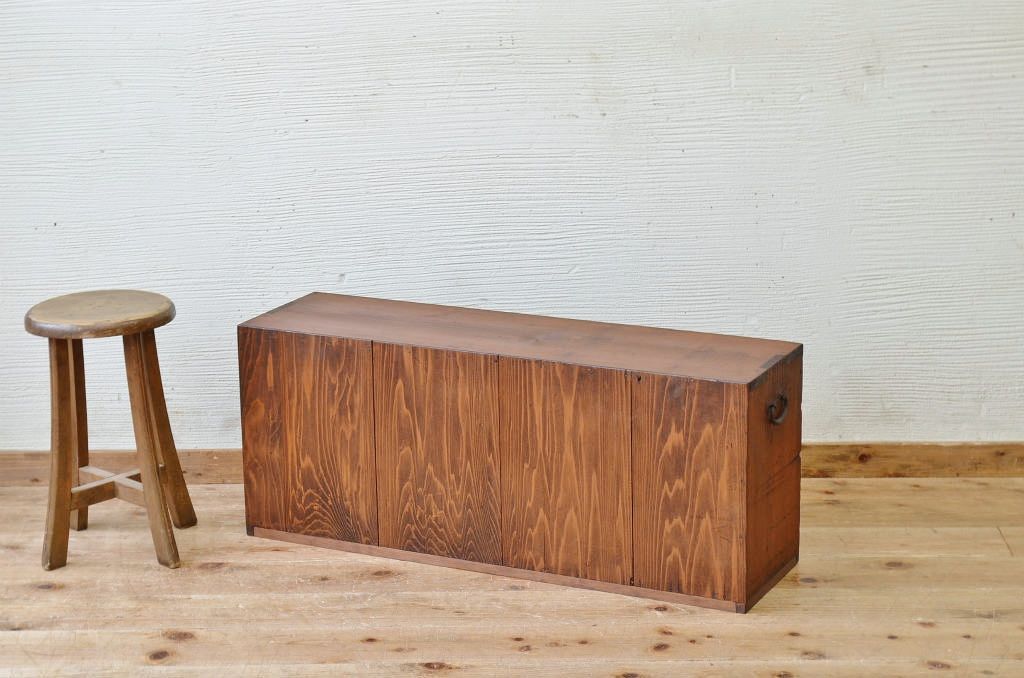 アンティーク家具 古い木のシンプルなアンティーク収納棚(ローボード)