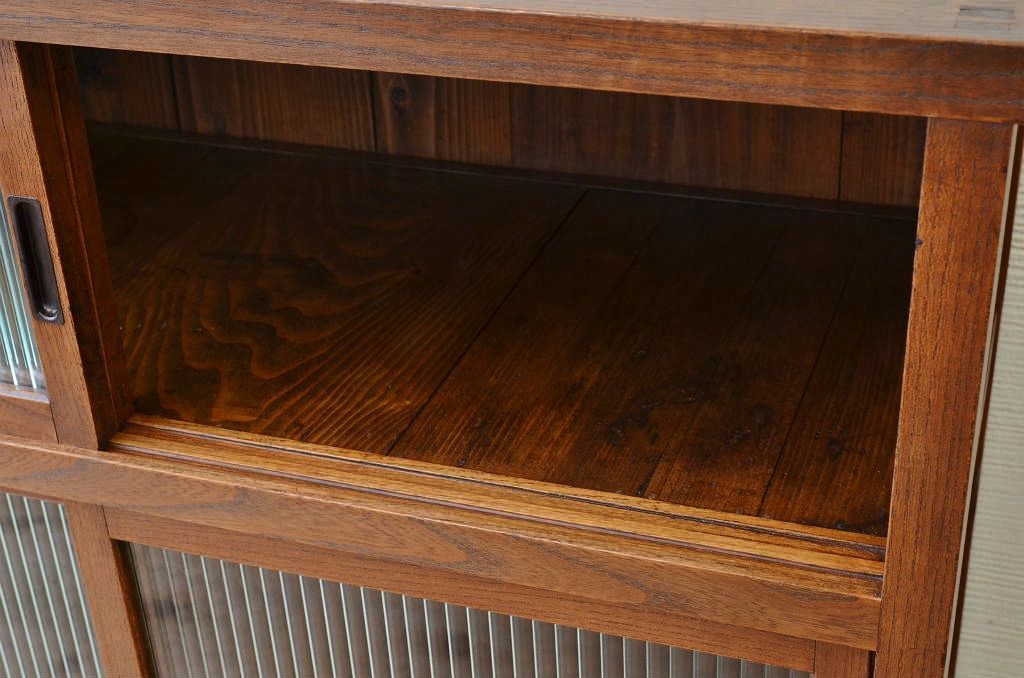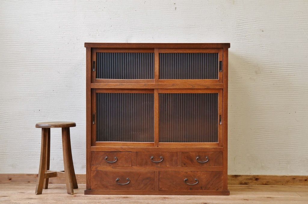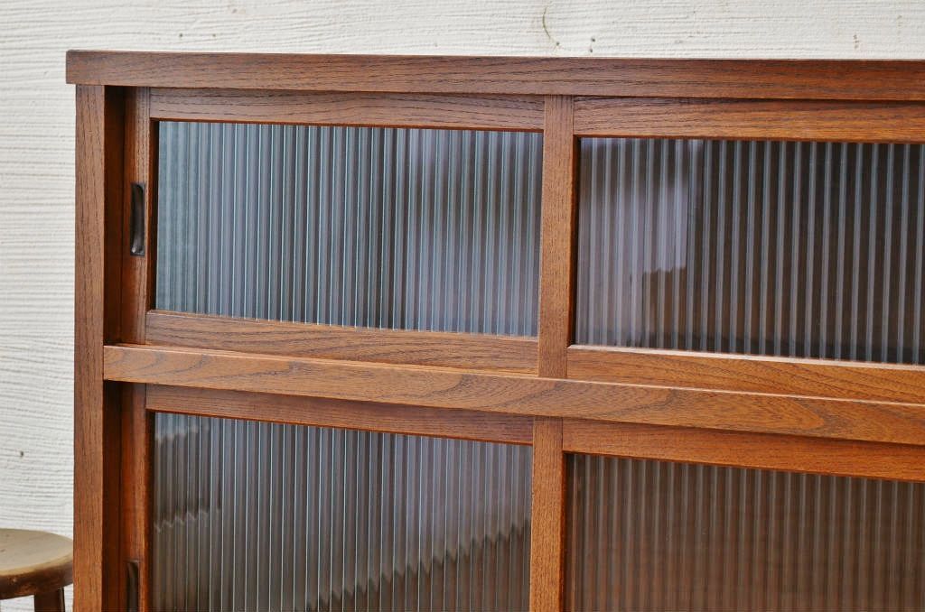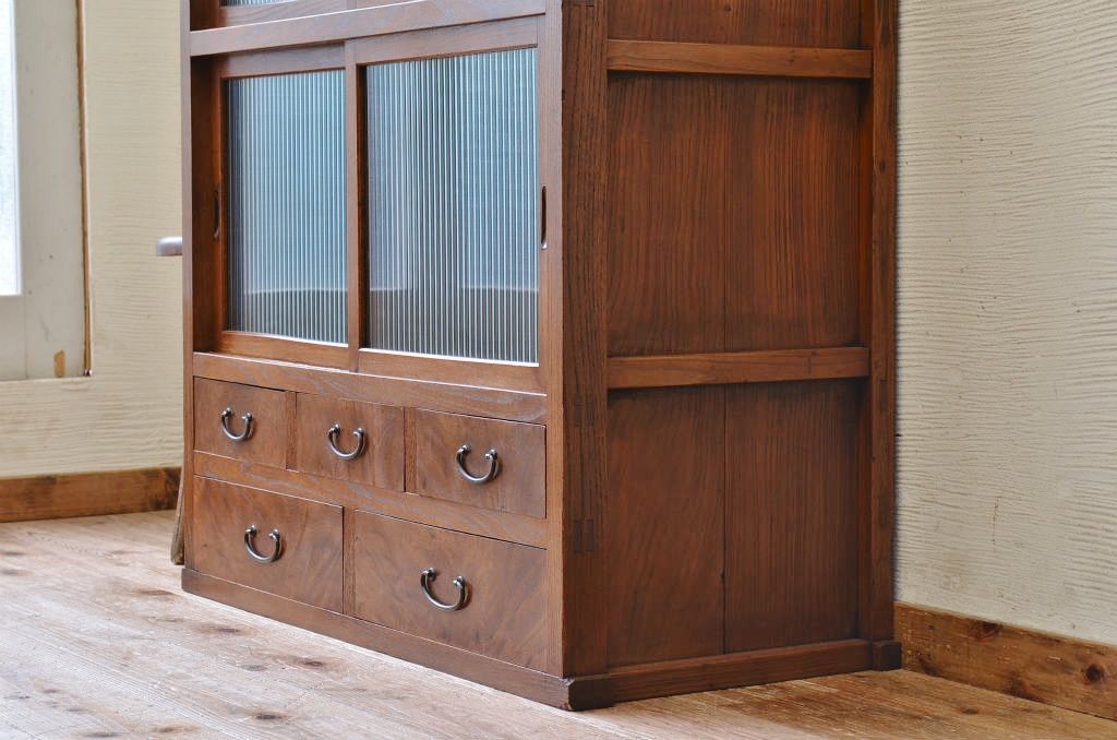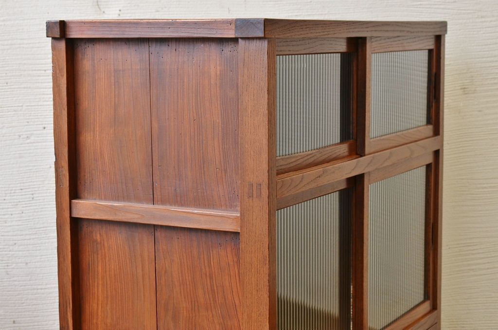 アンティーク家具 前面欅!モールガラスアンティーク収納棚(食器棚)