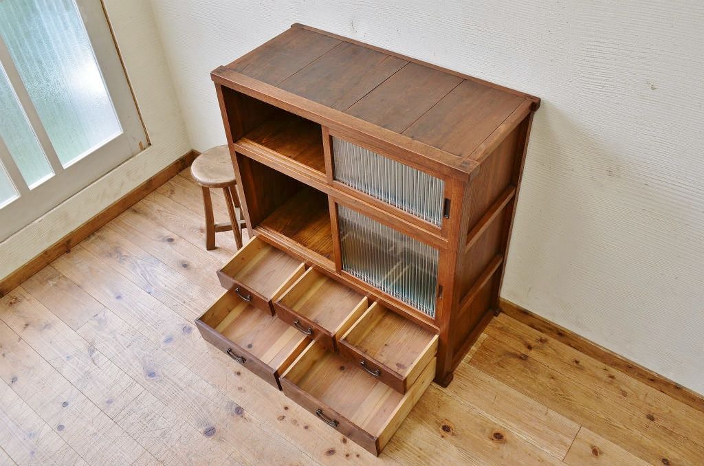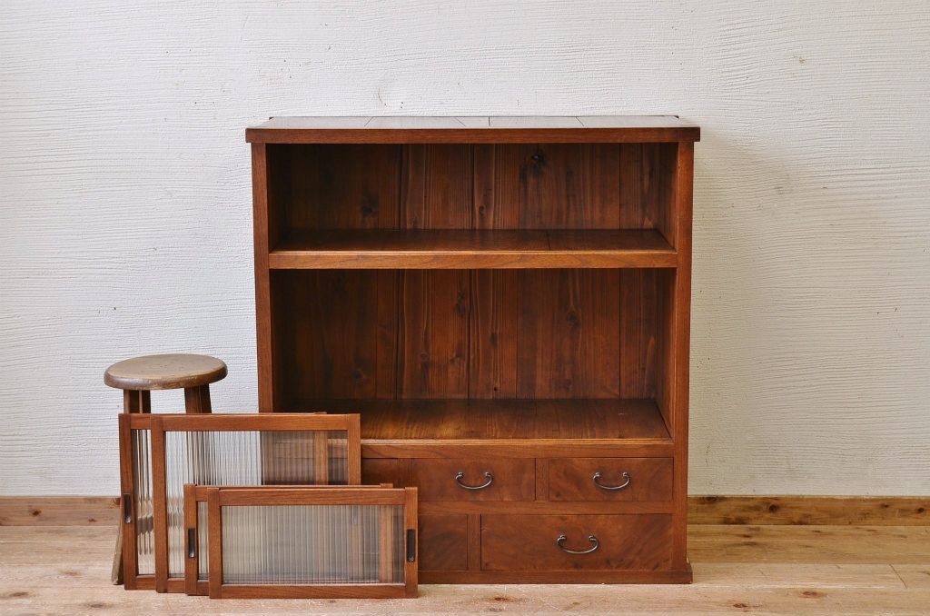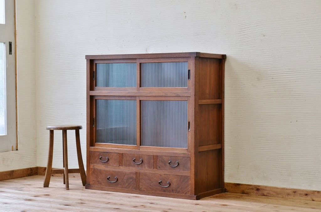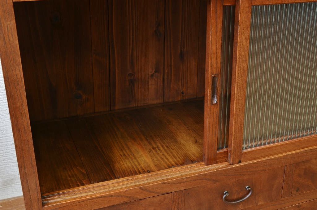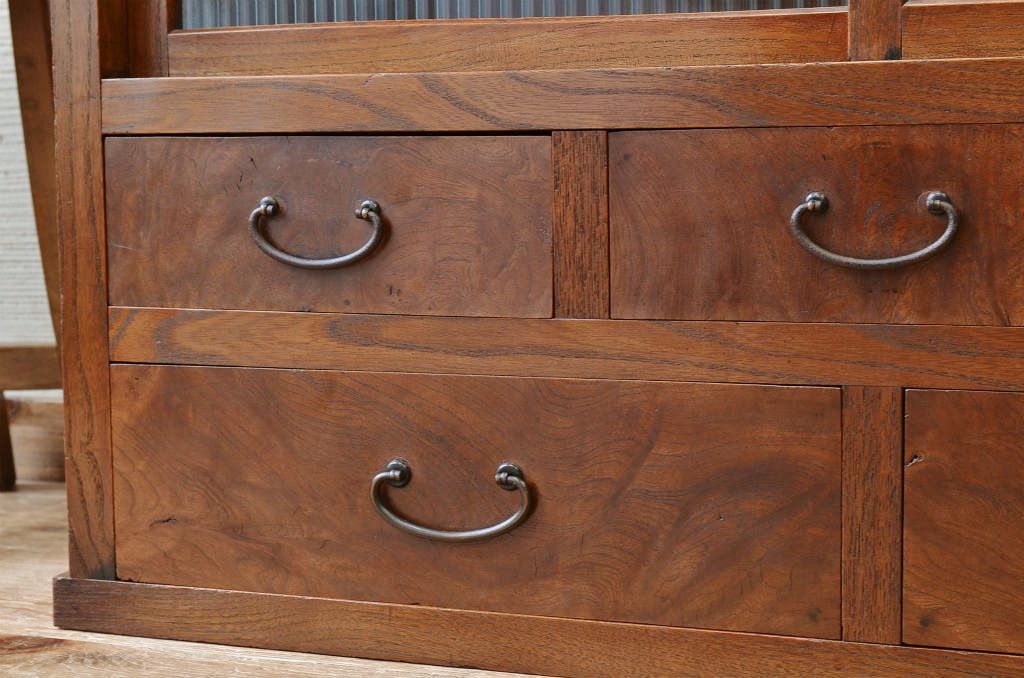 アンティーク家具 前面欅!モールガラスアンティーク収納棚(食器棚)