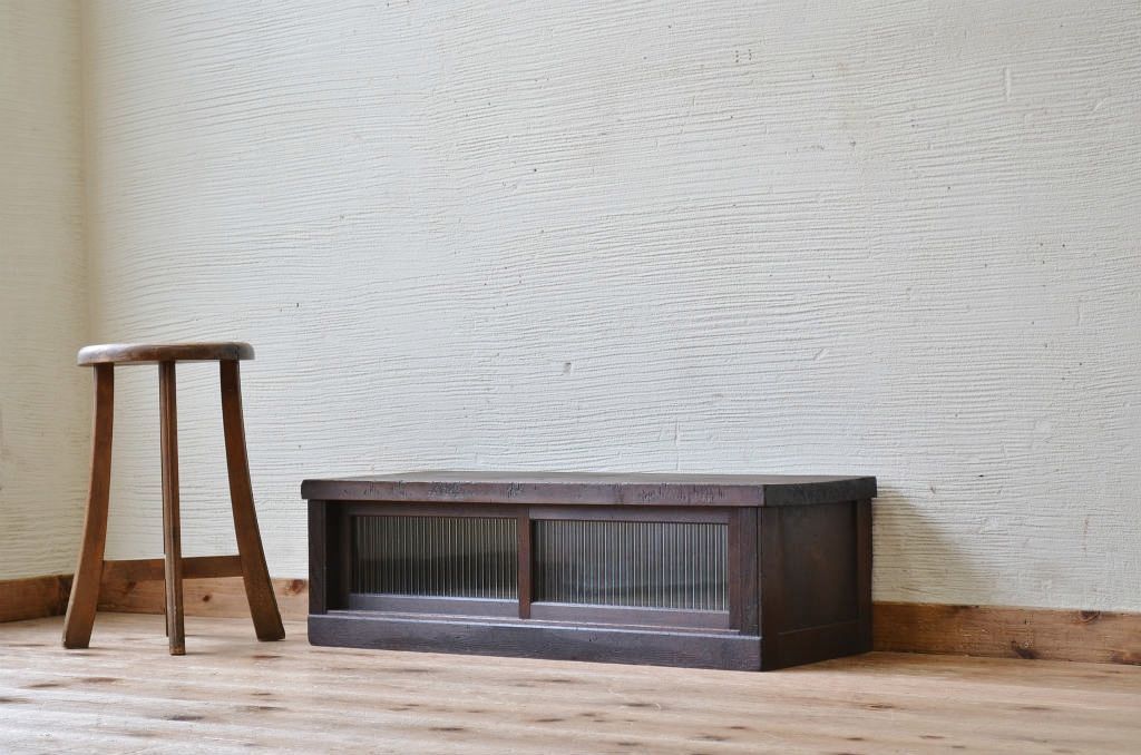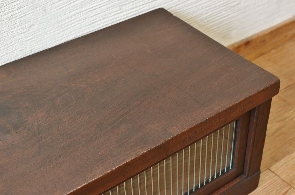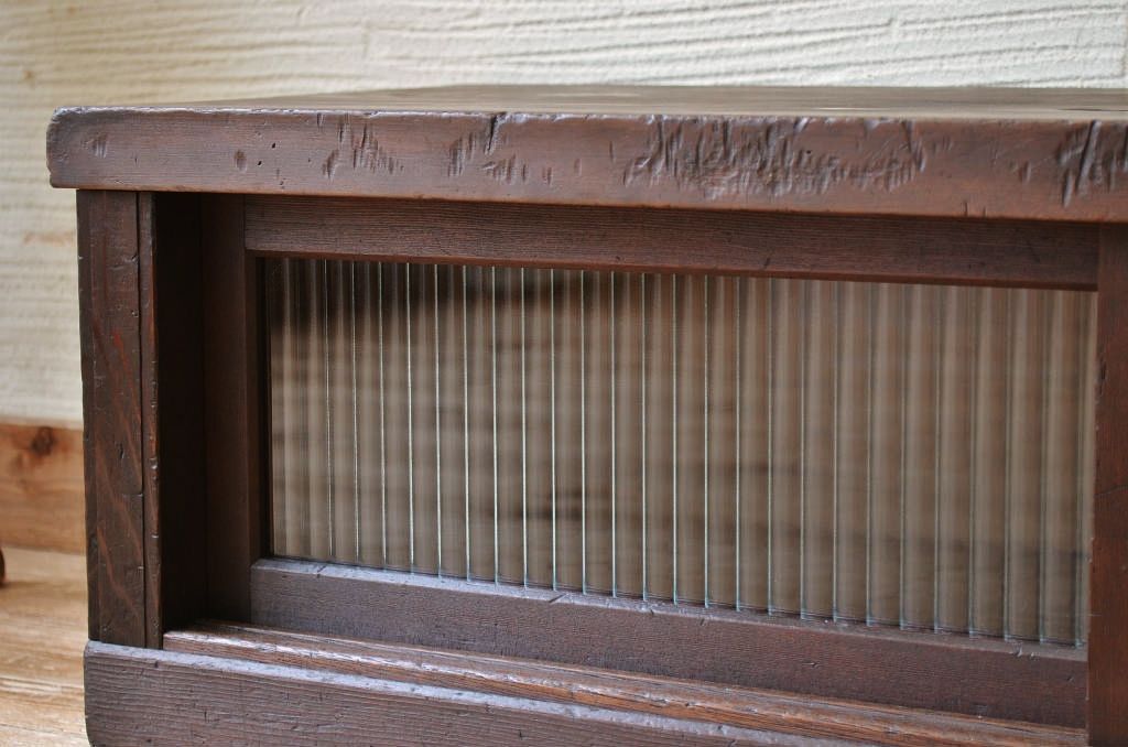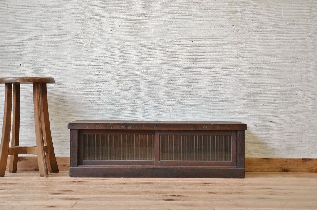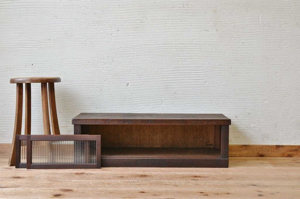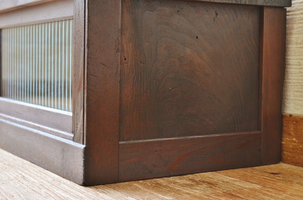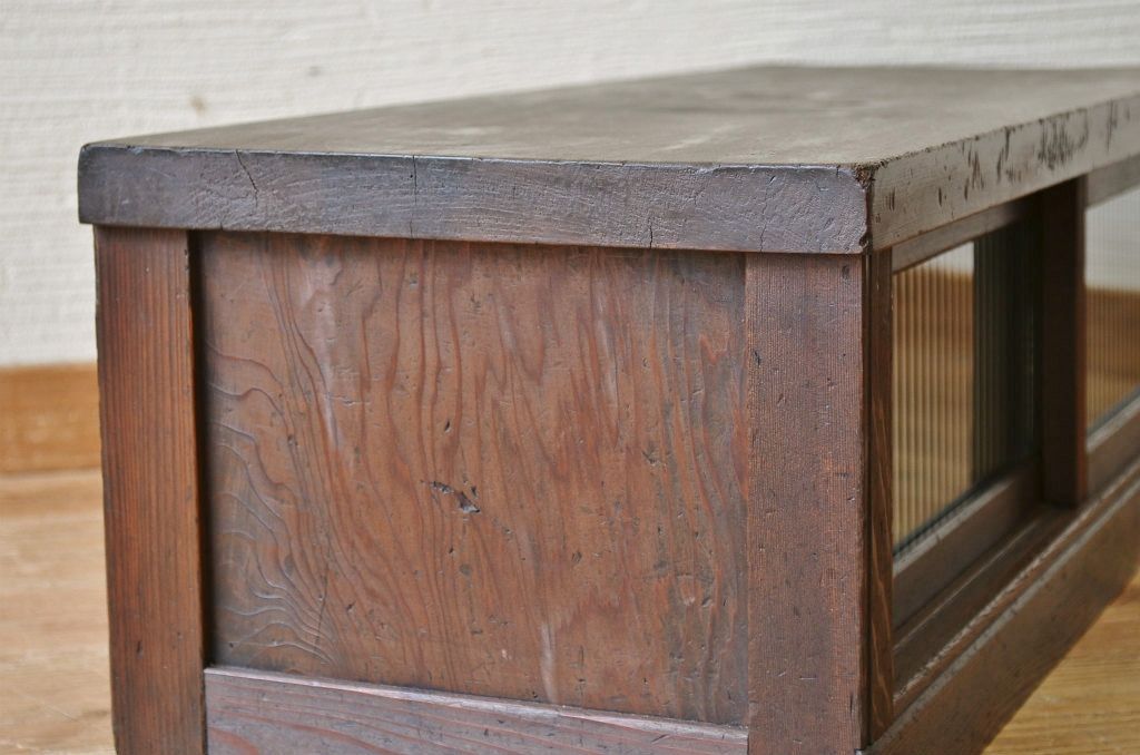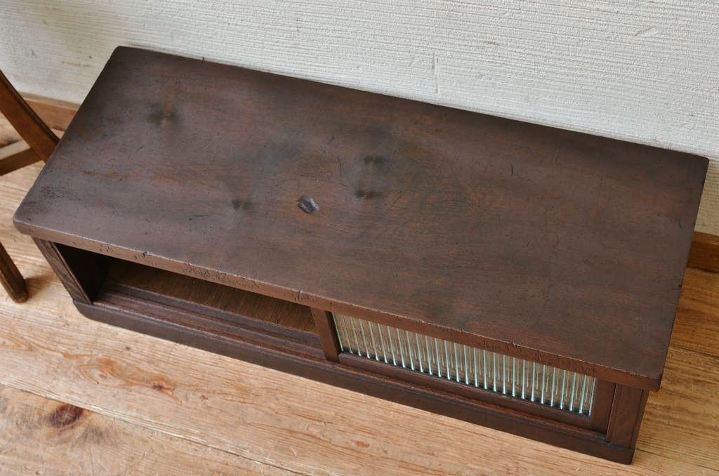 アンティーク家具 古い木のモールガラスアンティークローボード