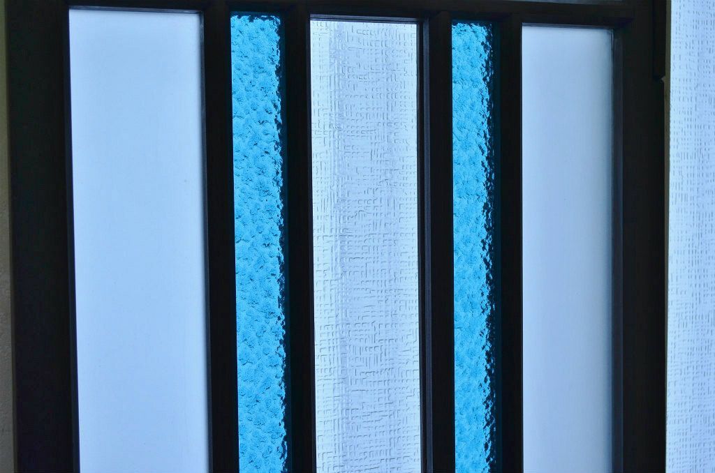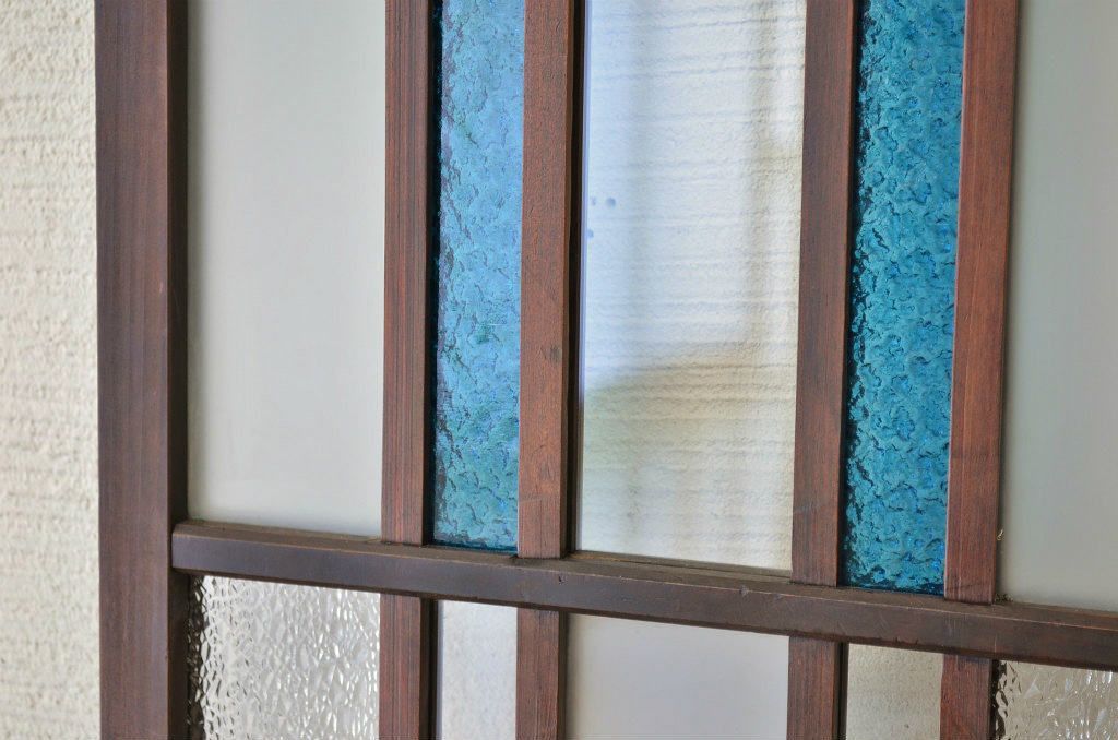 大正ロマンの色ガラス入り幅せま扉です。