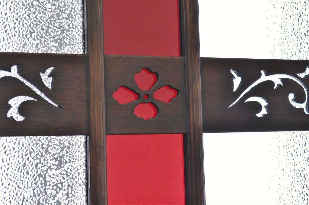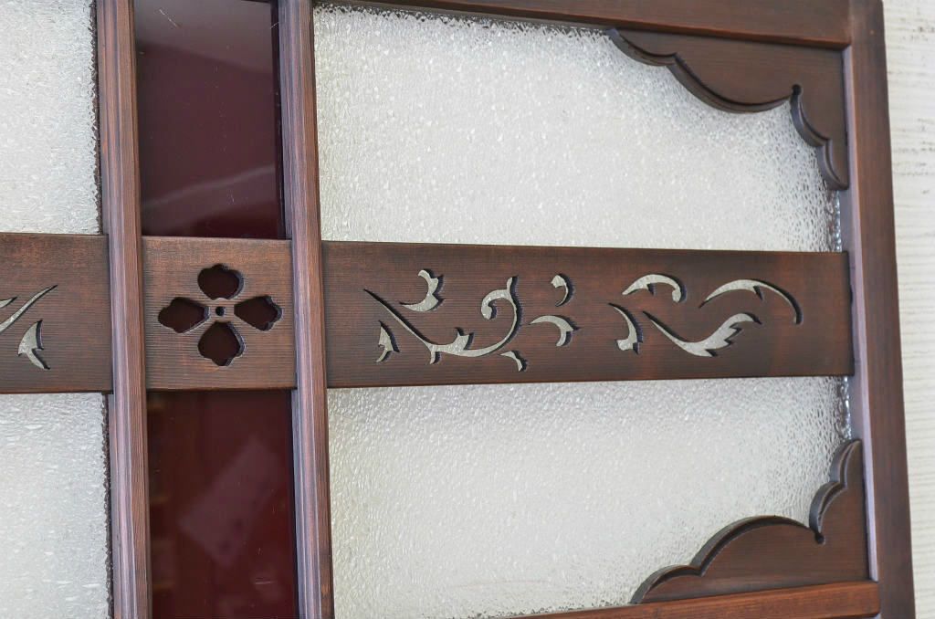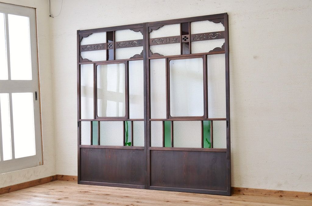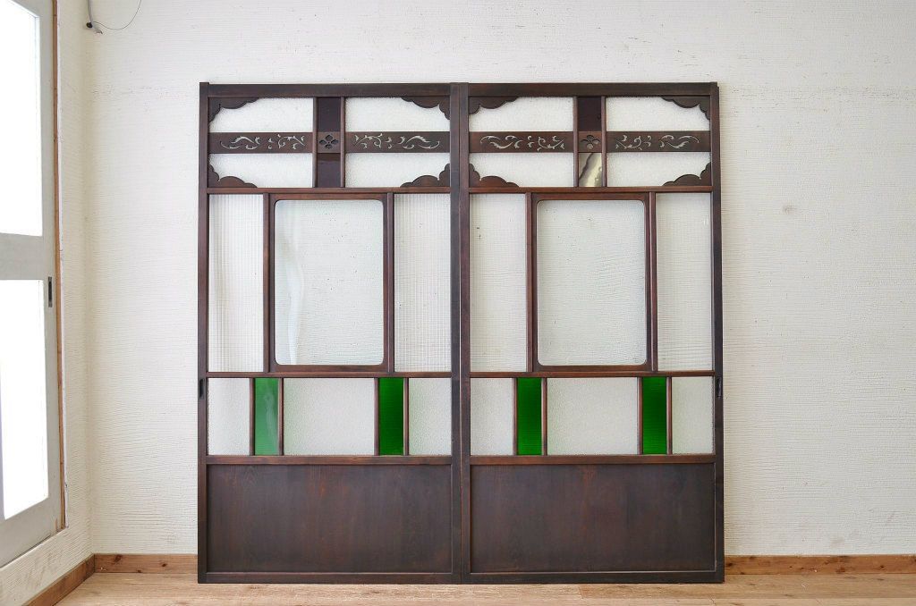 色ガラス入り透かし彫り引き戸2枚セットです。