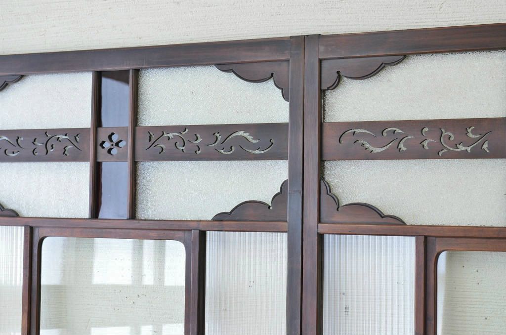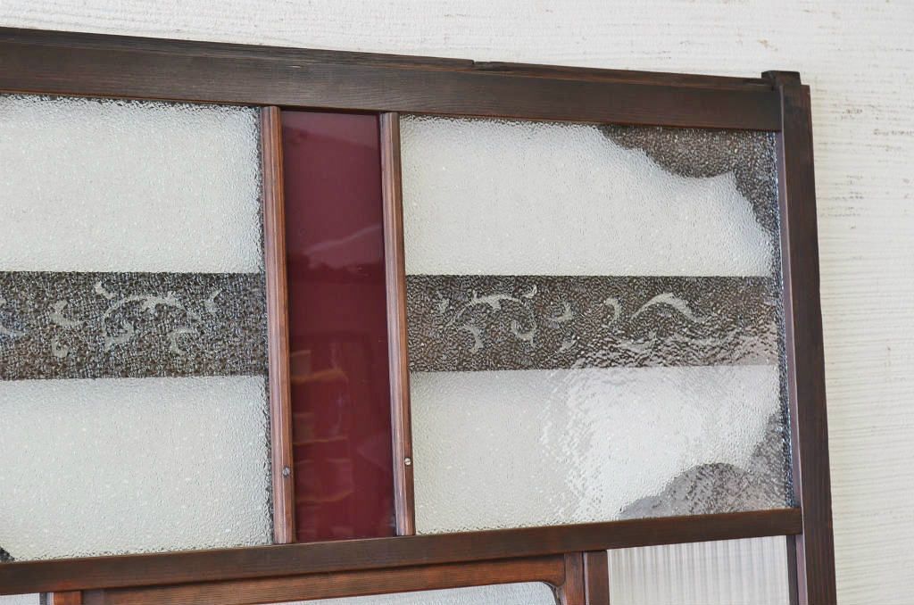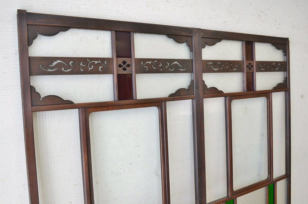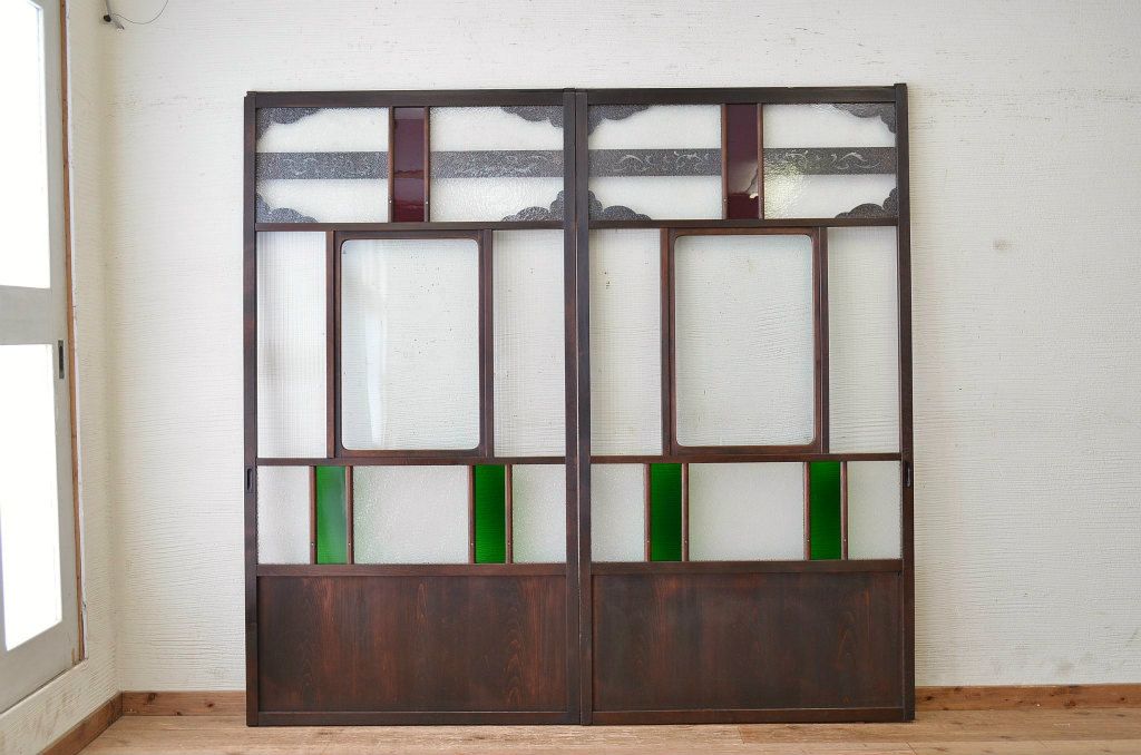 極上!色ガラス入り透かし彫り引き戸2枚セット(ガラス戸)