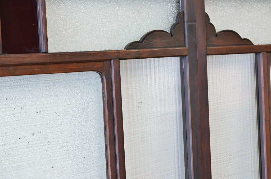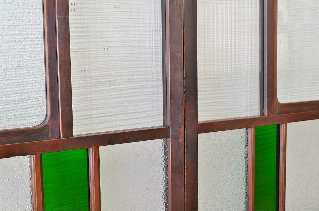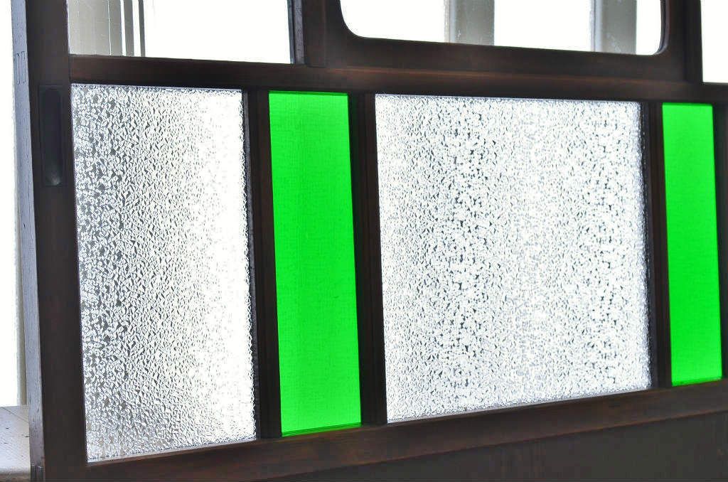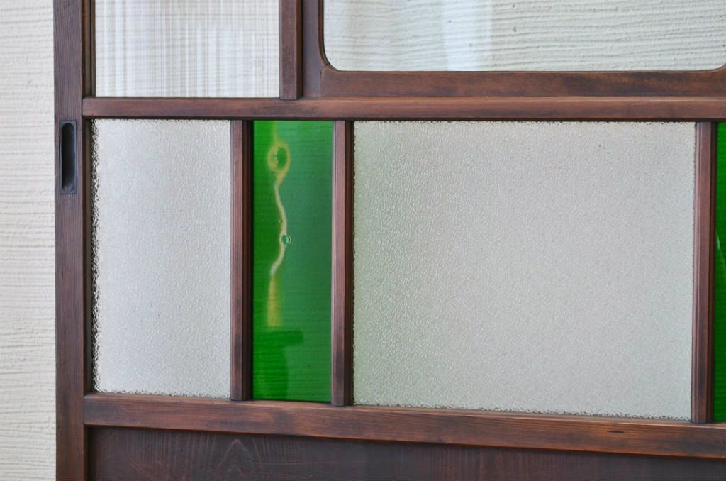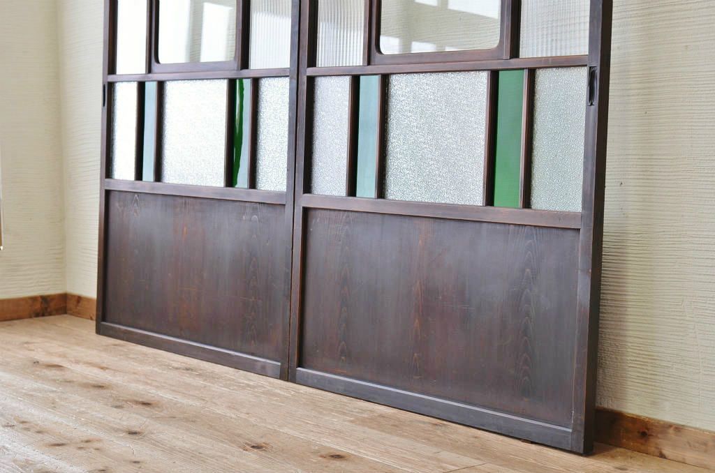 極上!色ガラス入り透かし彫り引き戸2枚セット(ガラス戸)