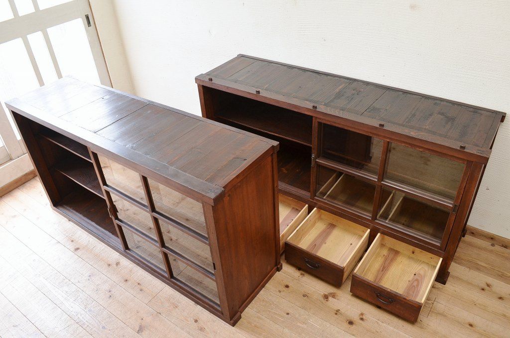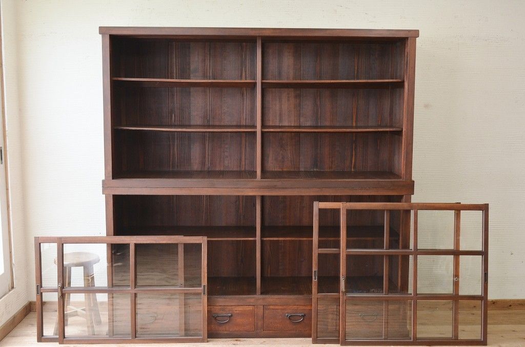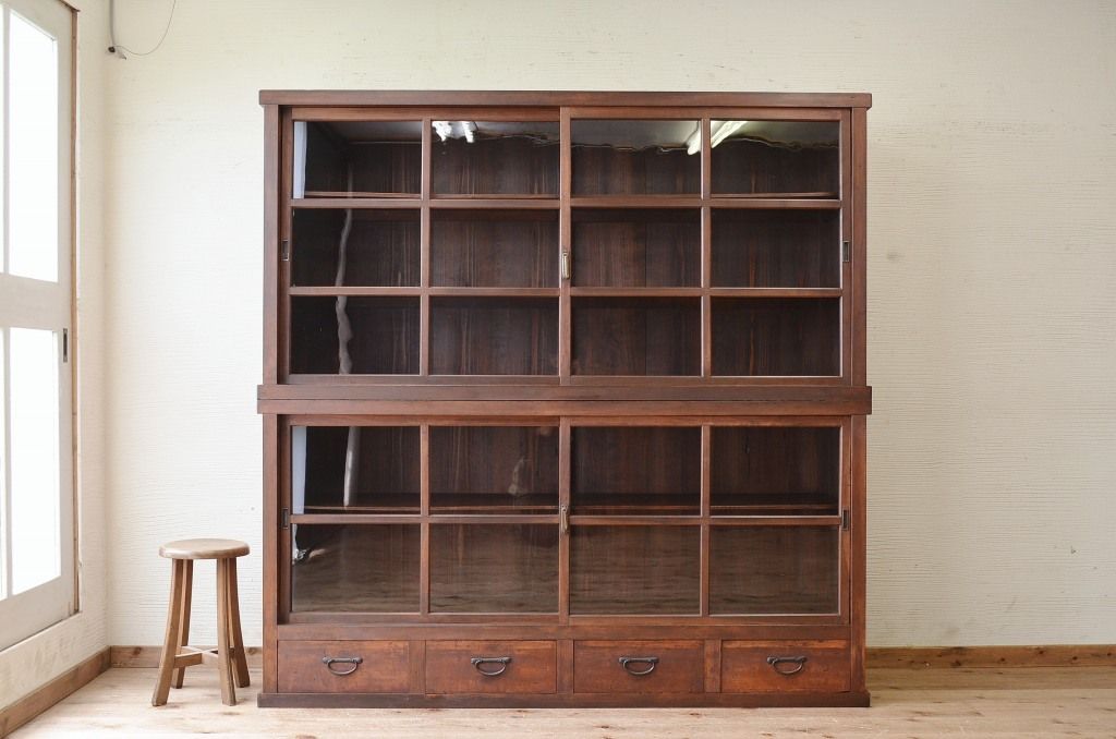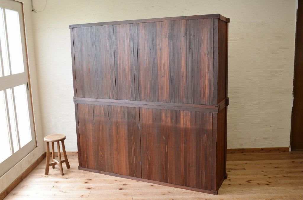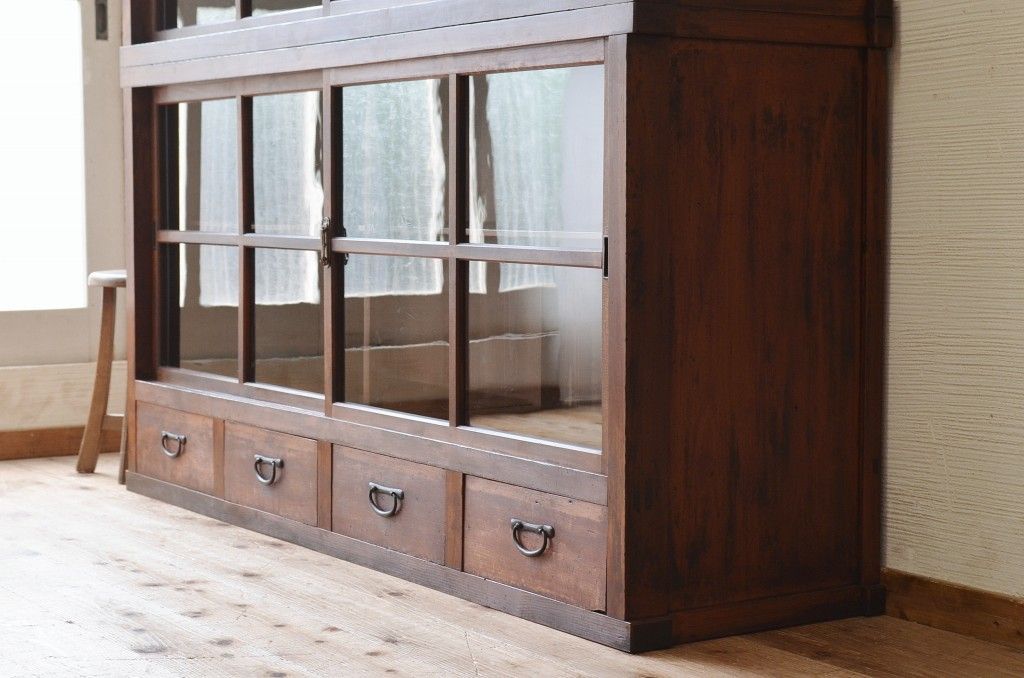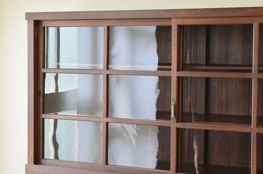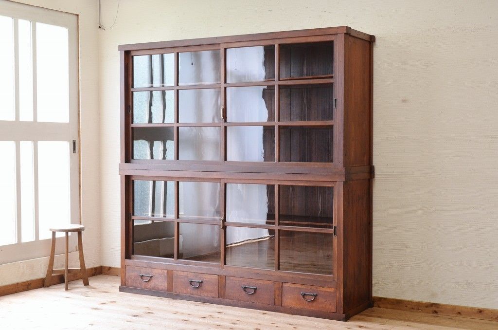 アンティーク家具 大きな二段重ねアンティーク収納棚(飾り棚、食器棚)