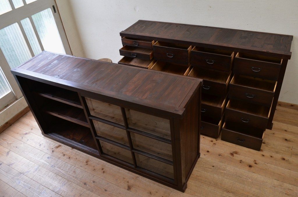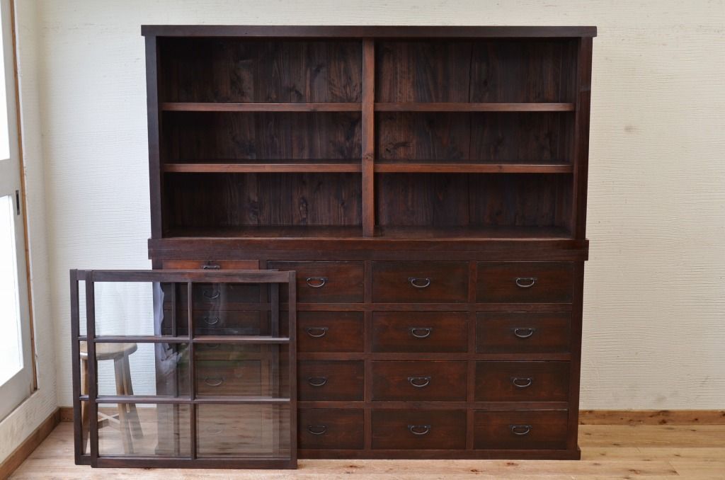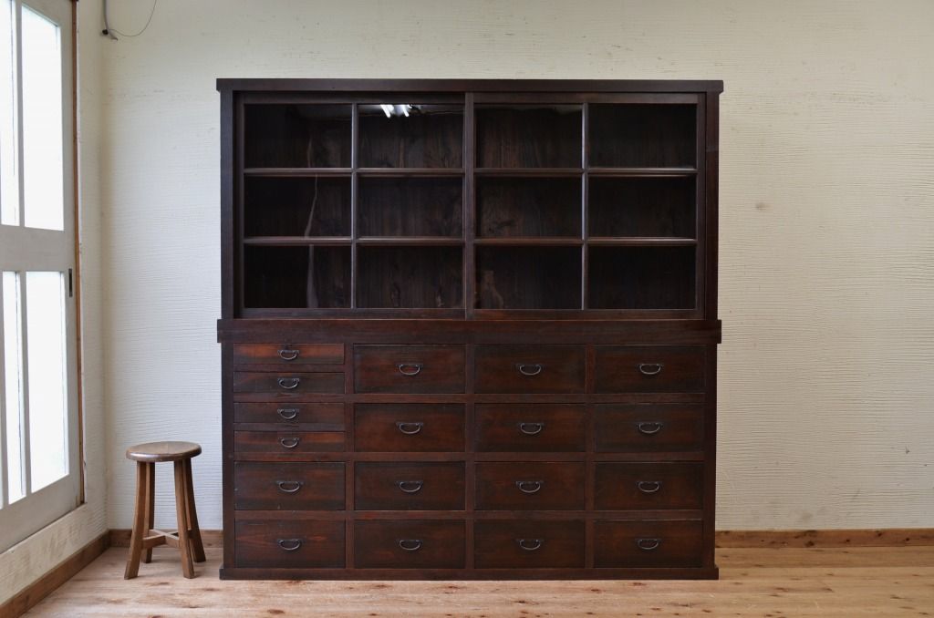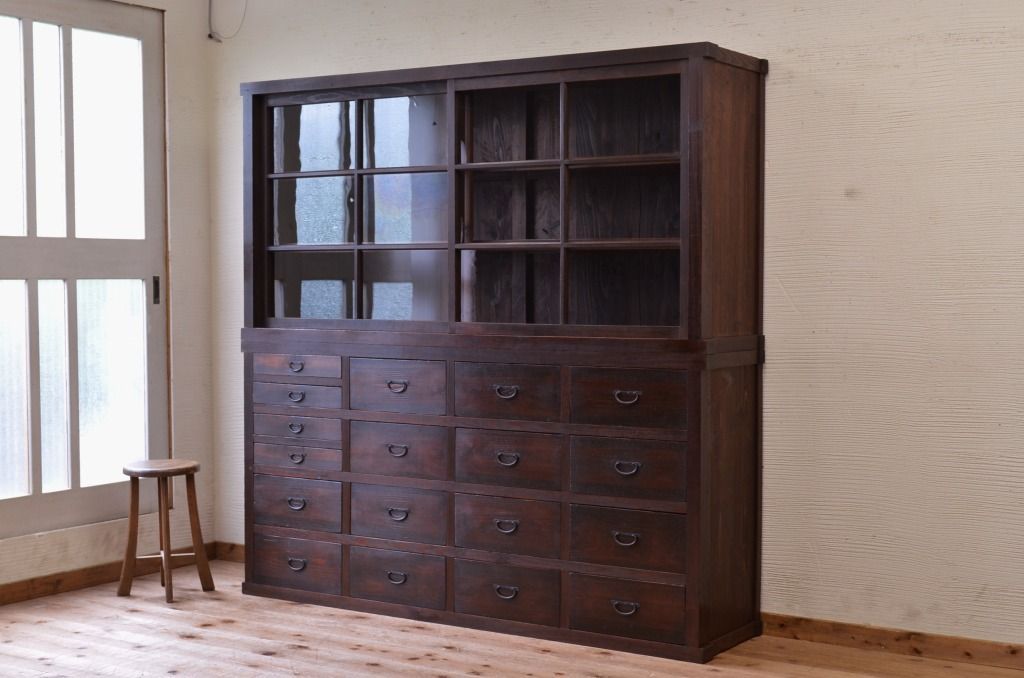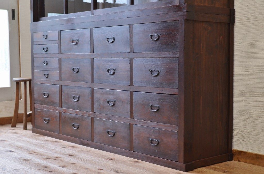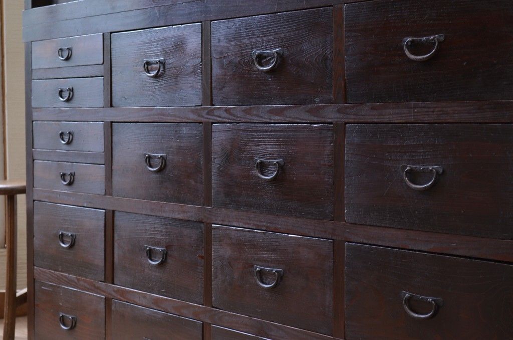 アンティーク家具 明治〜大正 二段重ね引き出し収納棚(薬箪笥)