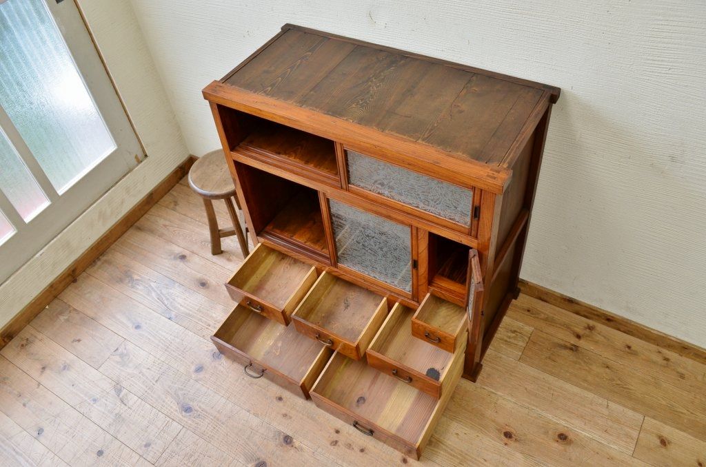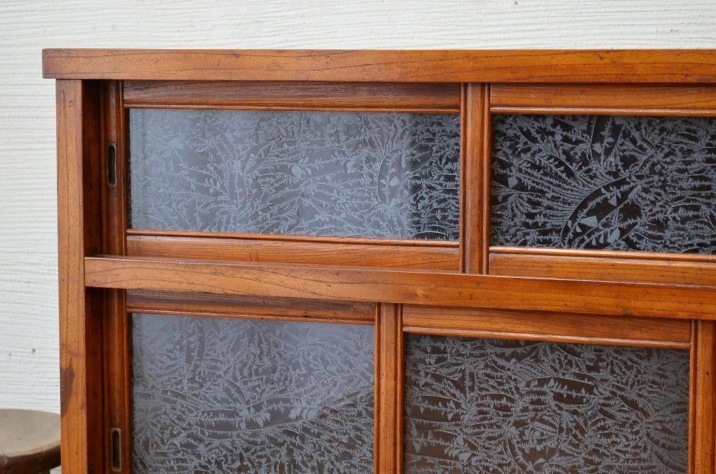 上質な結霜ガラス収納棚です。