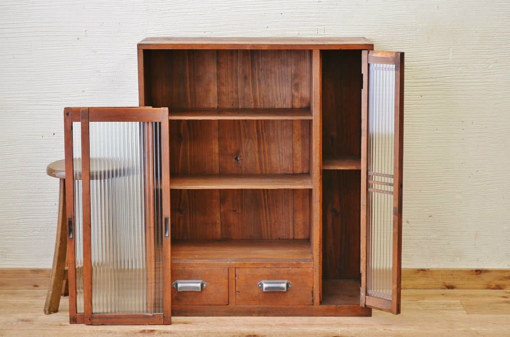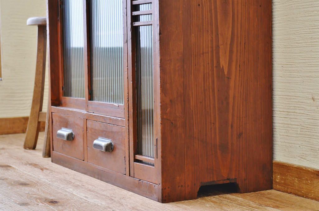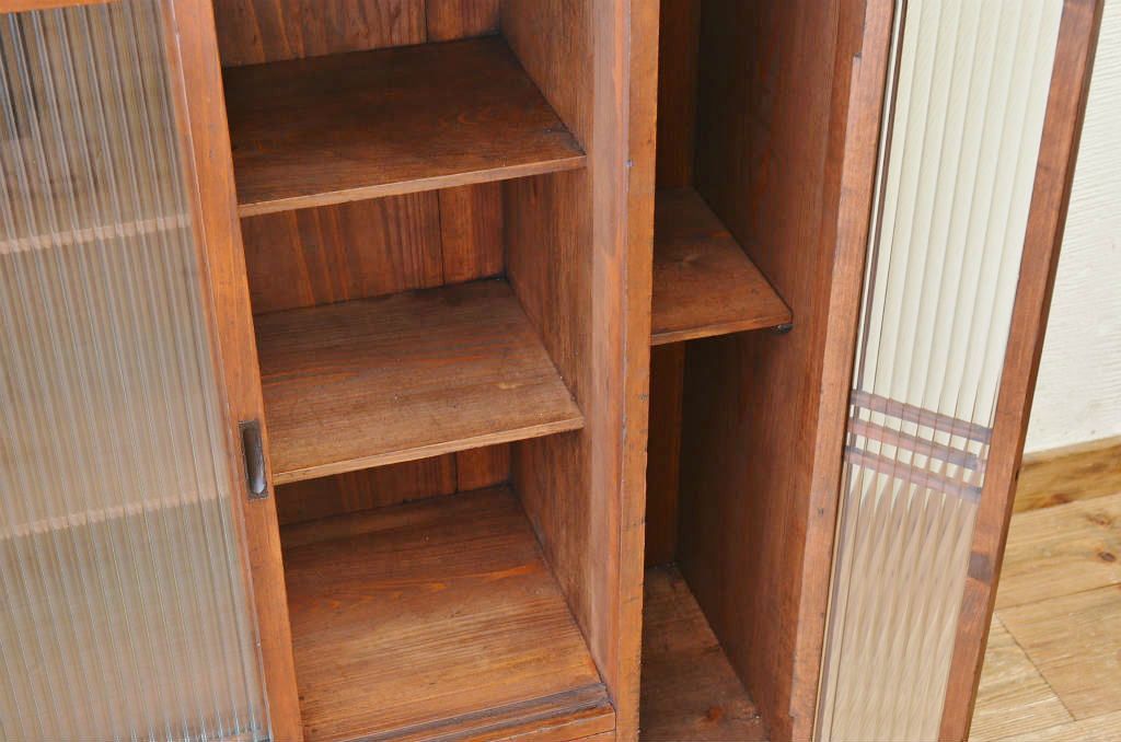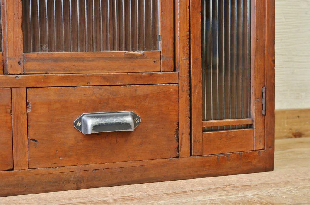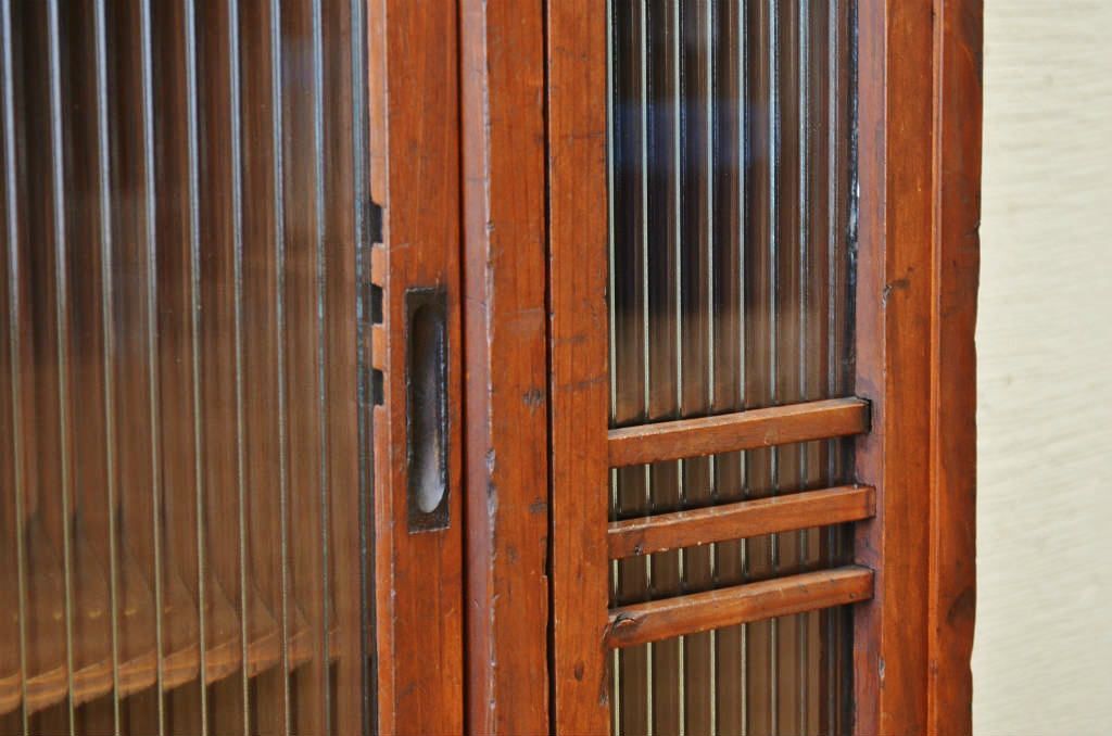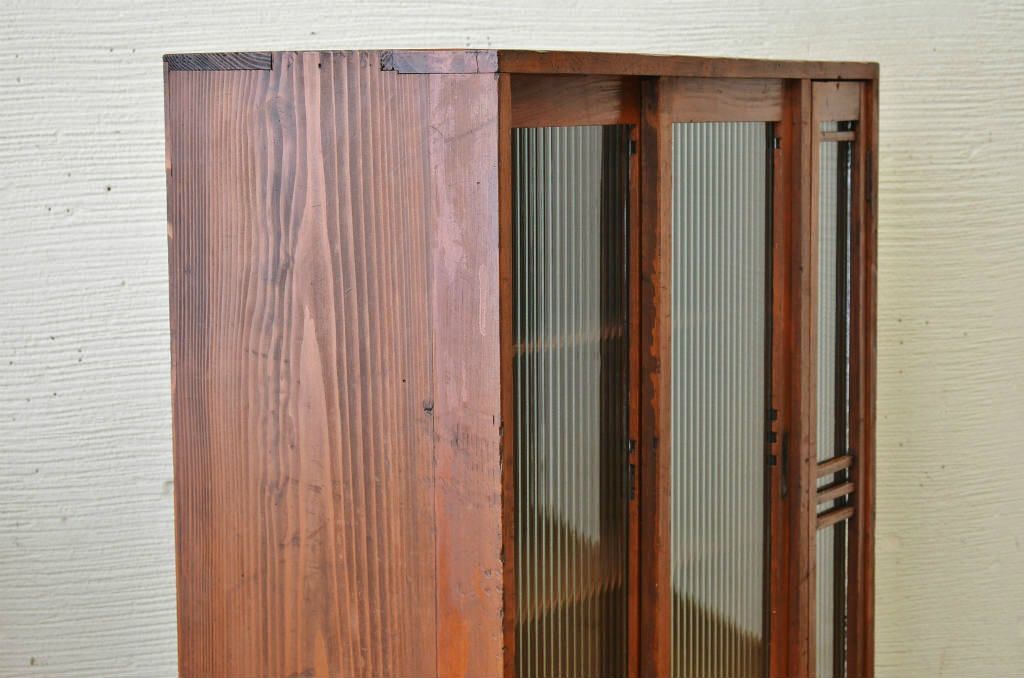 アンティーク家具 古い木のモールガラスアンティーク収納棚