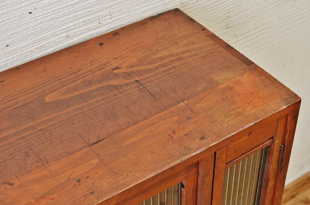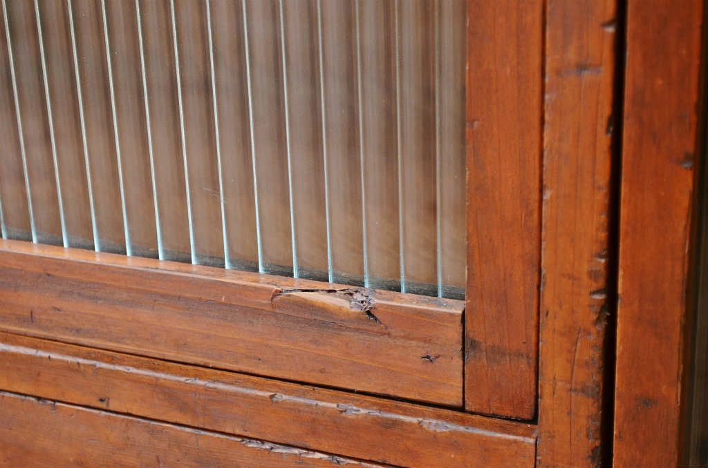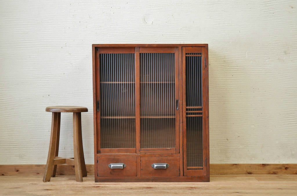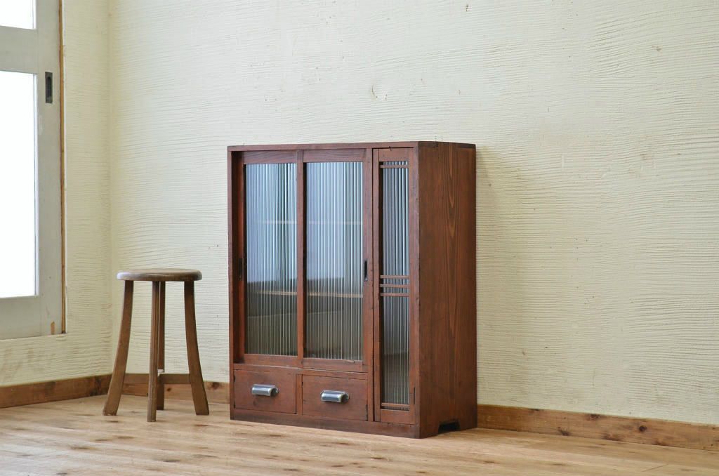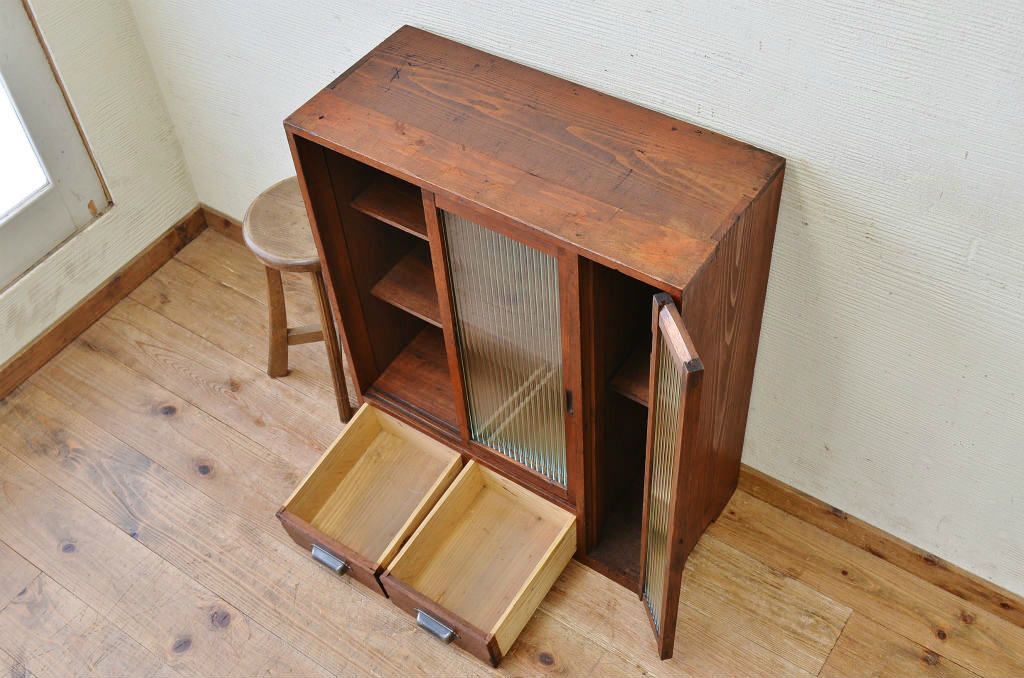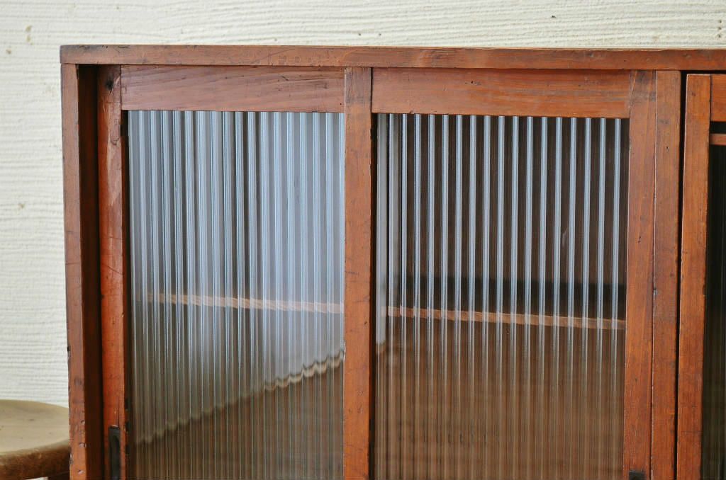 アンティーク家具 古い木のモールガラスアンティーク収納棚