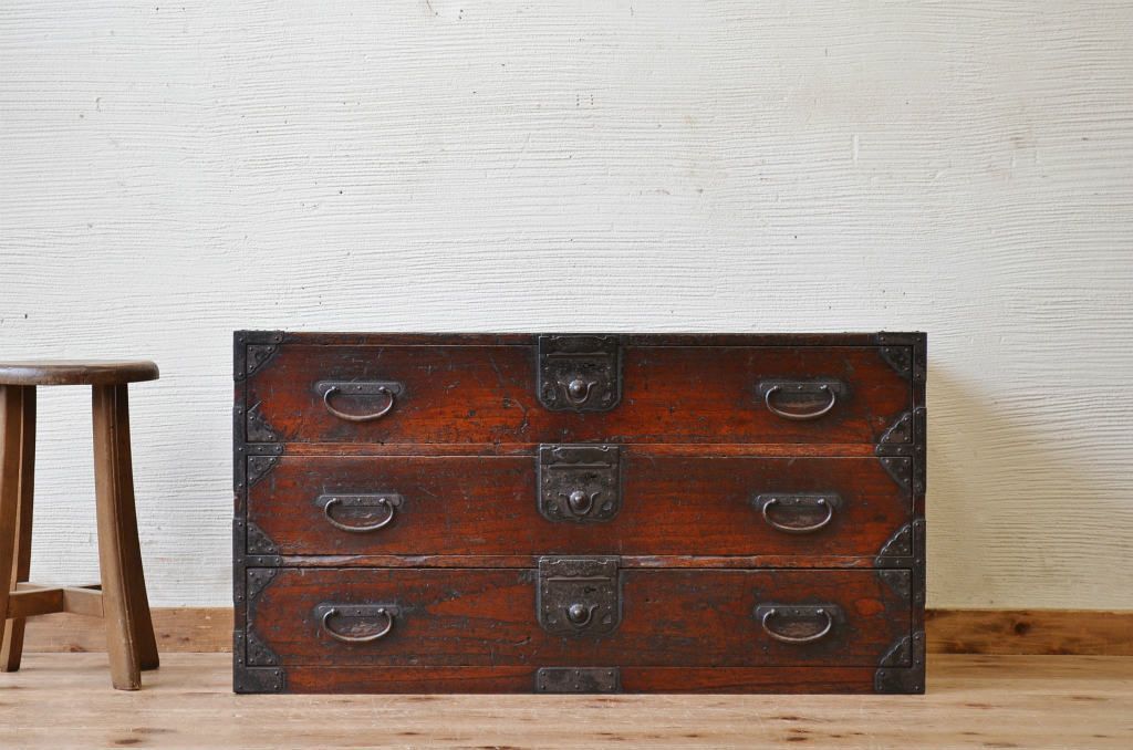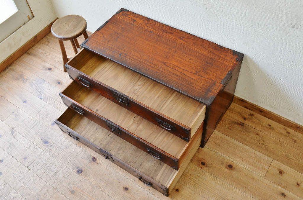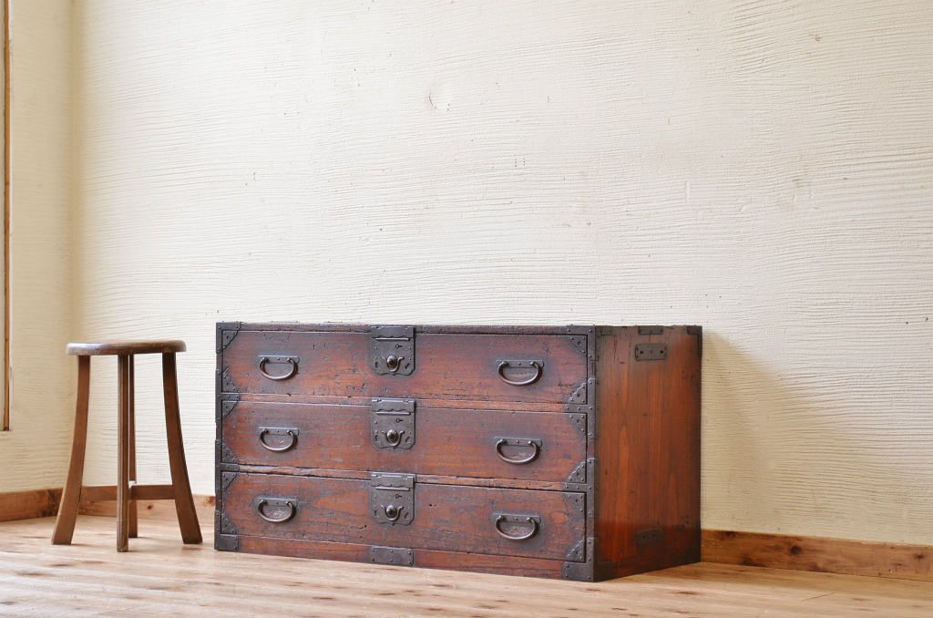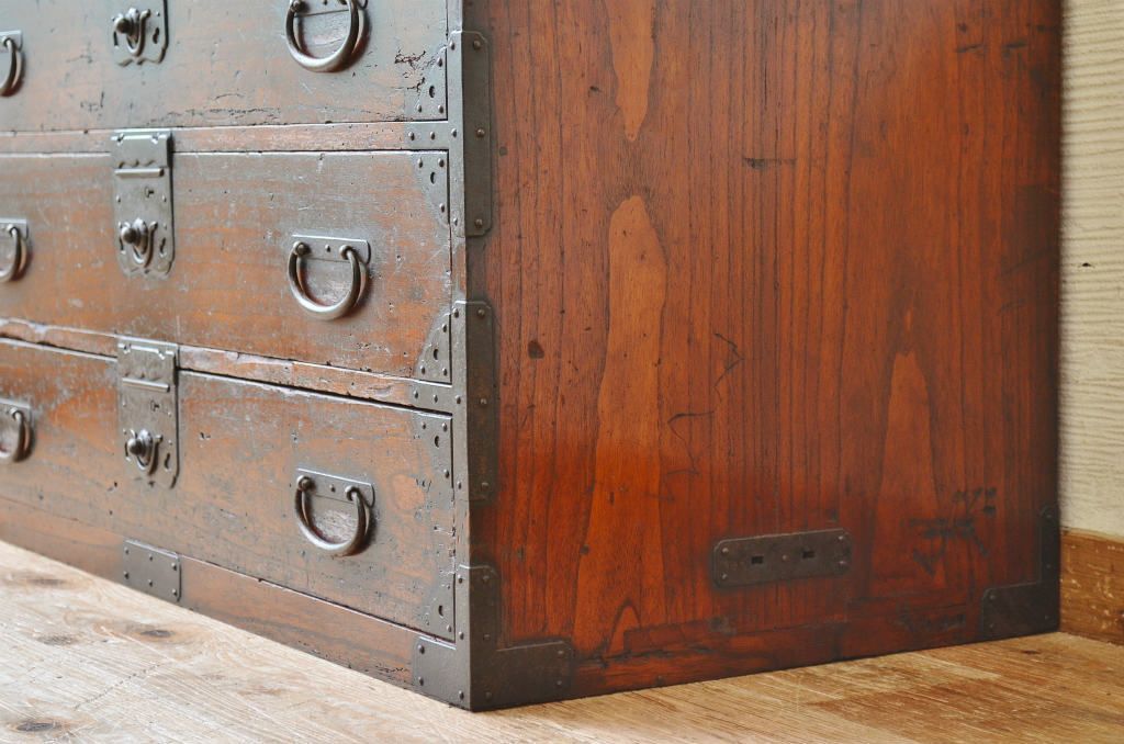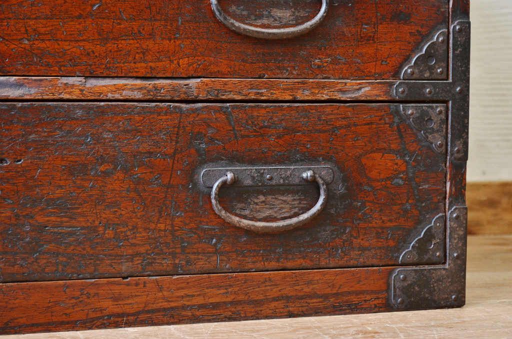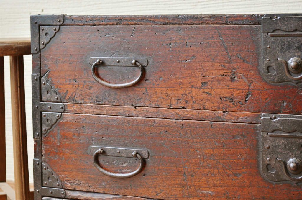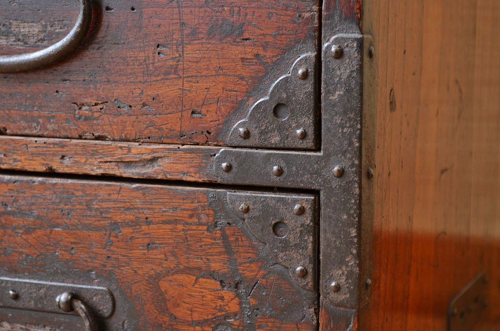 アンティーク家具 古い木の時代箪笥ローチェスト