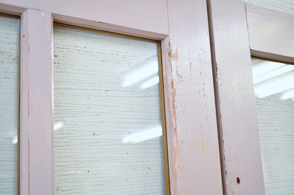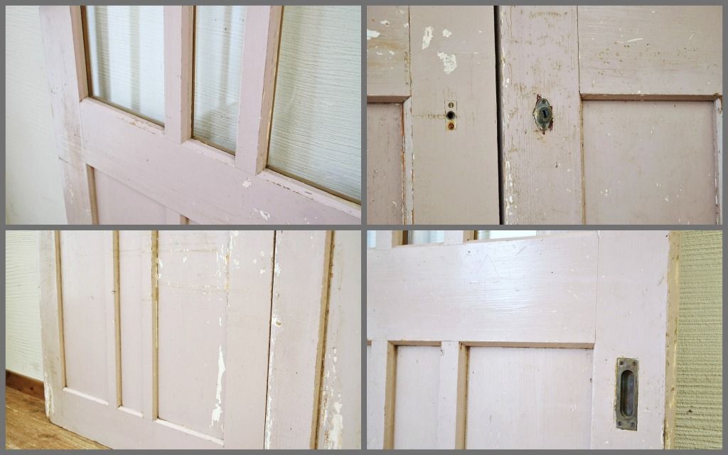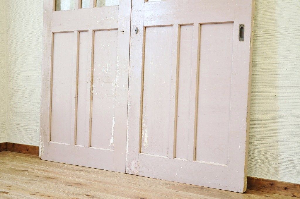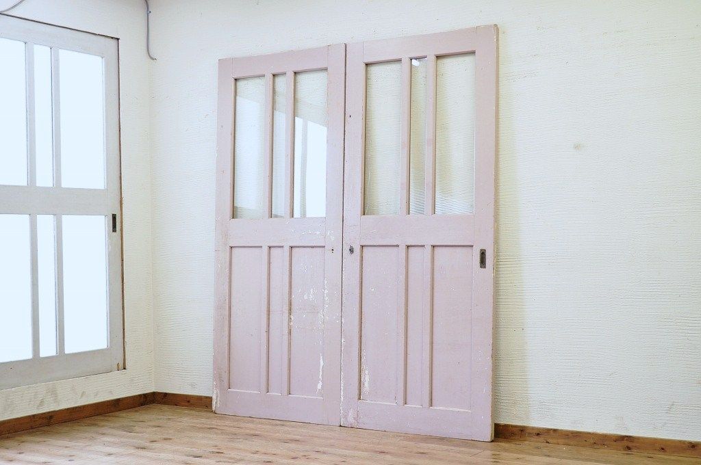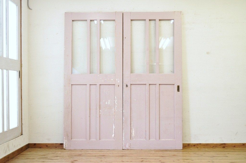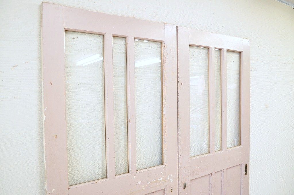 古い学校のペイントガラス戸2枚セット