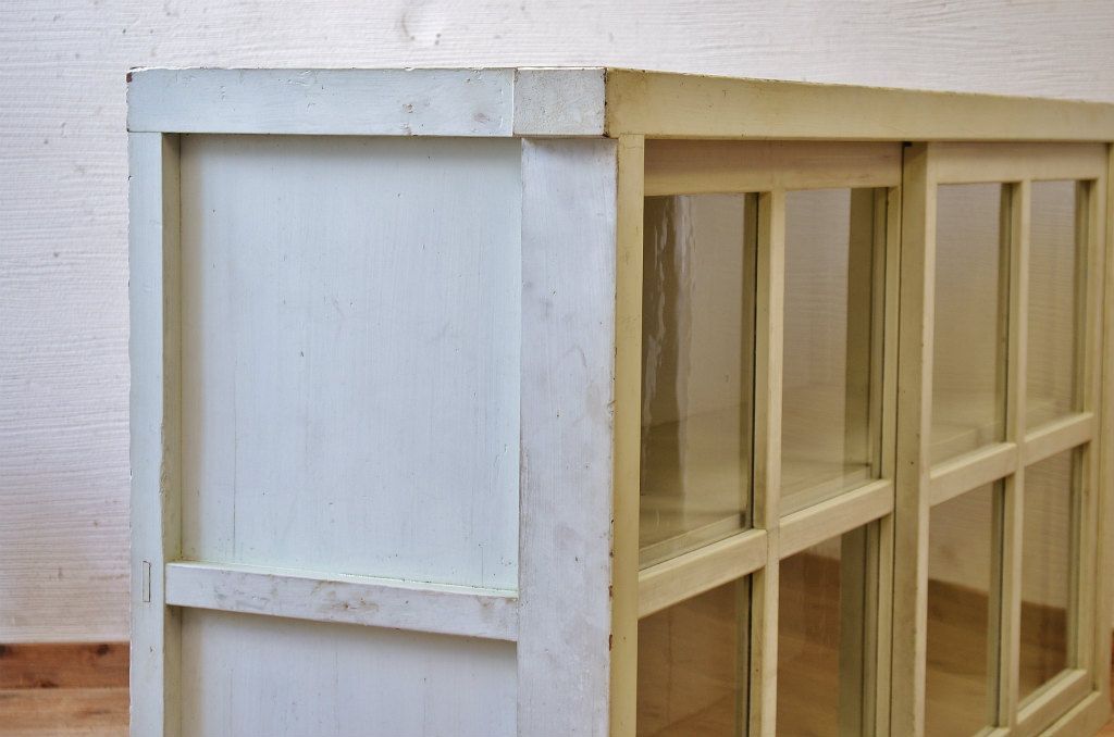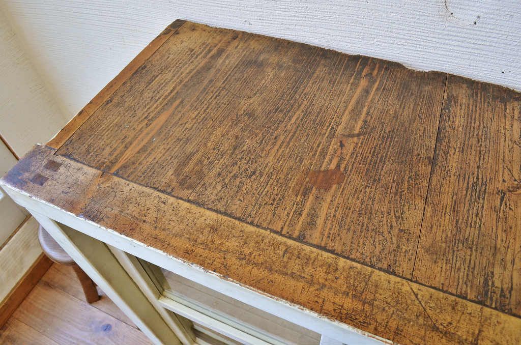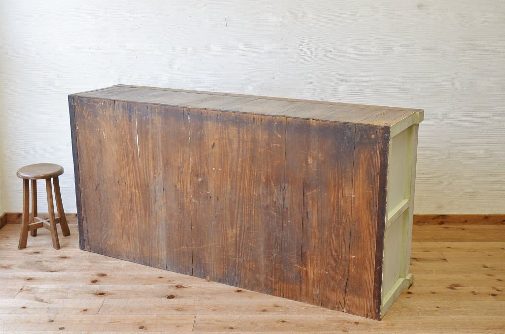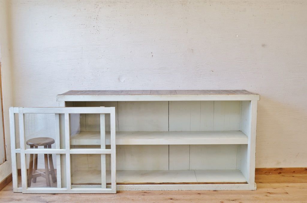ペンキの剥げたレトロなアンティーク収納棚です。