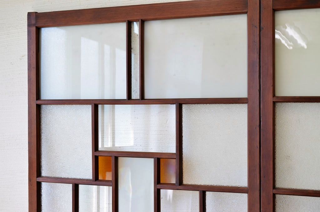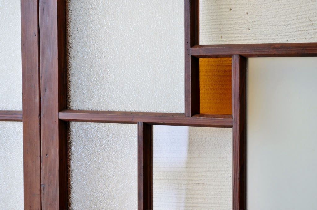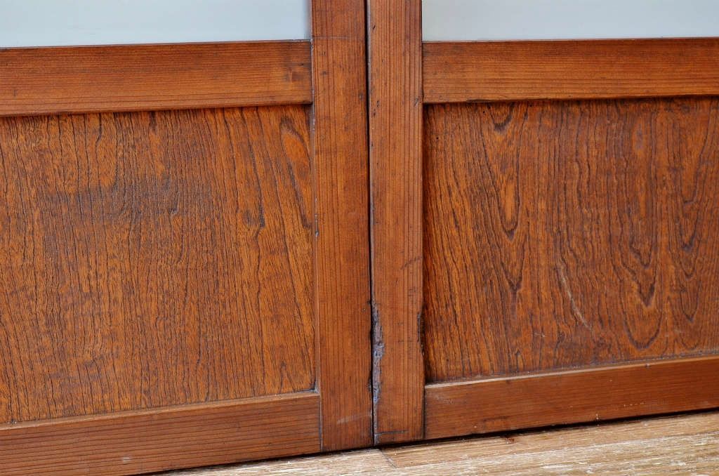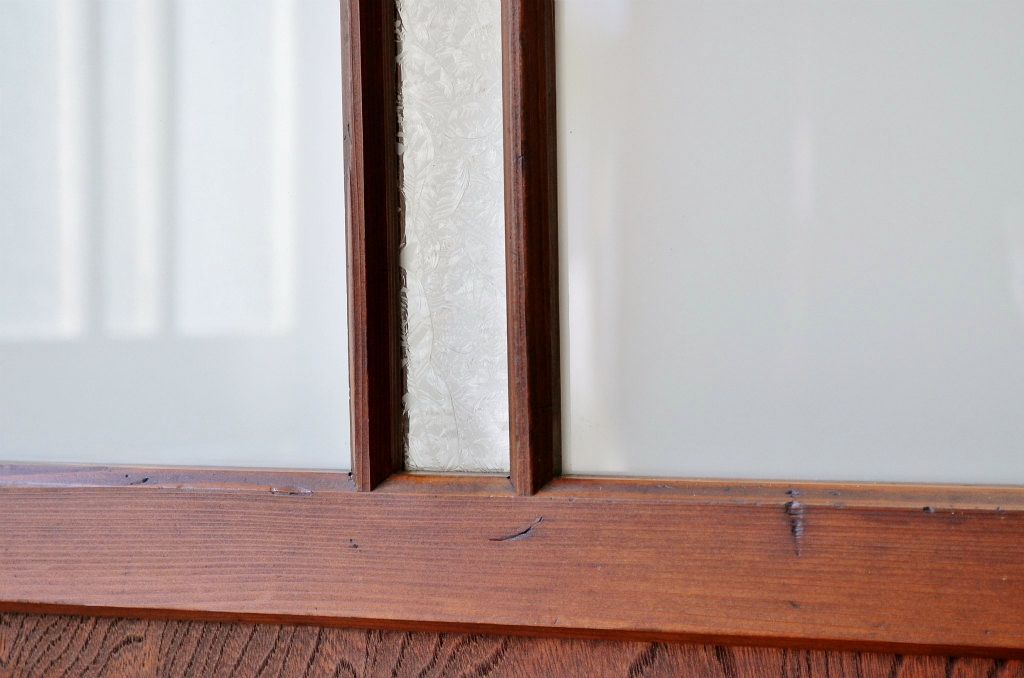 色ガラス入りのアンティーク引き戸(ガラス戸)2枚セット