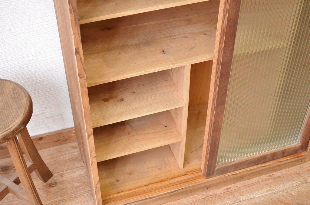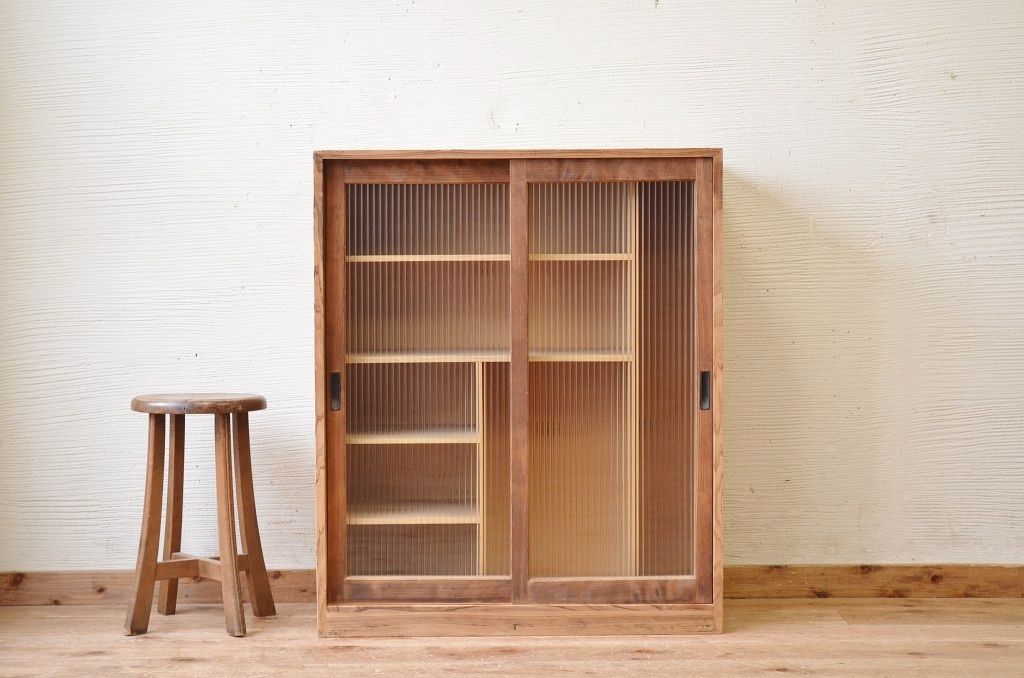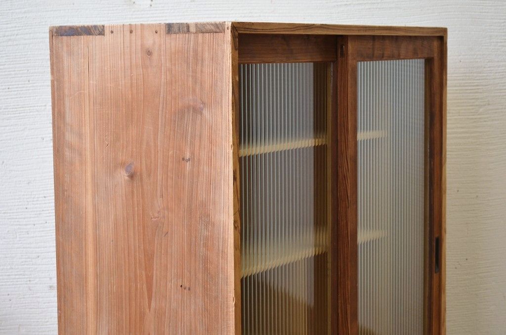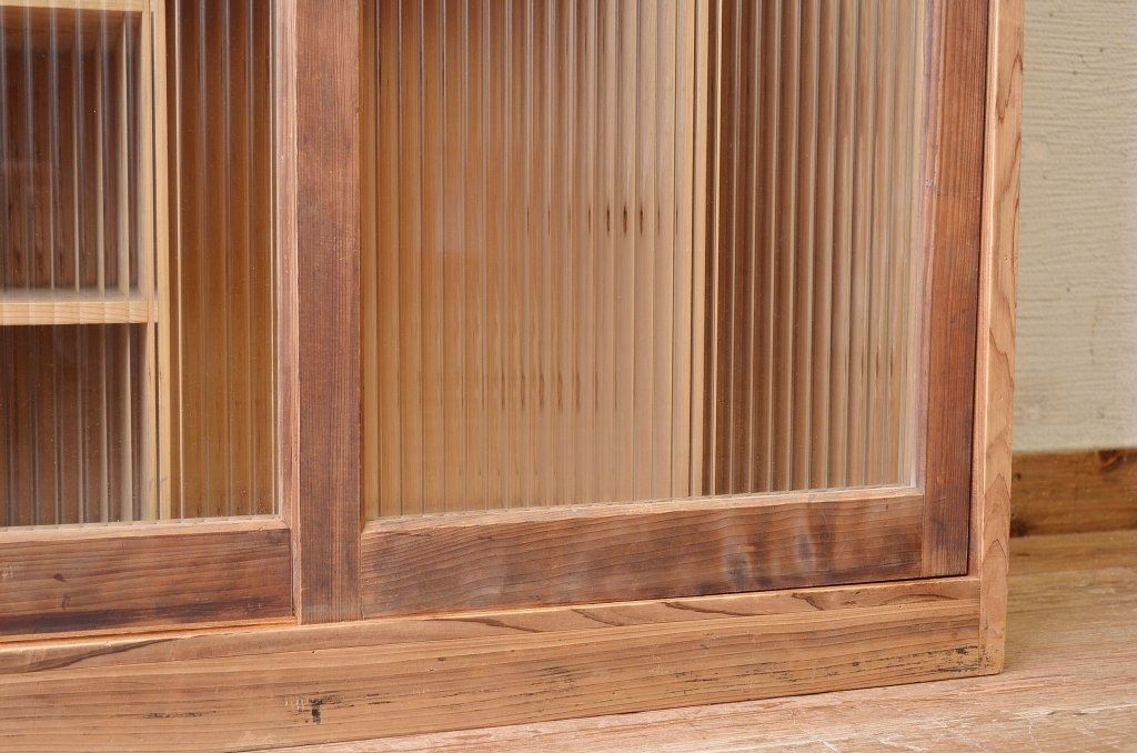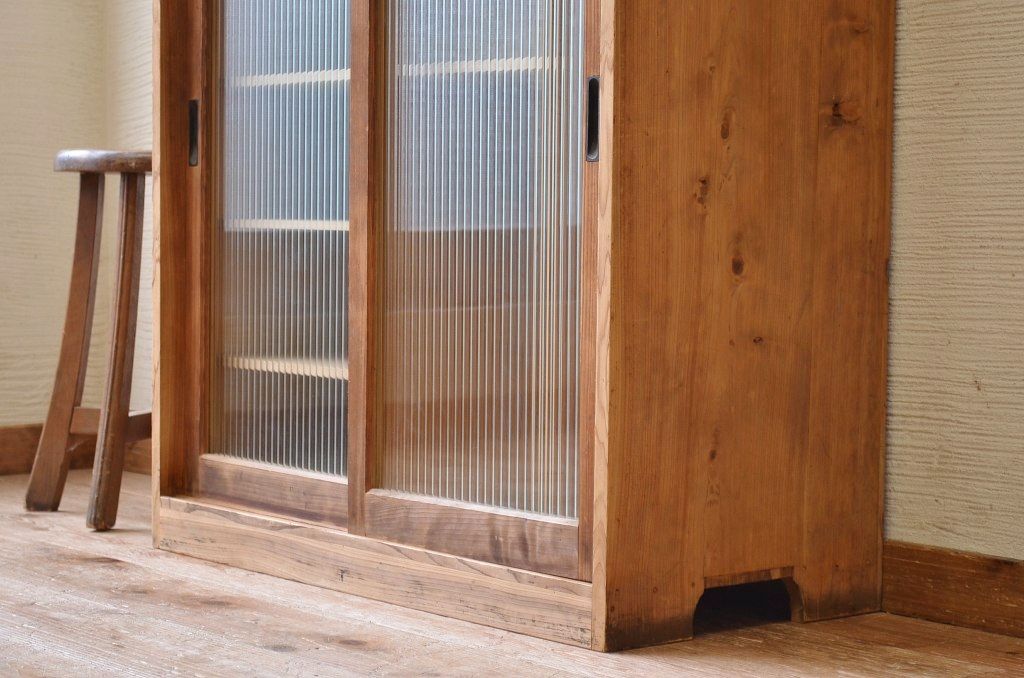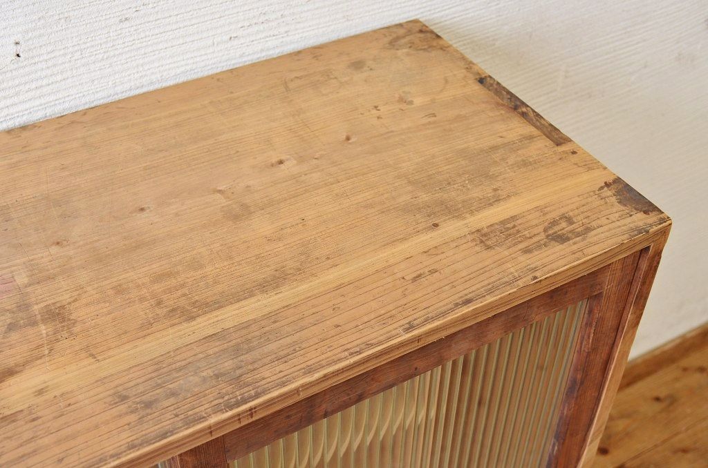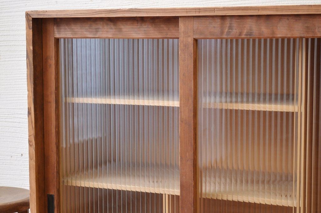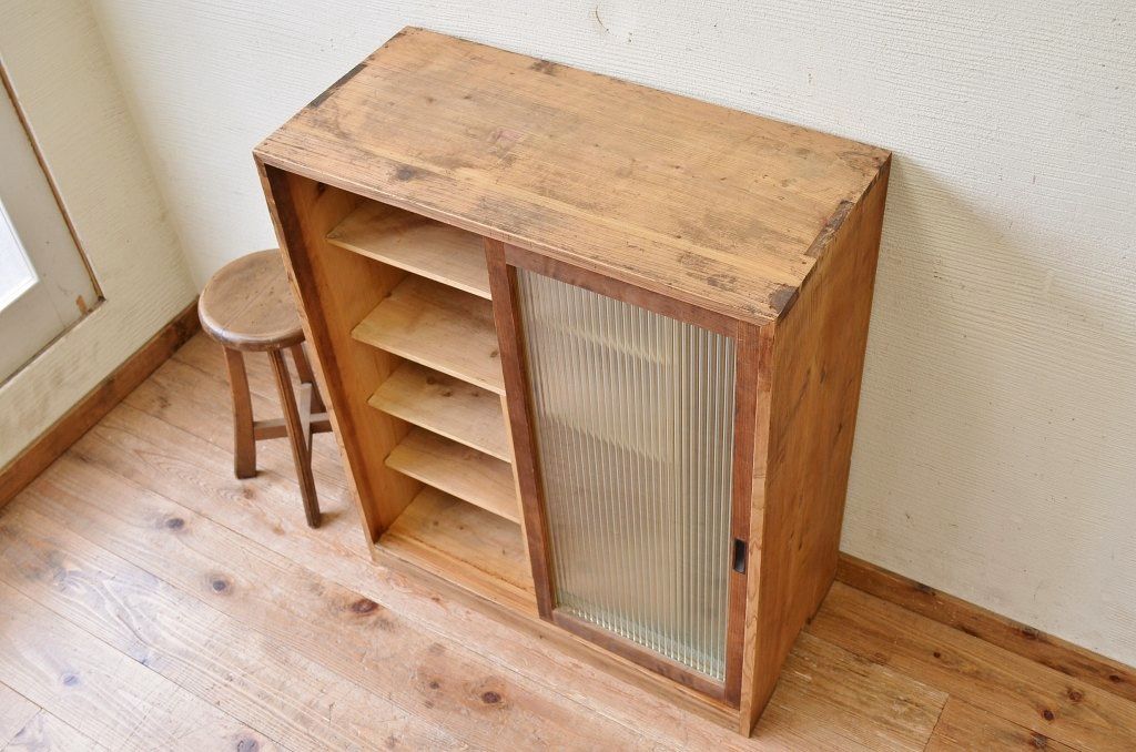 アンティーク家具 古い木味のモールガラスアンティーク下駄箱(収納棚)