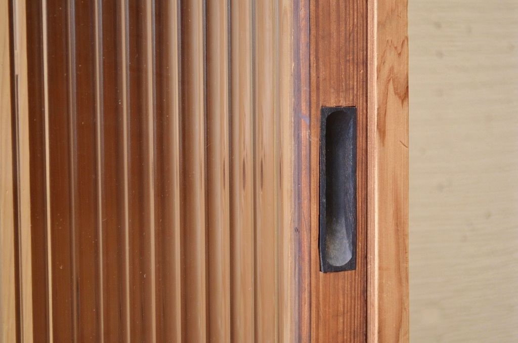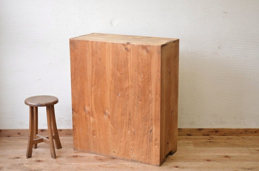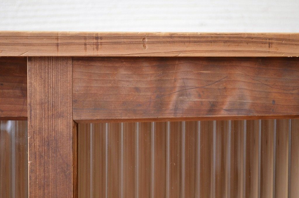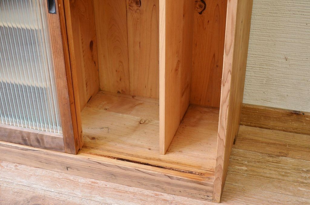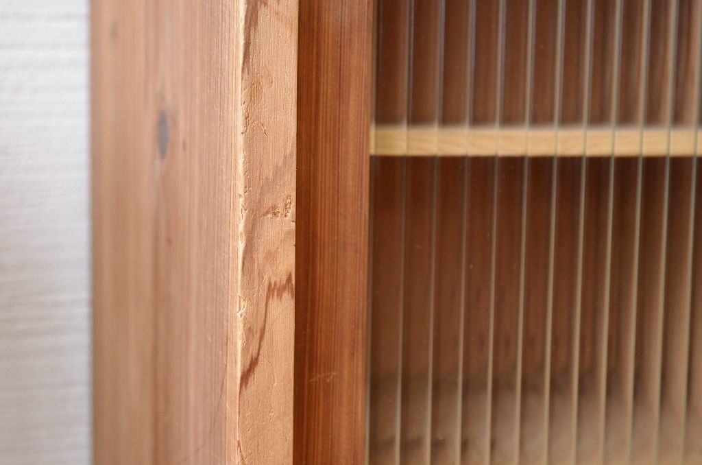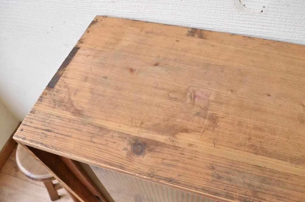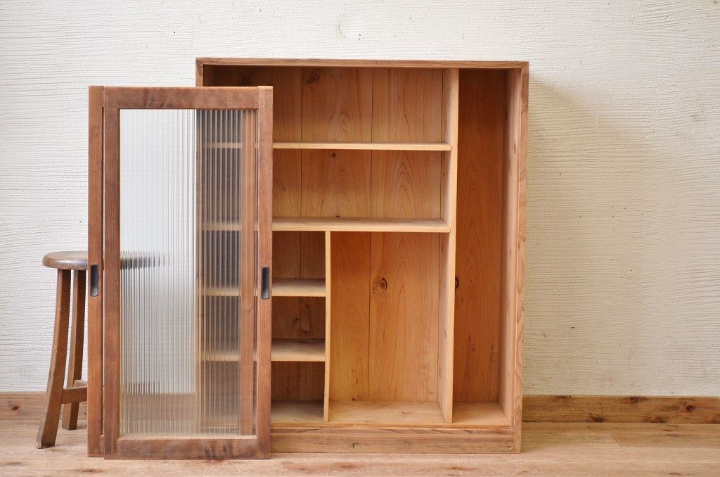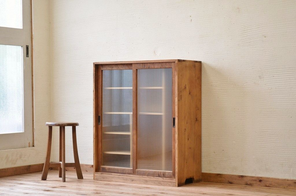 アンティーク家具 古い木味のモールガラスアンティーク下駄箱(収納棚)