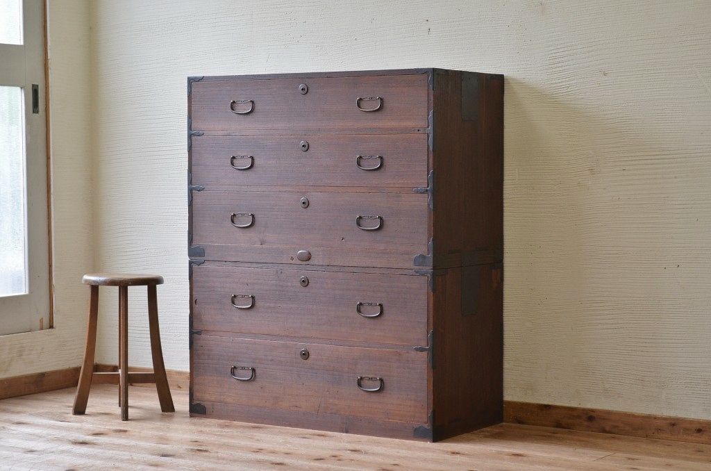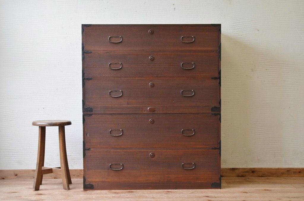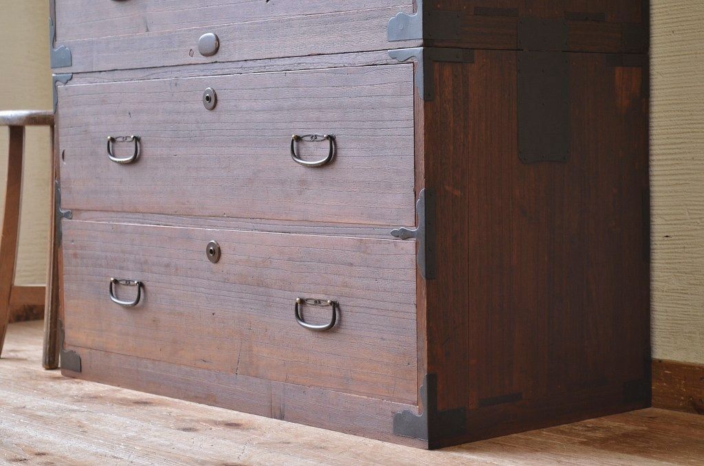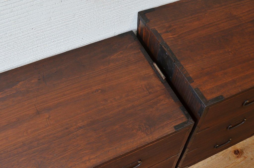 古いお家の二段重ね時代箪笥です。