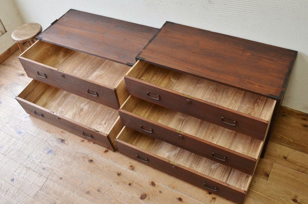 アンティーク家具 ☆古いお家の二段重ね時代箪笥(チェスト)