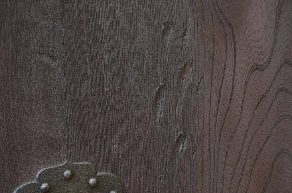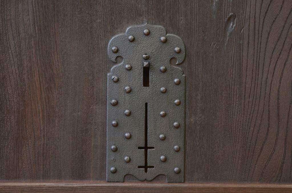 古い欅材の重厚な格子蔵戸(玄関戸)