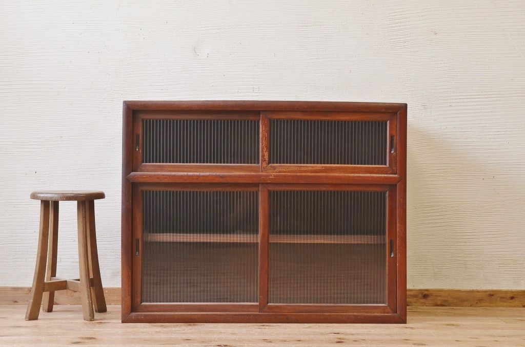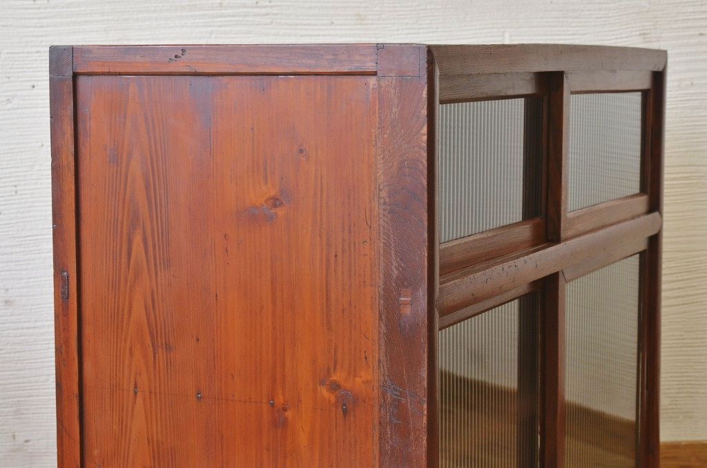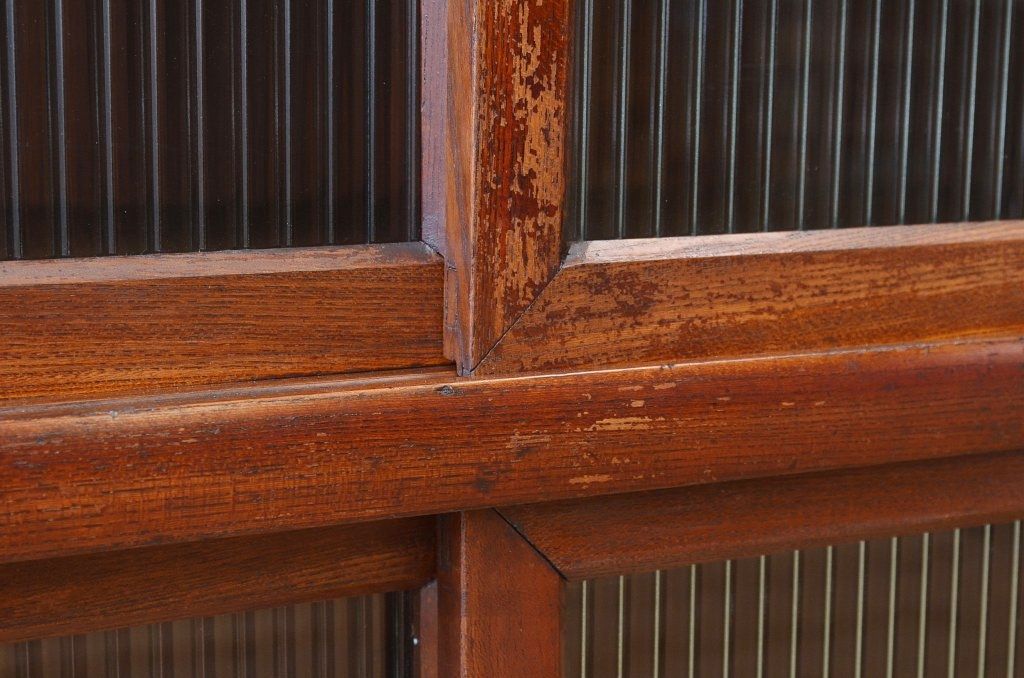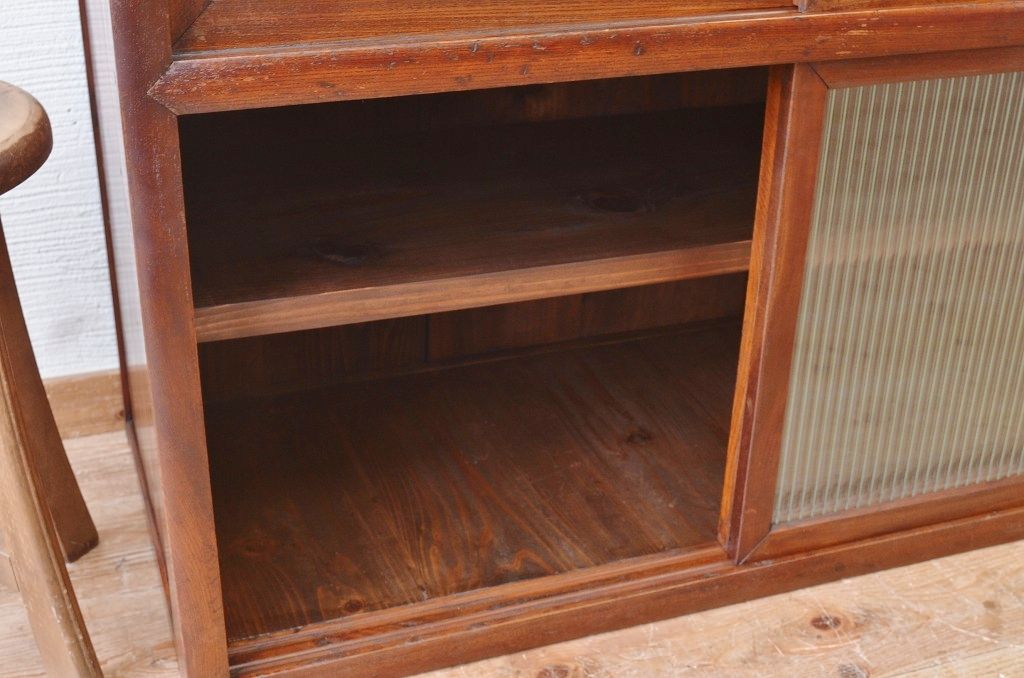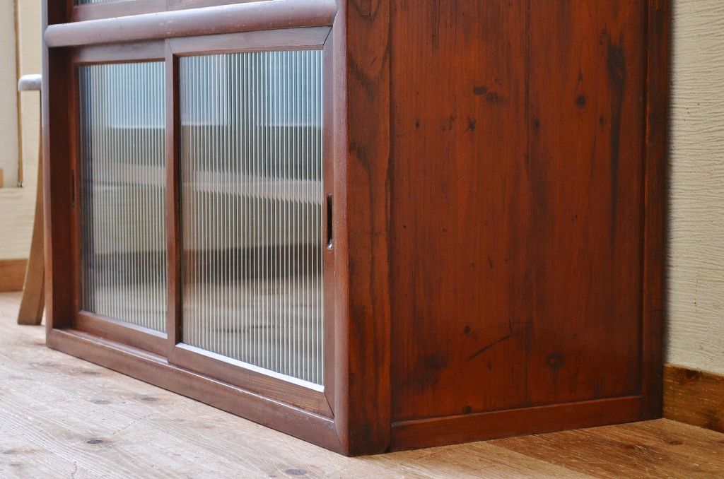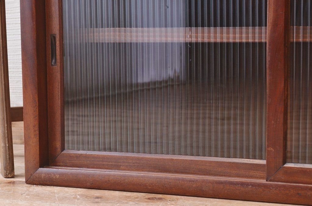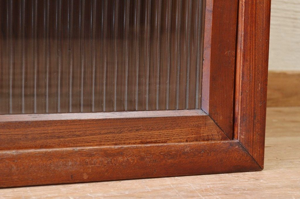 アンティーク家具 前面欅!シンプルなモールガラス収納棚(食器棚)