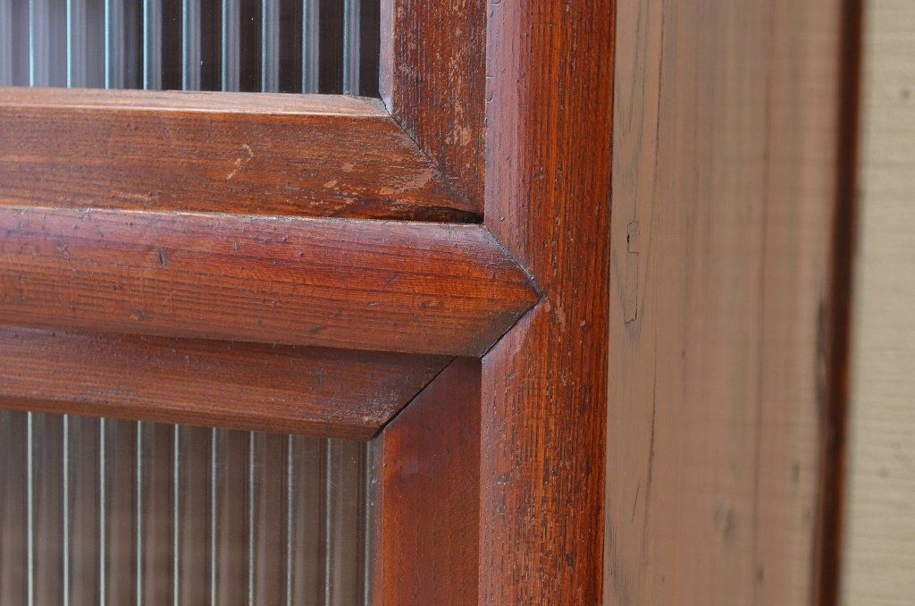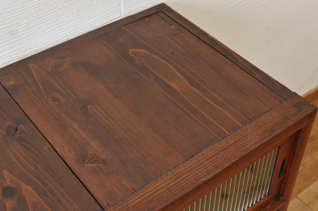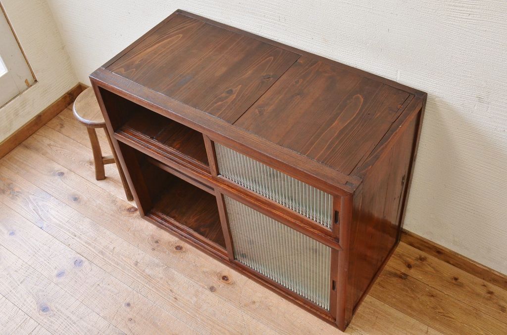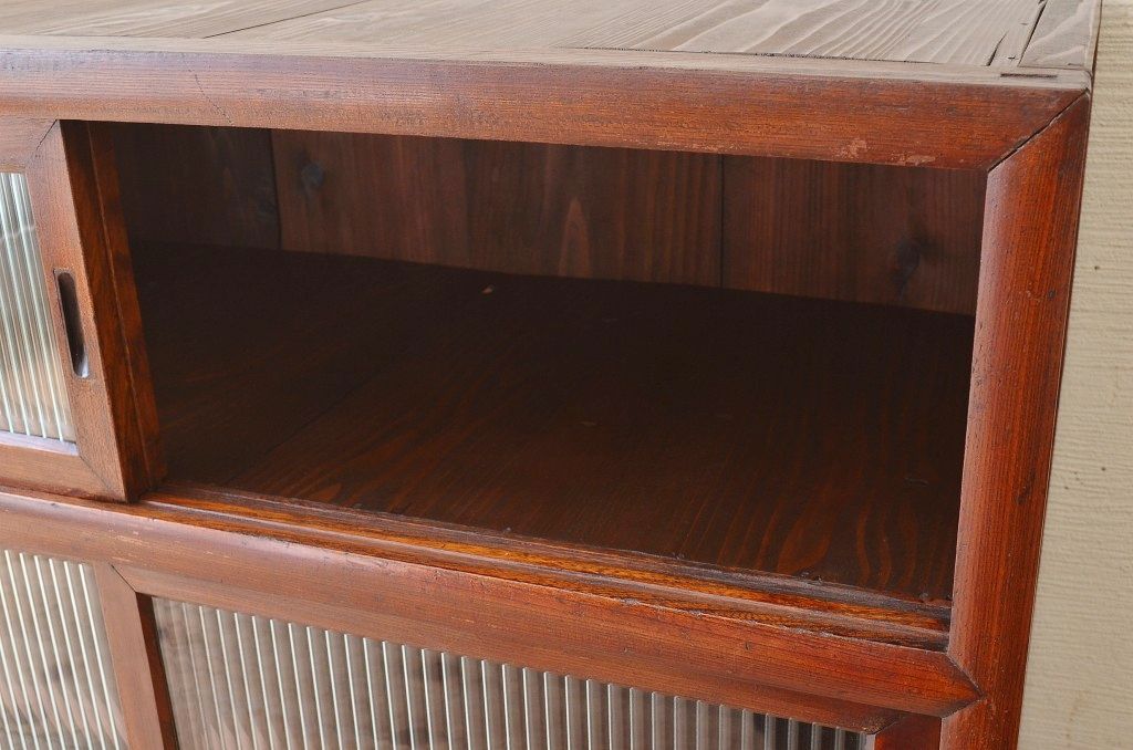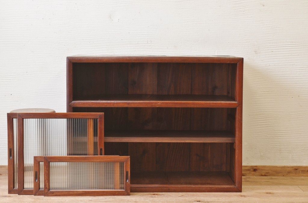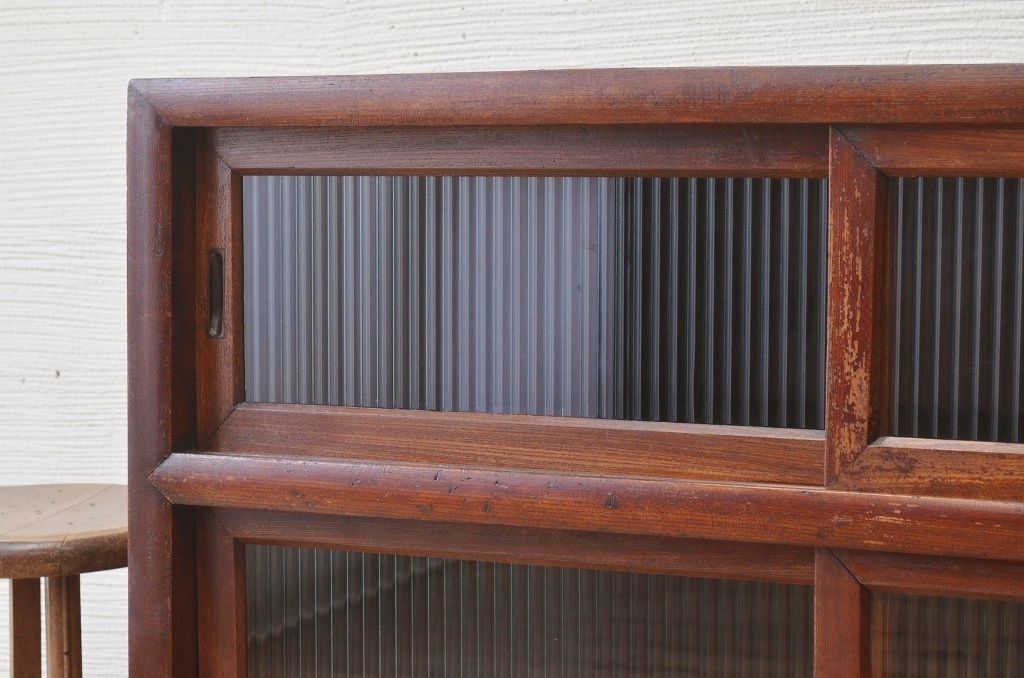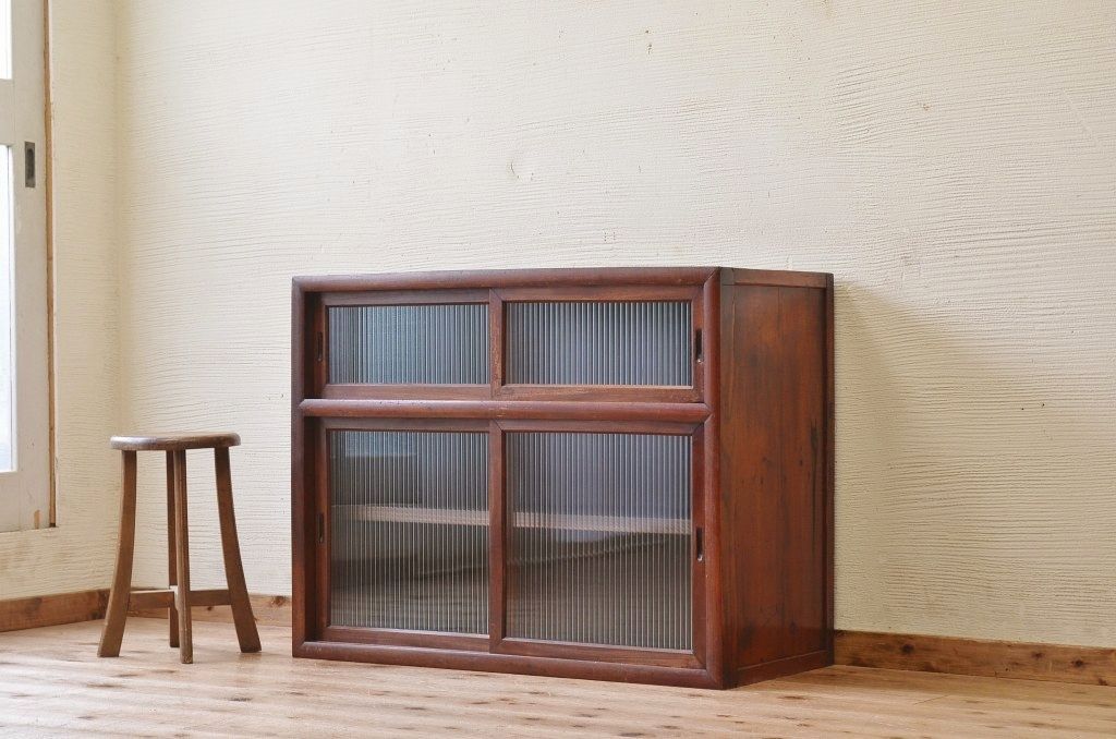 アンティーク家具 前面欅!シンプルなモールガラス収納棚(食器棚)