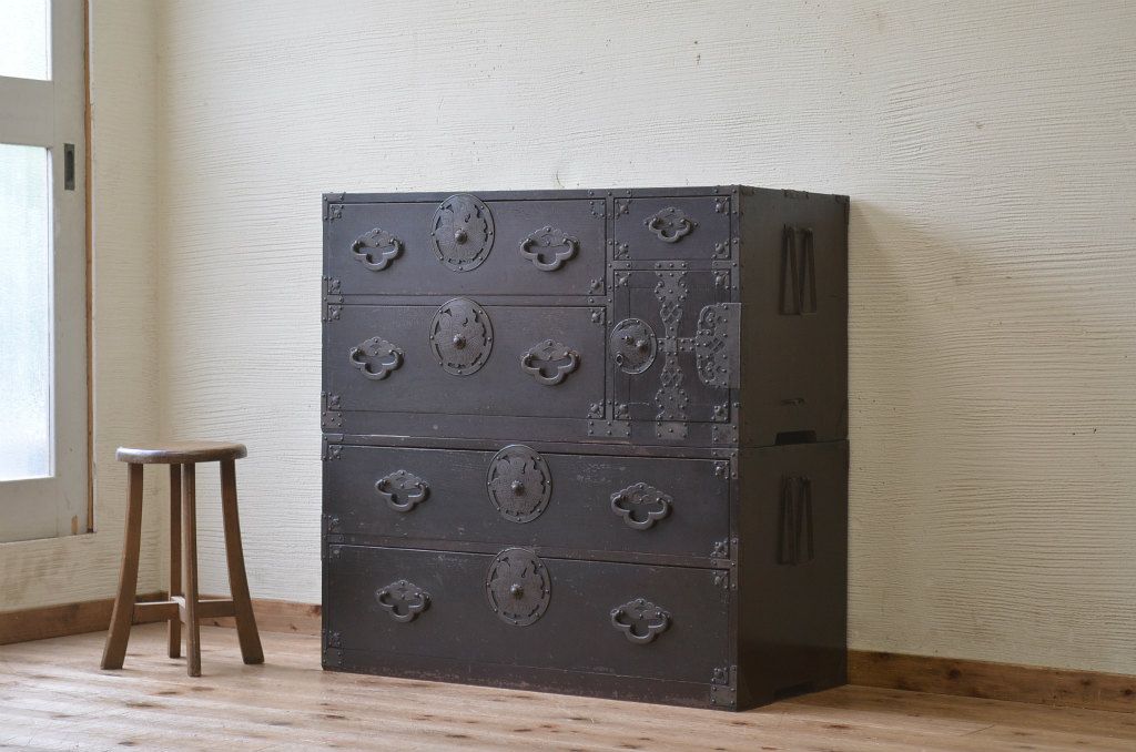 アンティーク家具 ☆素敵な雰囲気!味のある蝶覆輪米沢箪笥