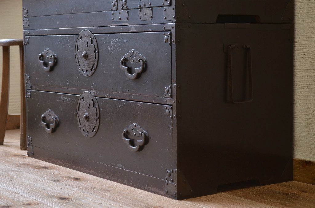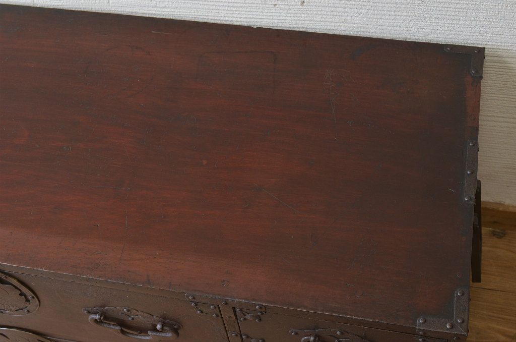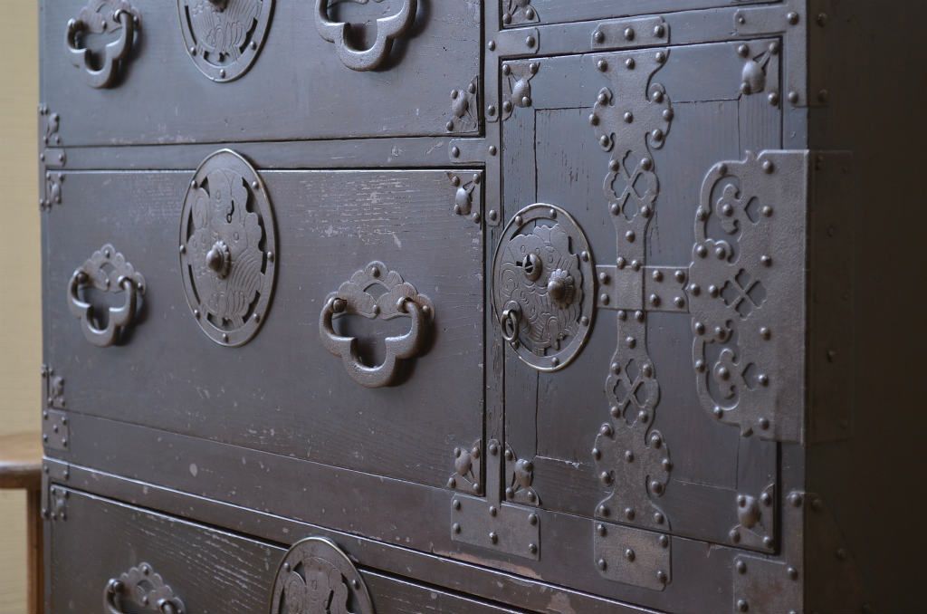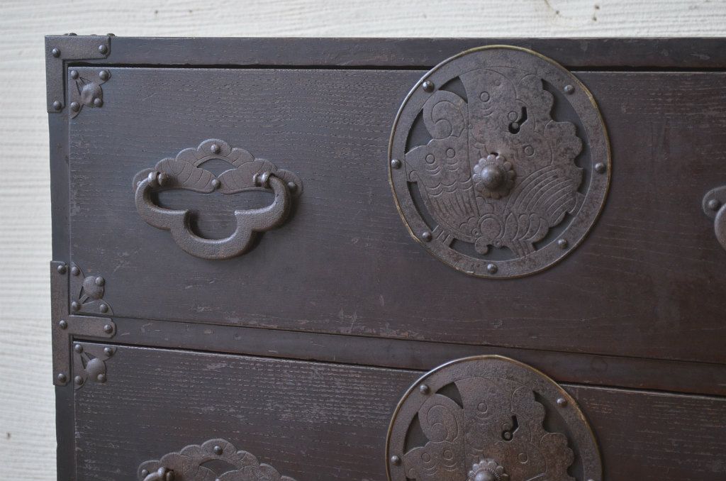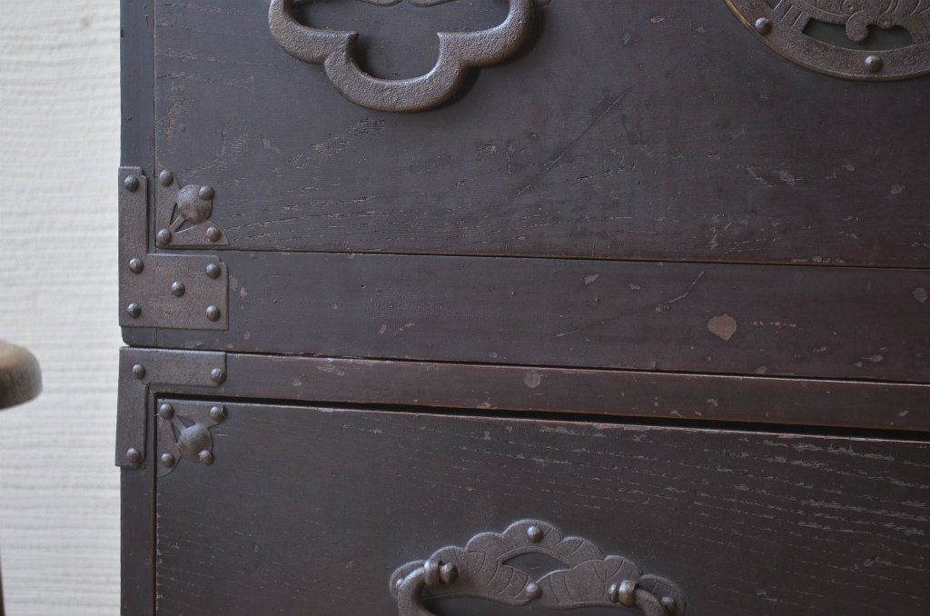 味のある蝶覆輪米沢箪笥です。