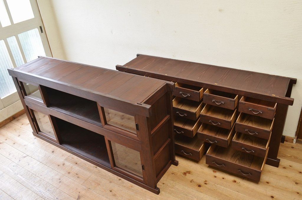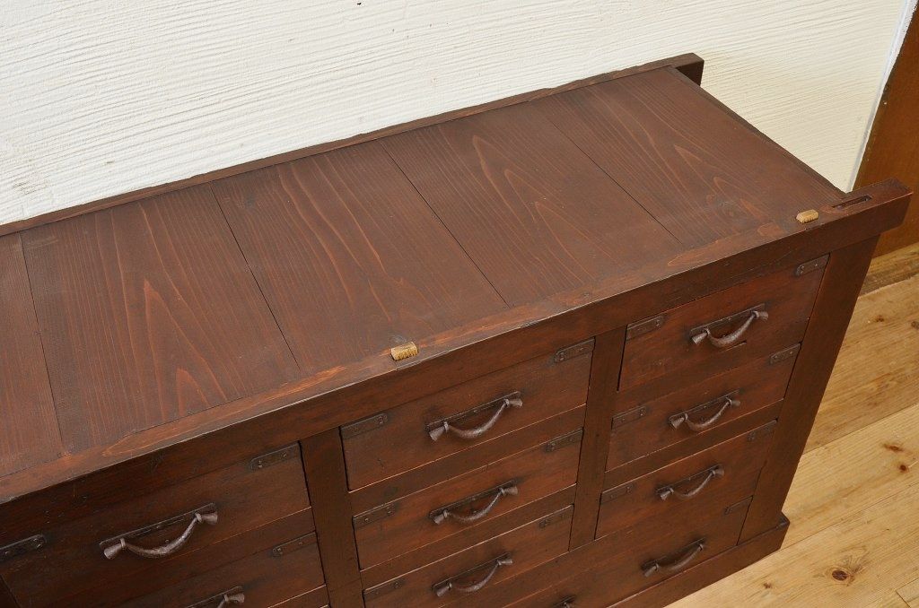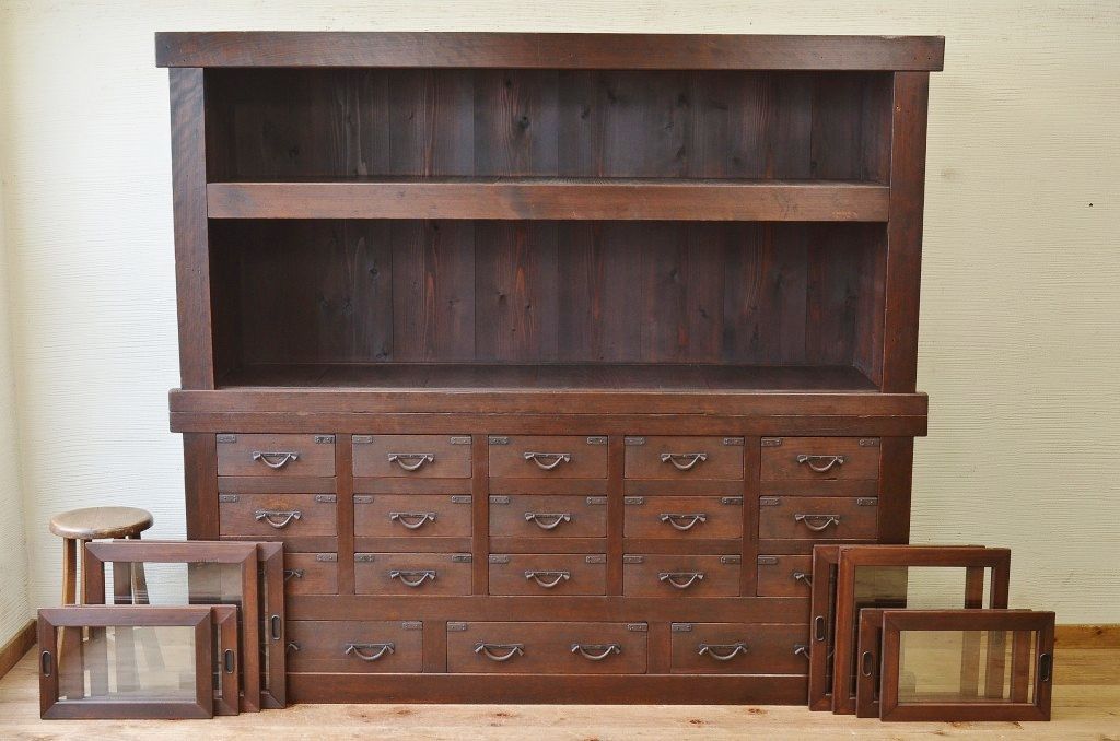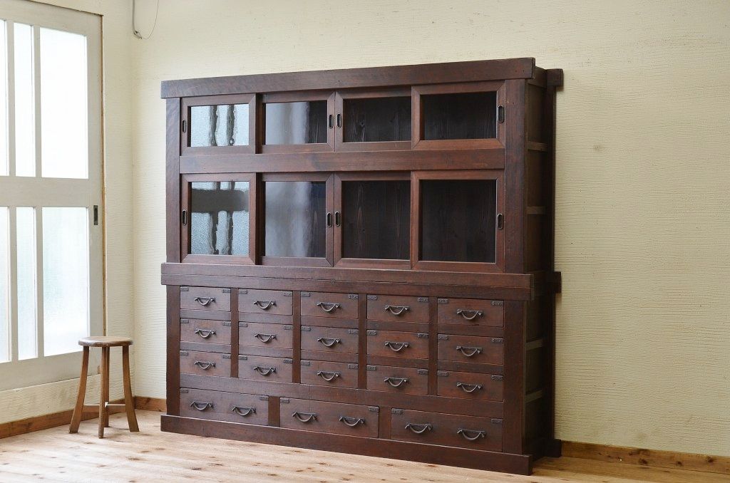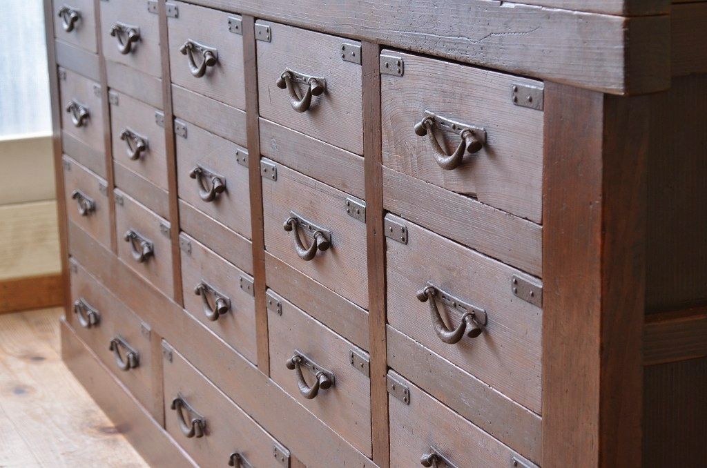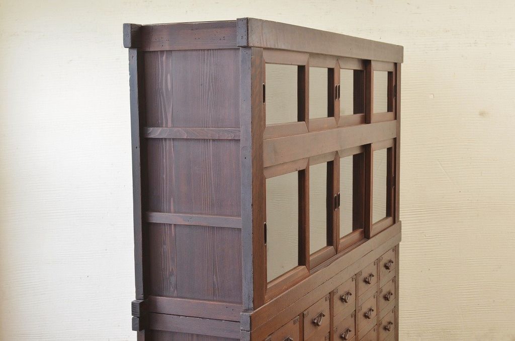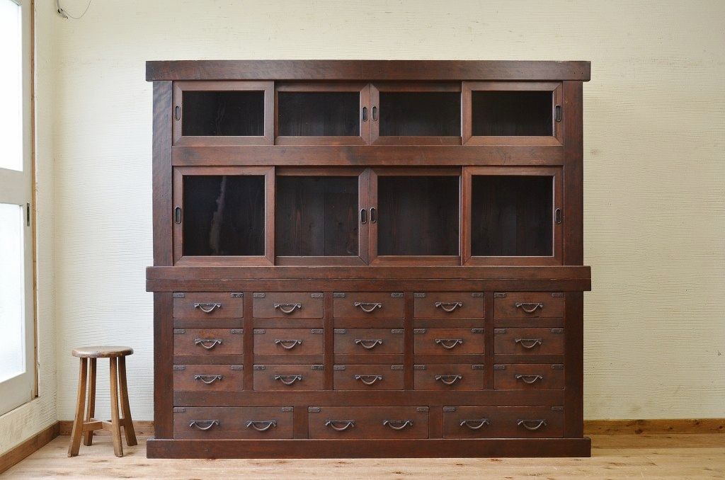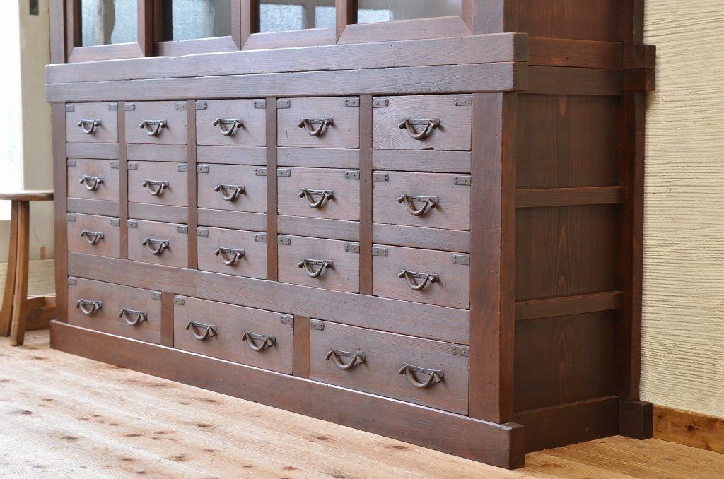 アンティーク家具 明治時代 近江 二段重ね引き出し収納棚(薬箪笥)