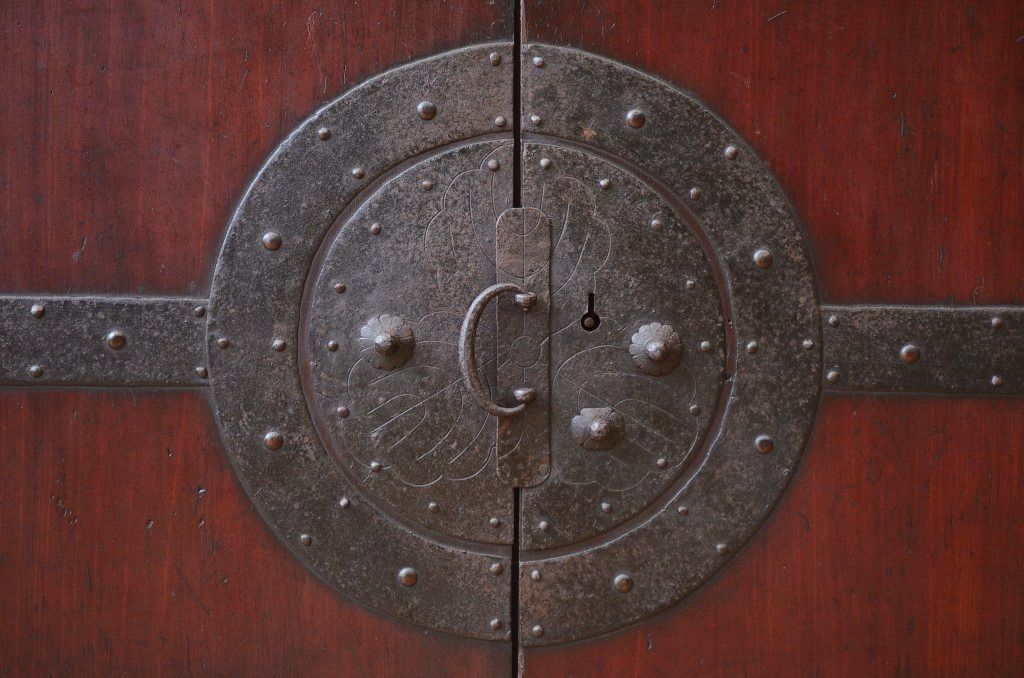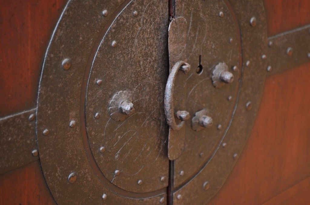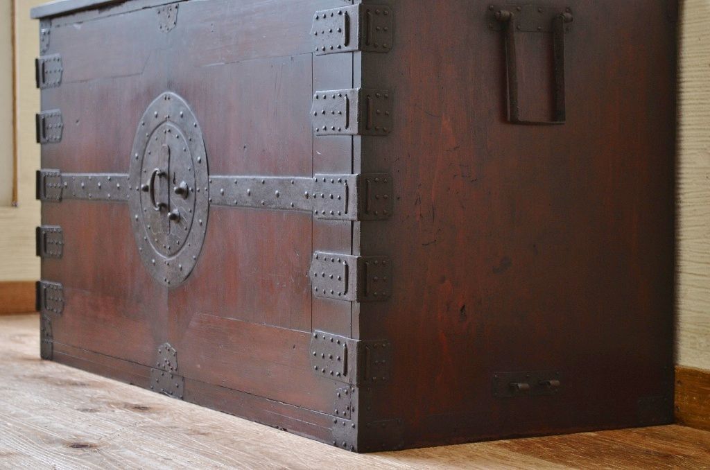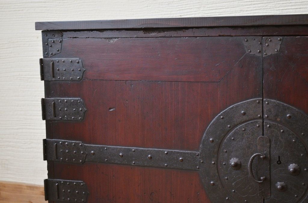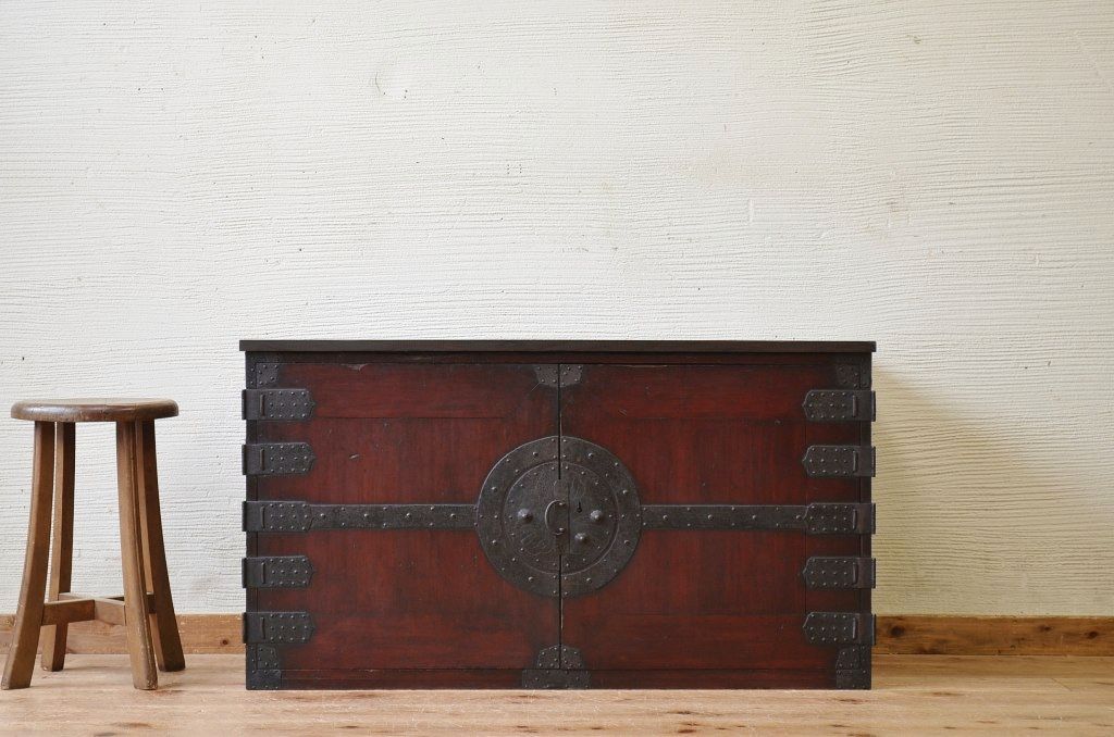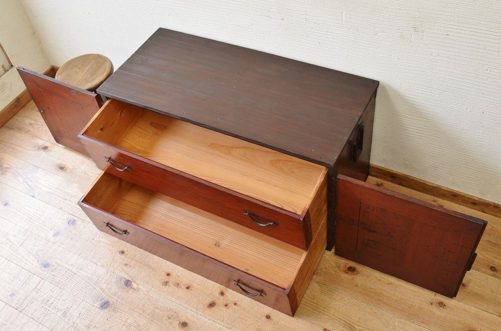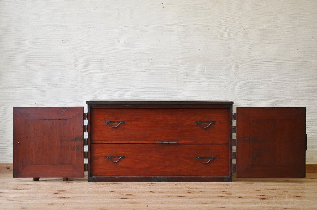 アンティーク家具 天板補強の観音開き時代箪笥ローボード