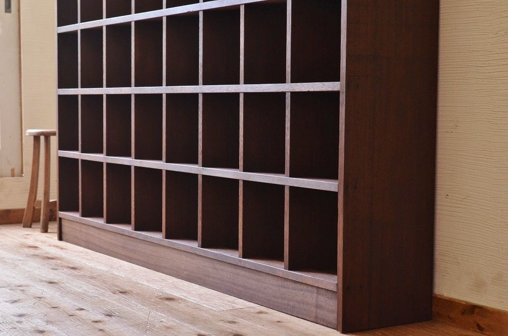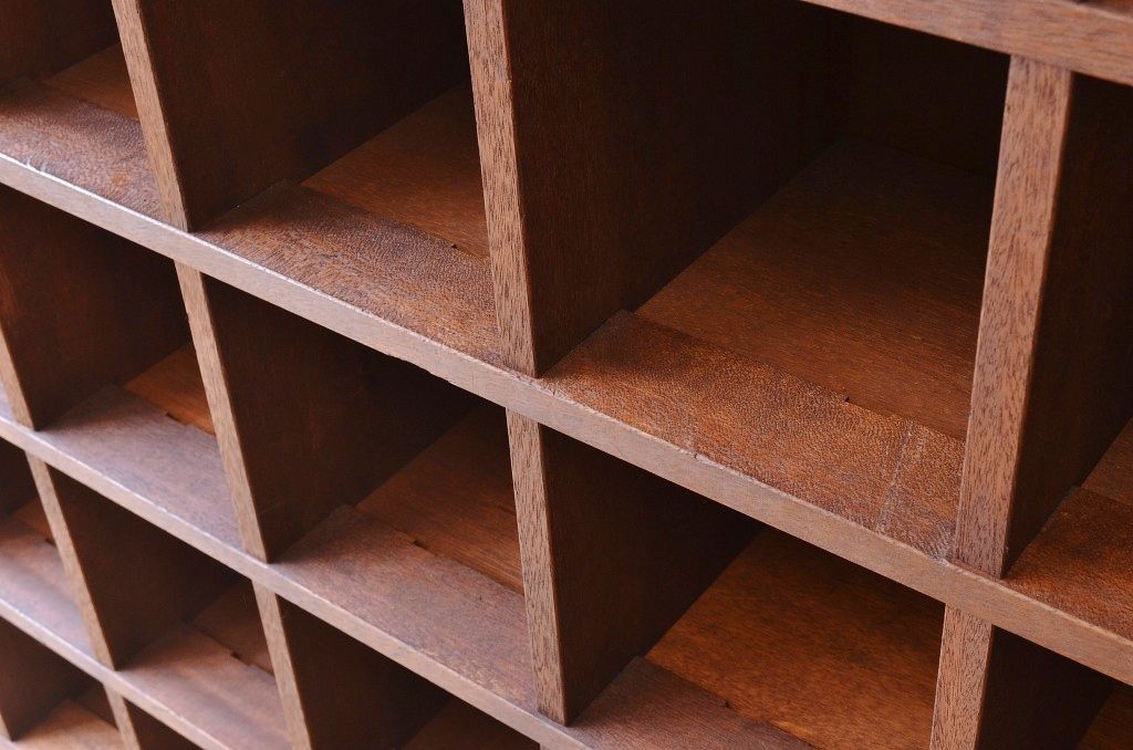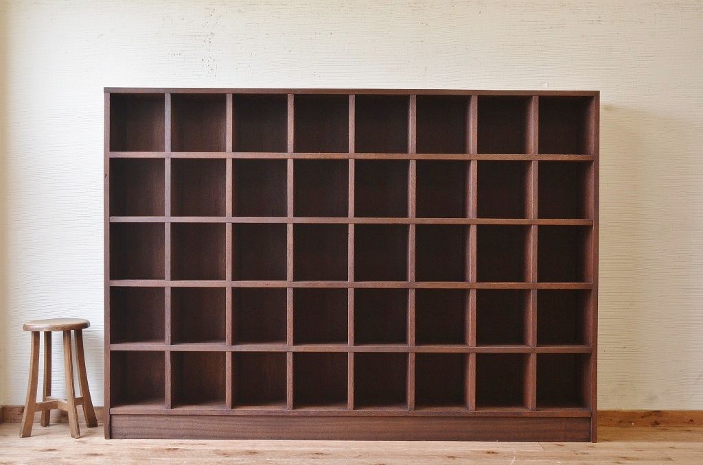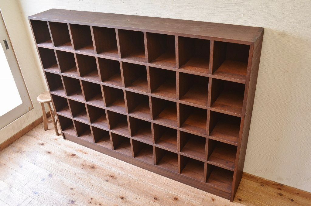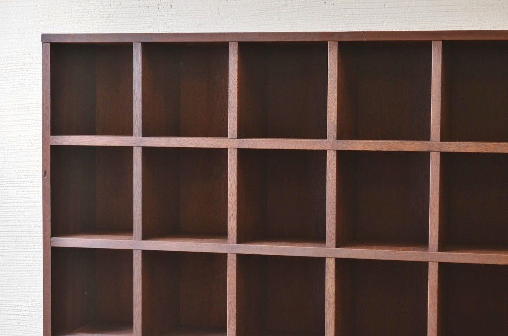 アンティーク家具 古い木の大きなマス目棚(収納棚、飾り棚)