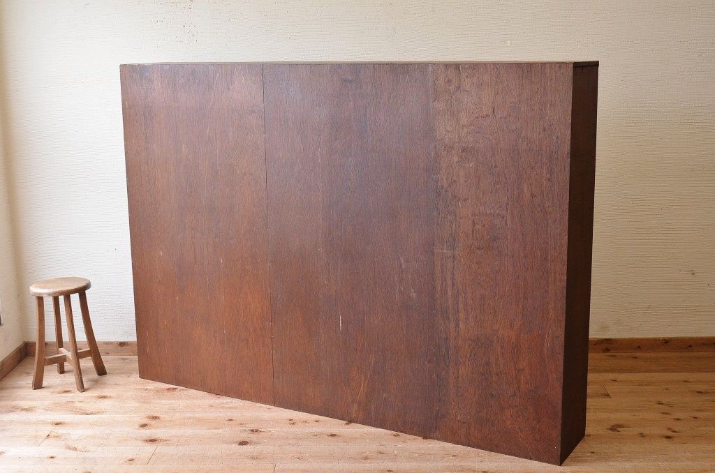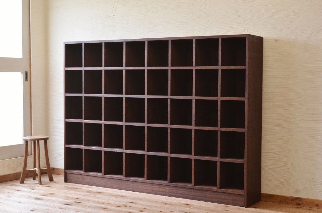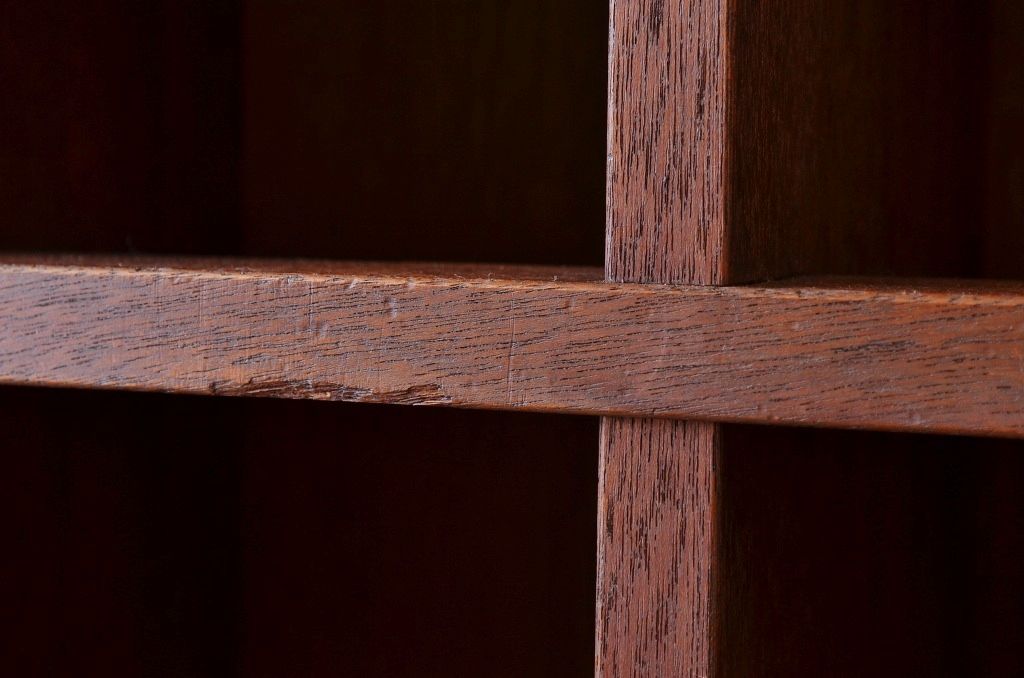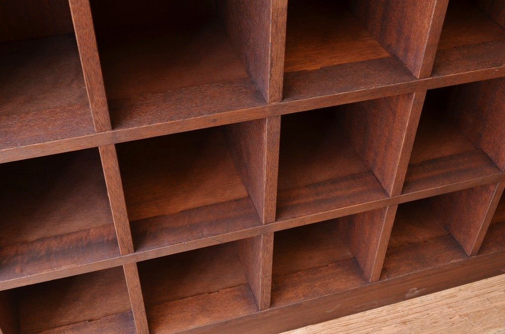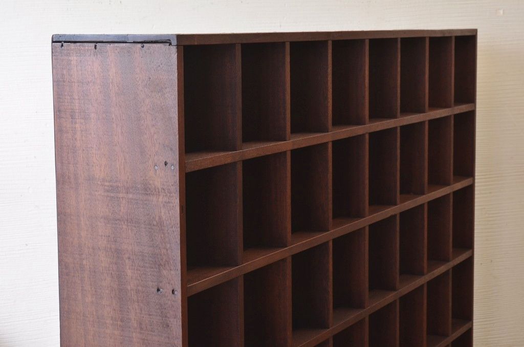 アンティーク家具 古い木の大きなマス目棚(収納棚、飾り棚)