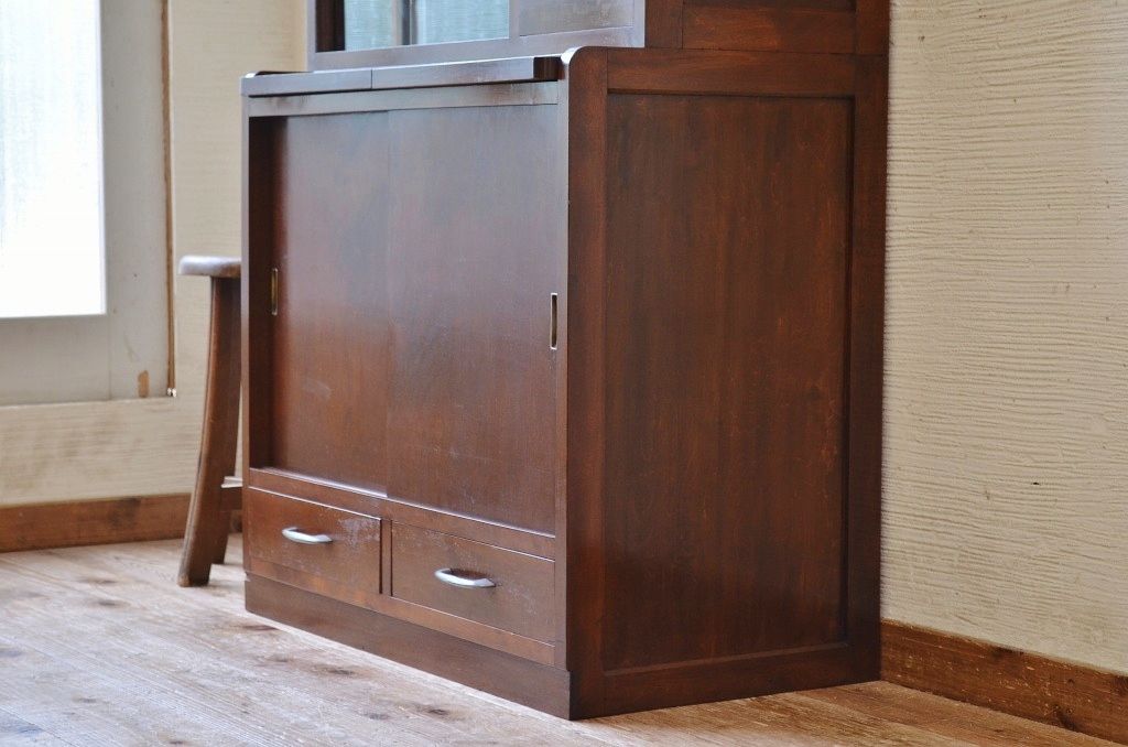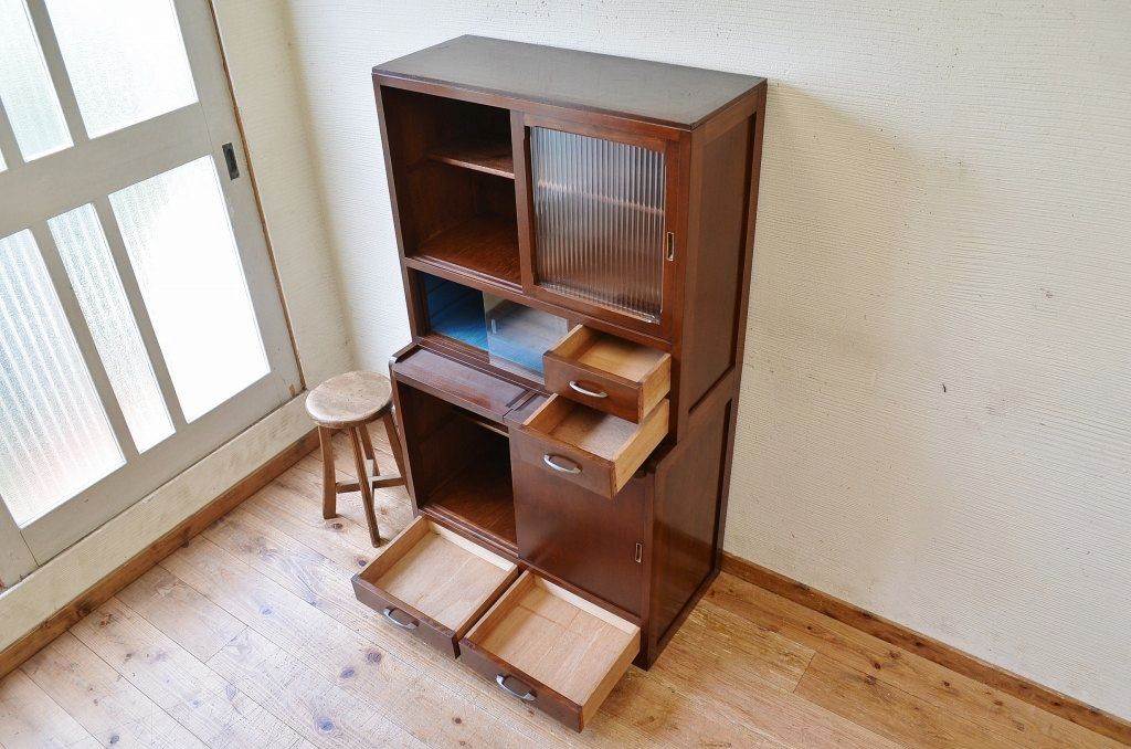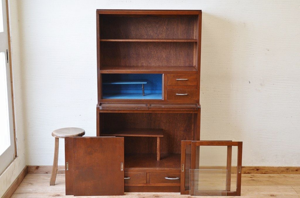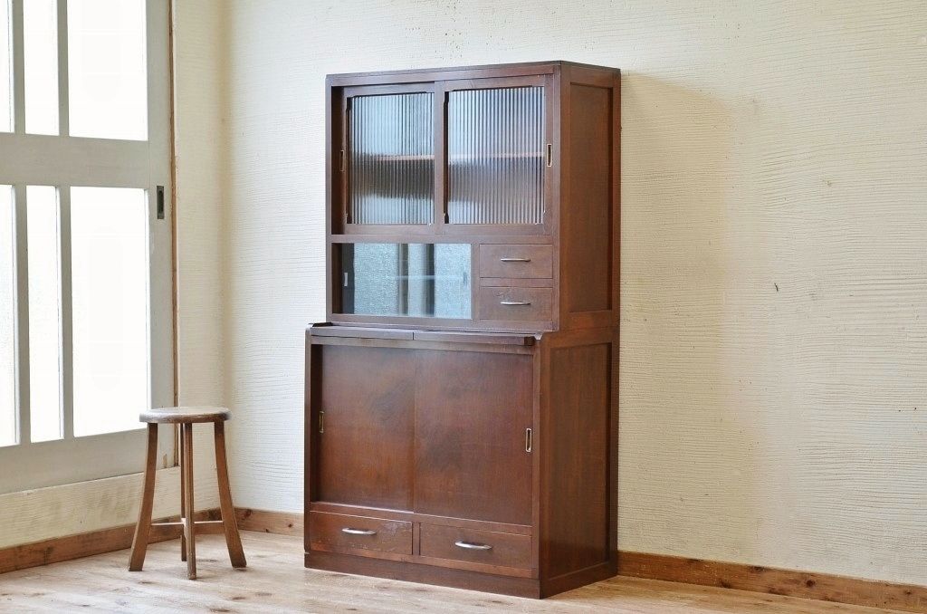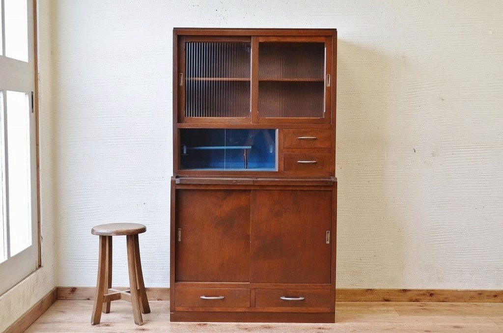 レトロ家具 ☆レトロなデザインのモールガラス食器棚